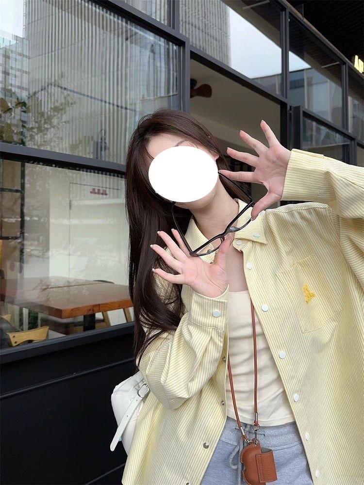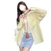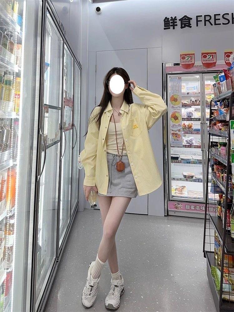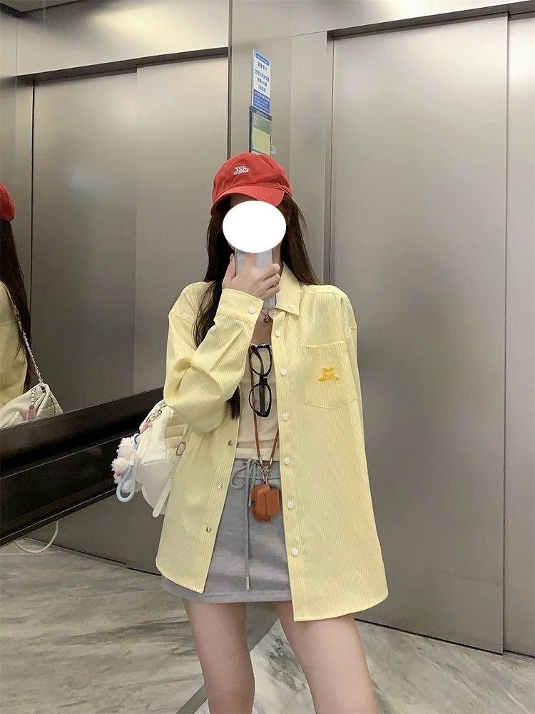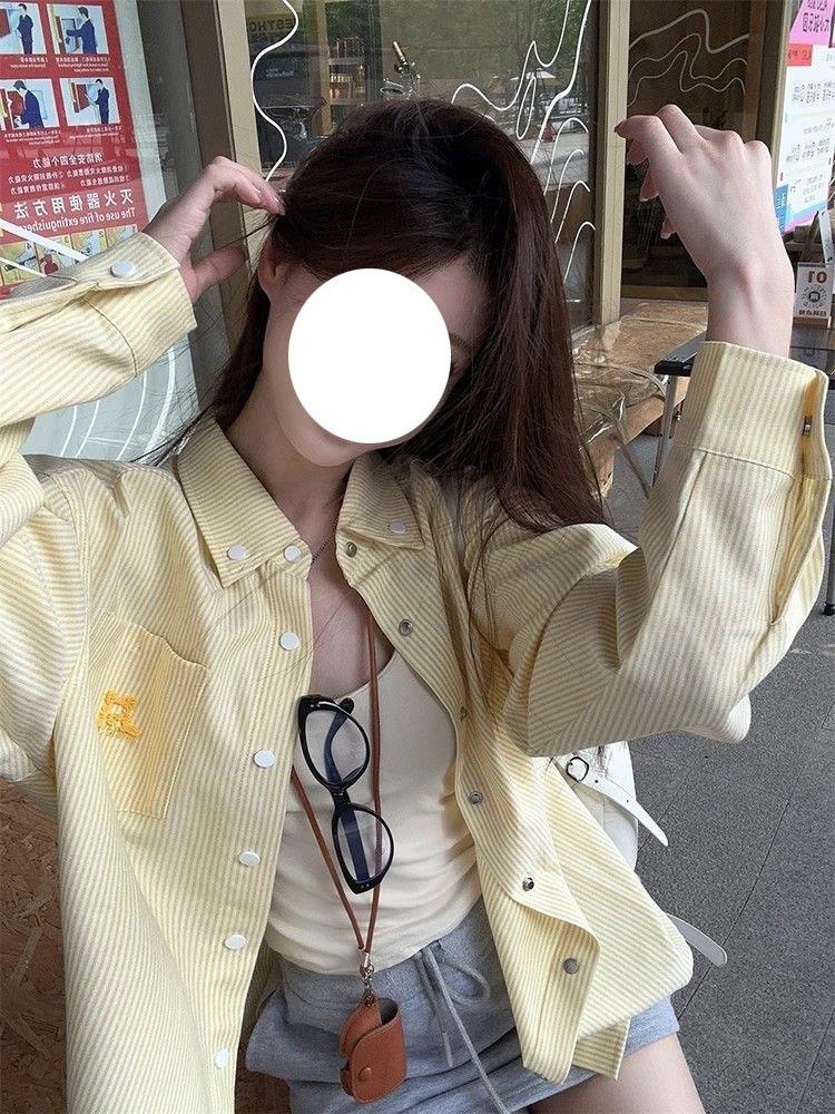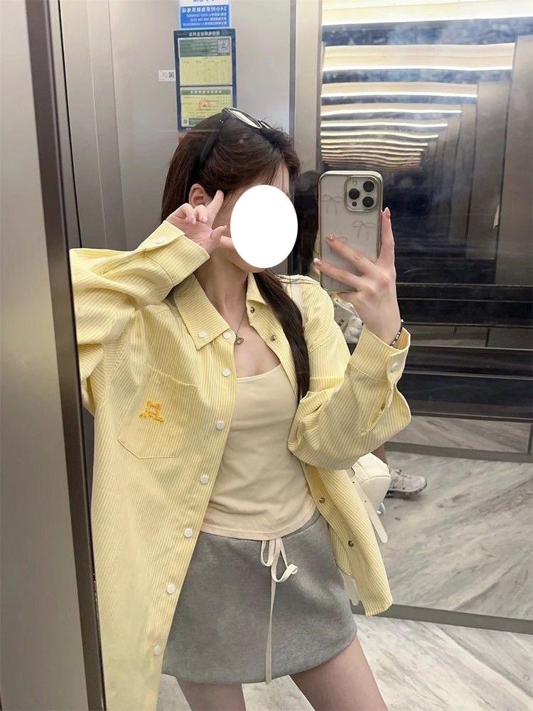 Cárdigan de Manga Larga con Protección Solar Exterior Estilo Coreano para Mujer Nuevo de Primavera Temprana Bordado de Toalla a Rayas Suelto Camisa Camiseta con Cuello Polo