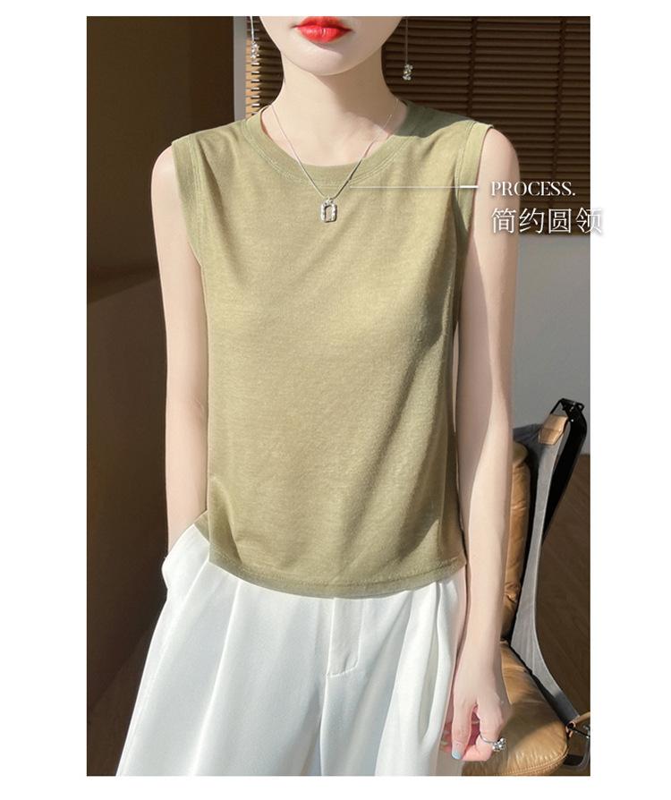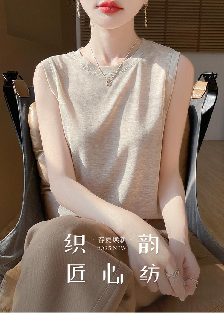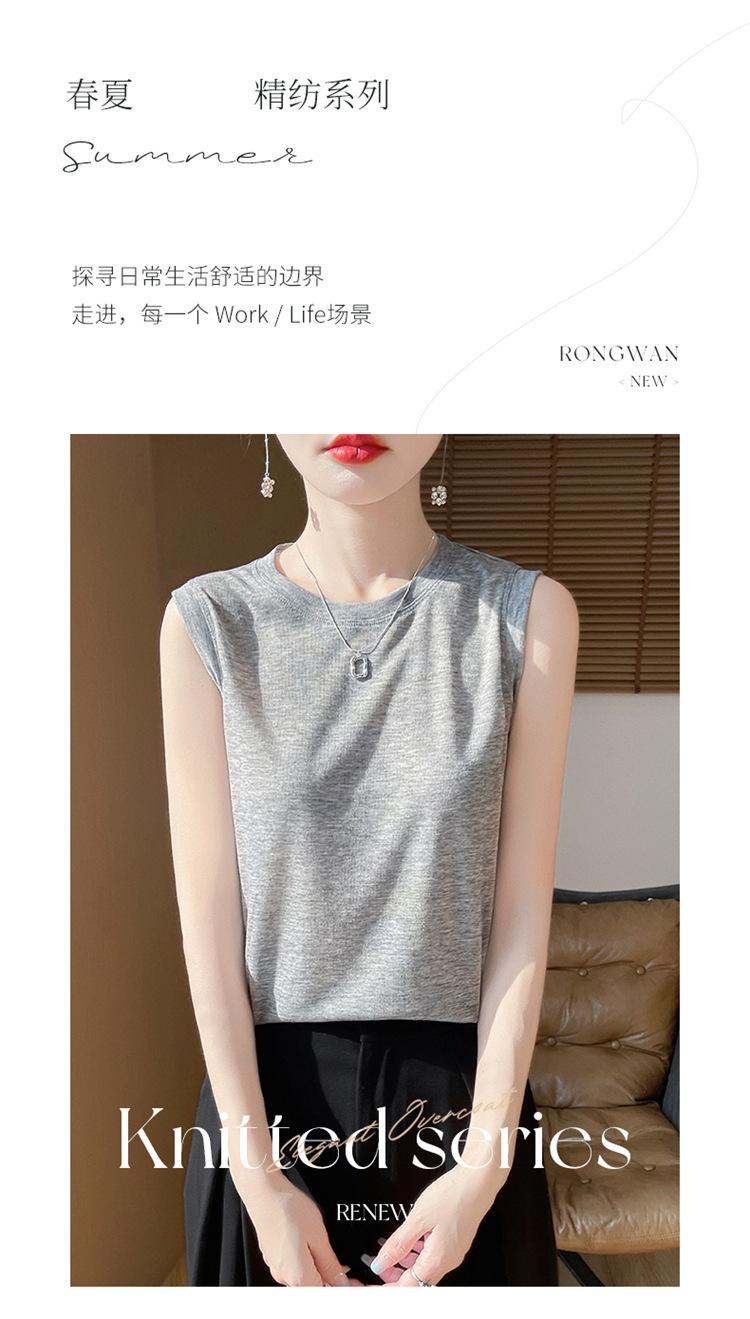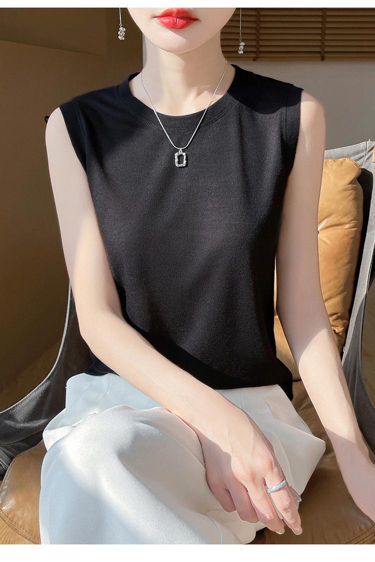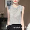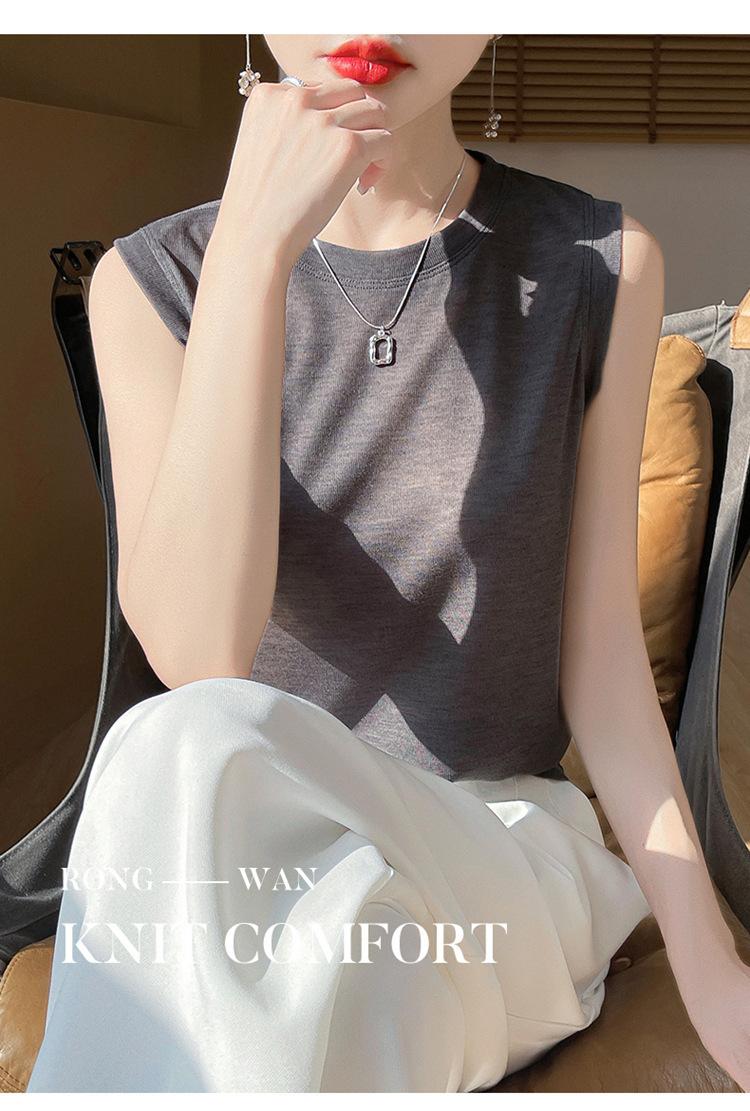 Chaleco sin mangas de punto con tirantes anchos para mujer, transpirable, de color sólido, con cuello redondo, fino y moderno, para verano
