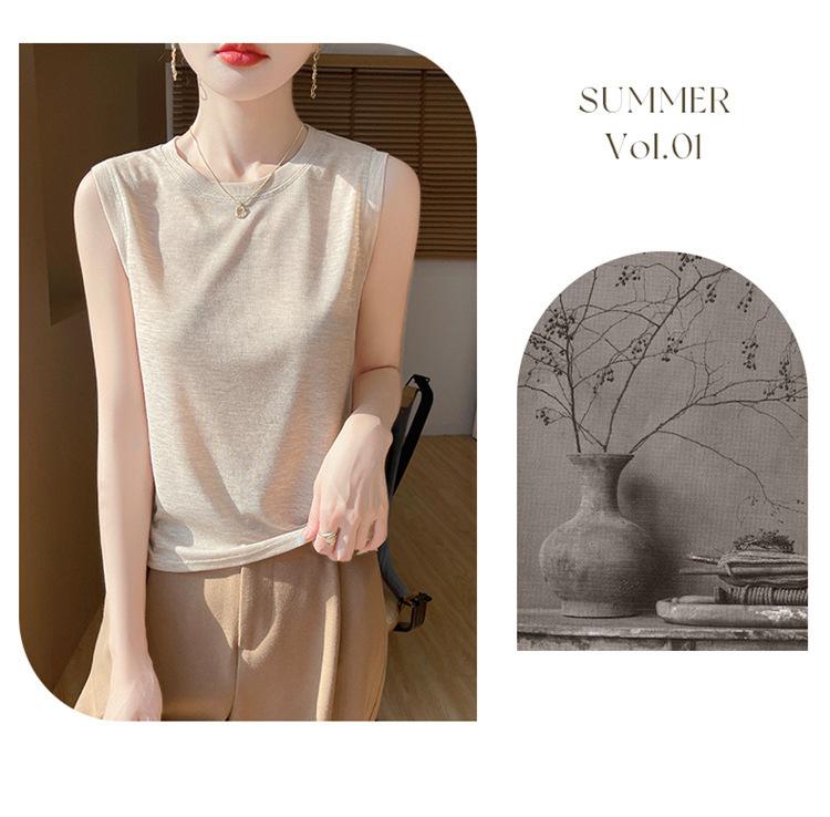 Verano nuevo estilo espalda hermosa hombro ancho camisola sin mangas para mujer usar delgada camisa de fondo para uso exterior