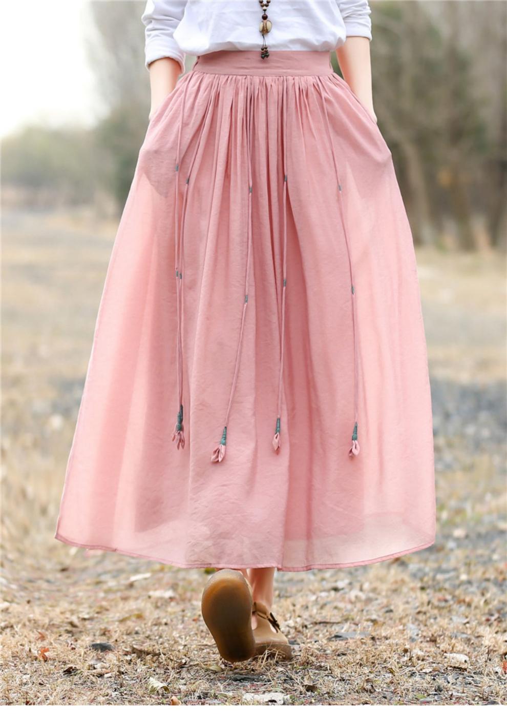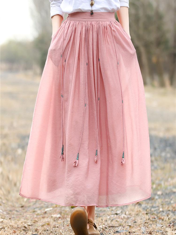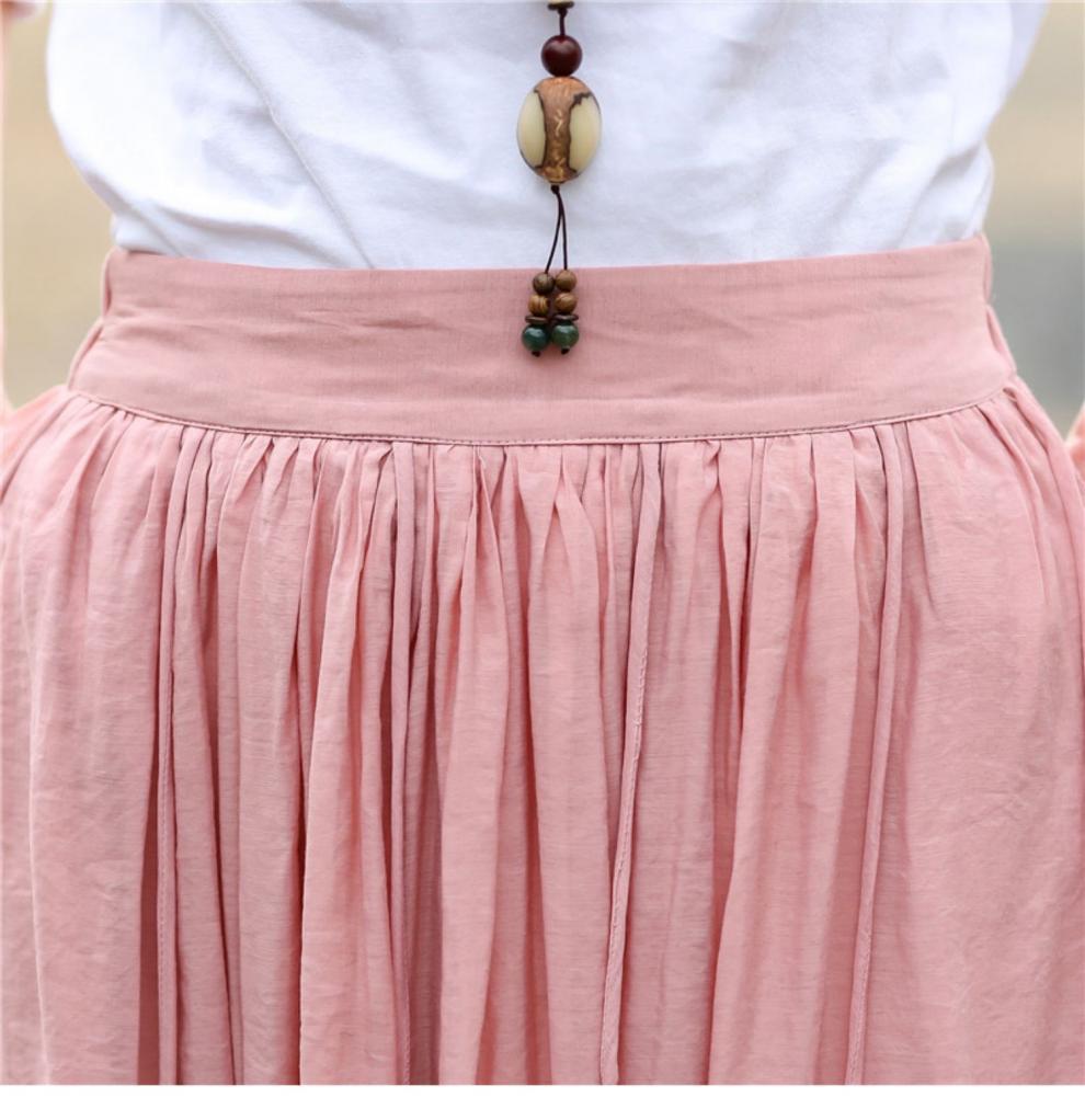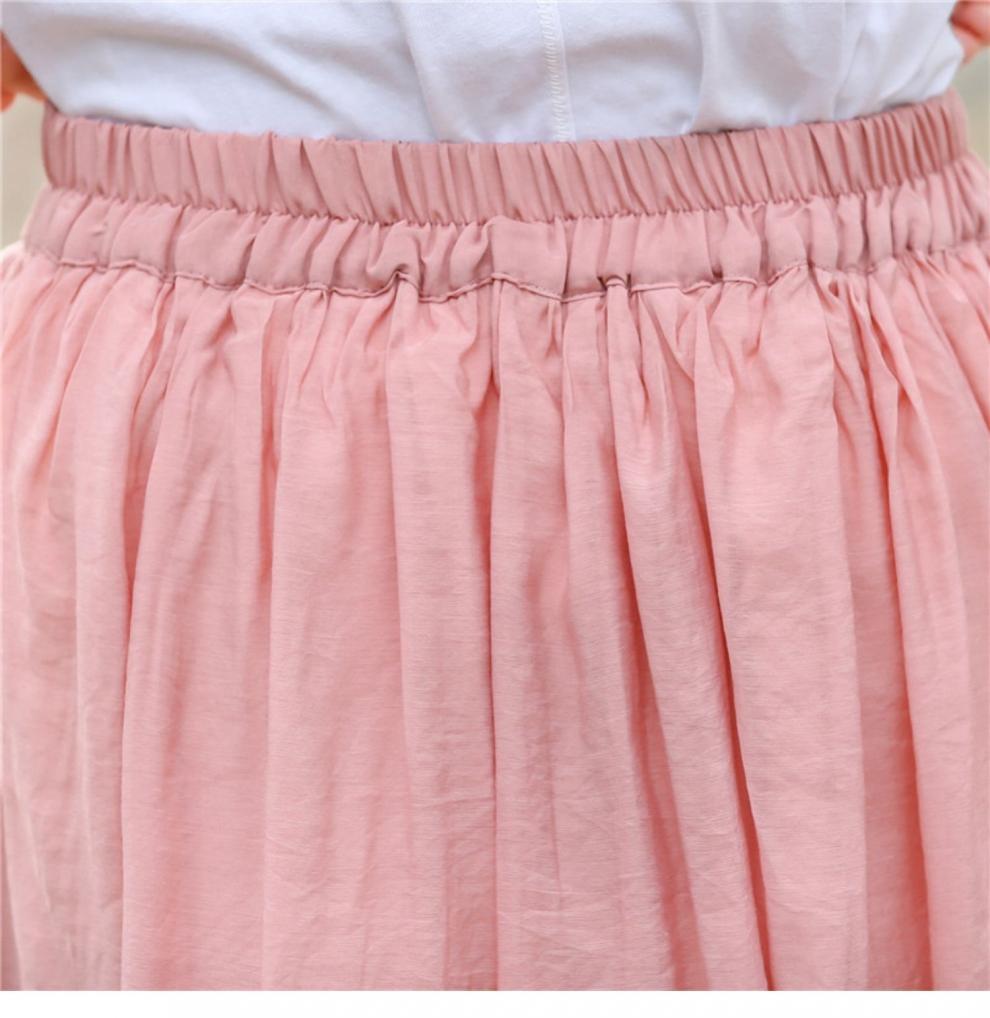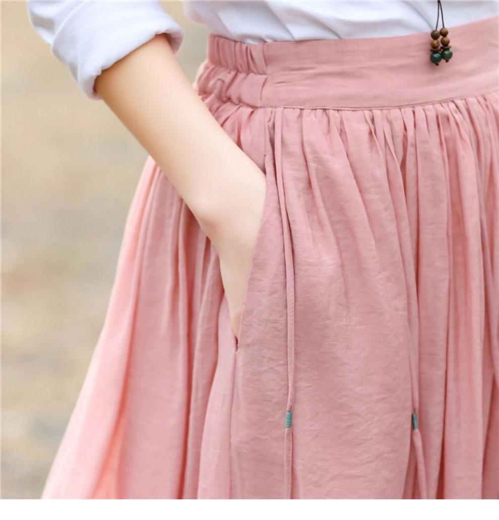 Falda de estilo literario de verano 2025, nueva falda de lino y algodón con cintura elástica, falda suelta para niños