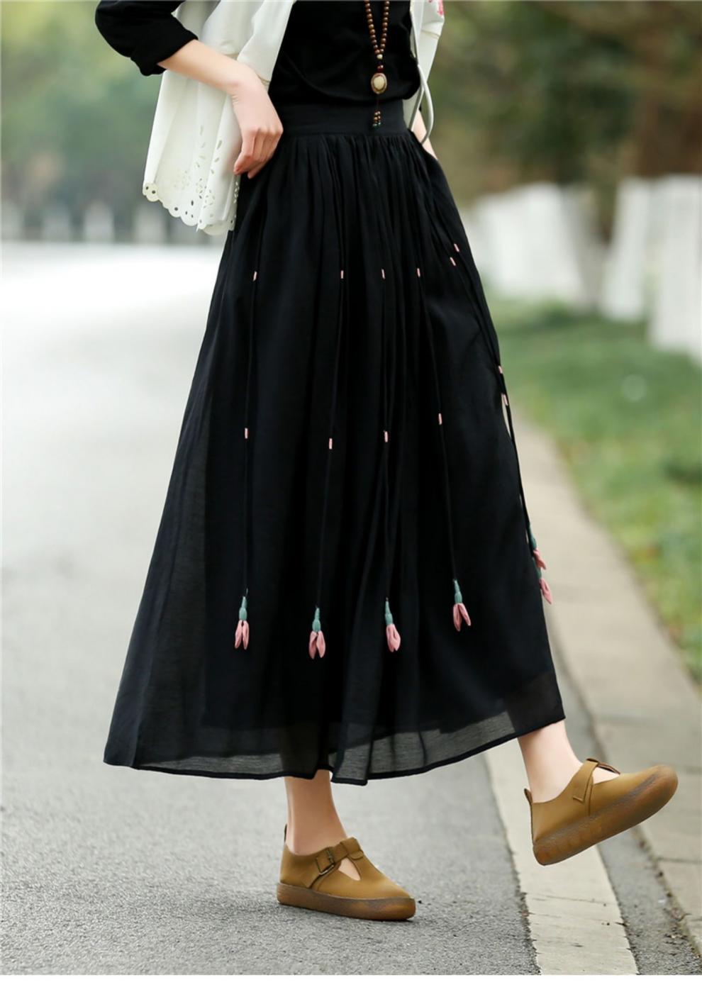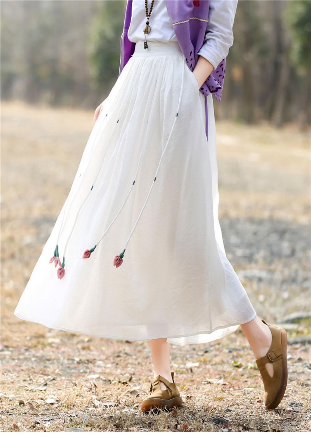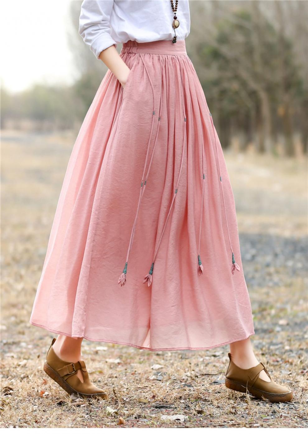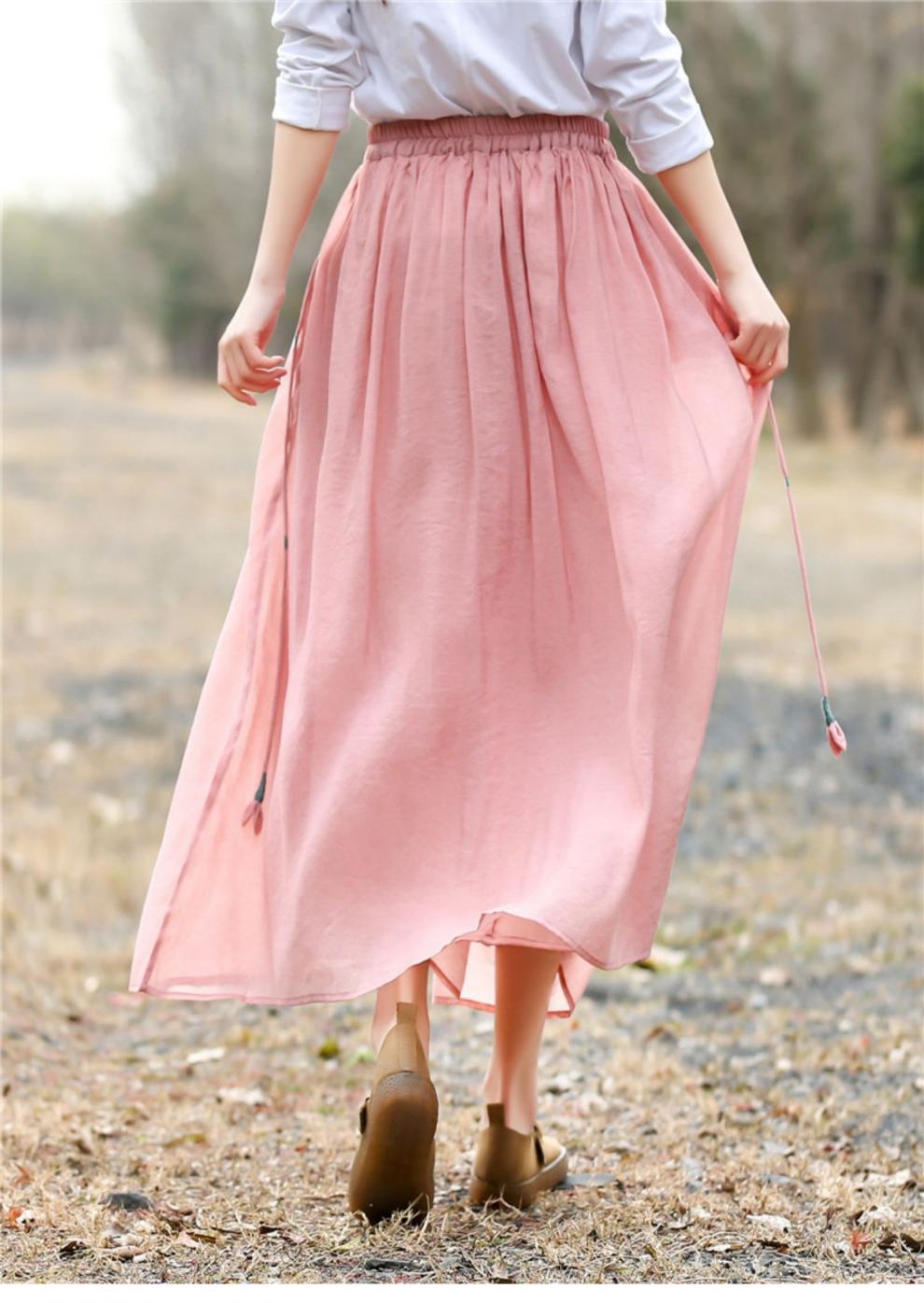 Falda de estilo literario de verano 2025, nueva falda de lino y algodón con cintura elástica, falda suelta para niños