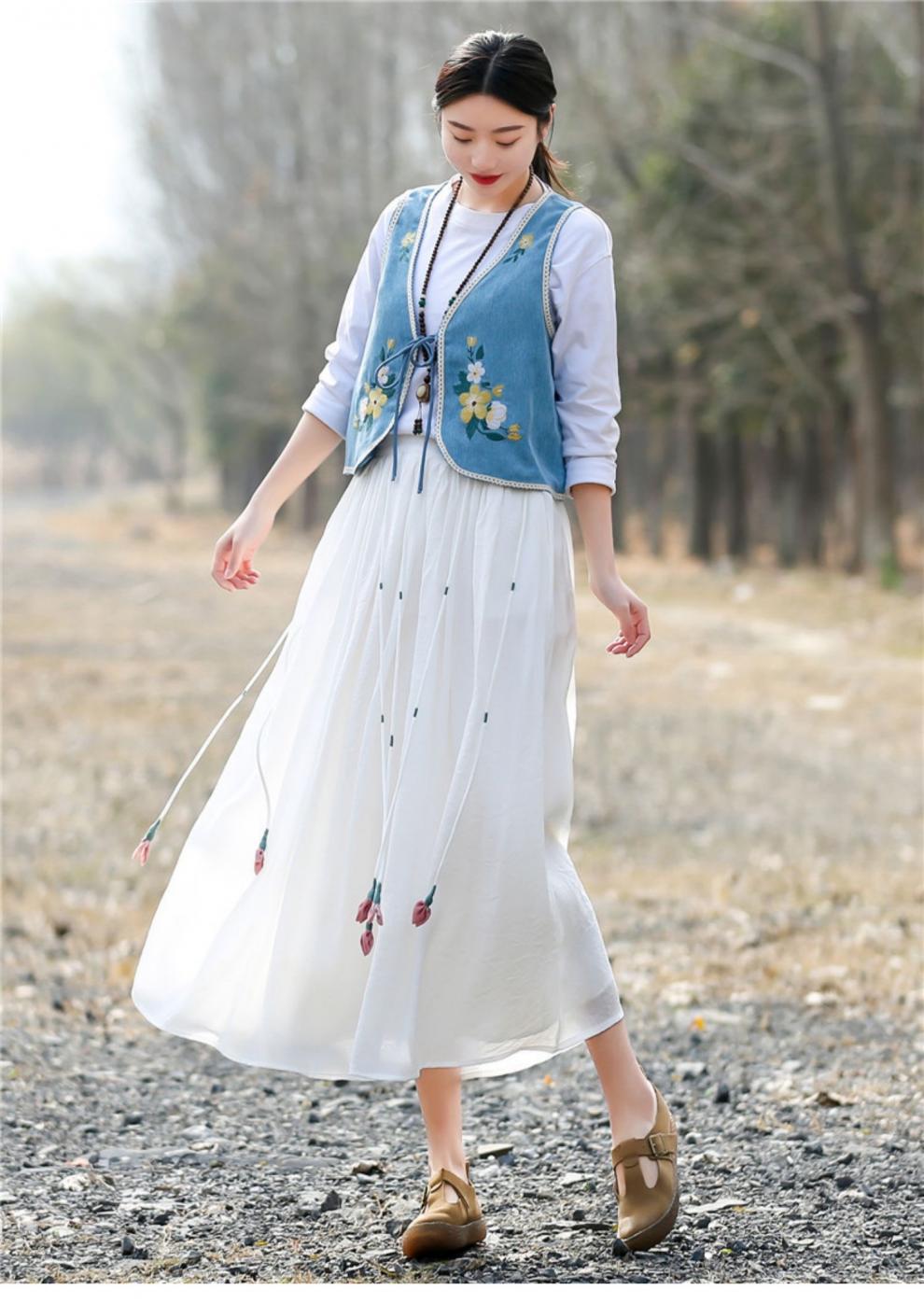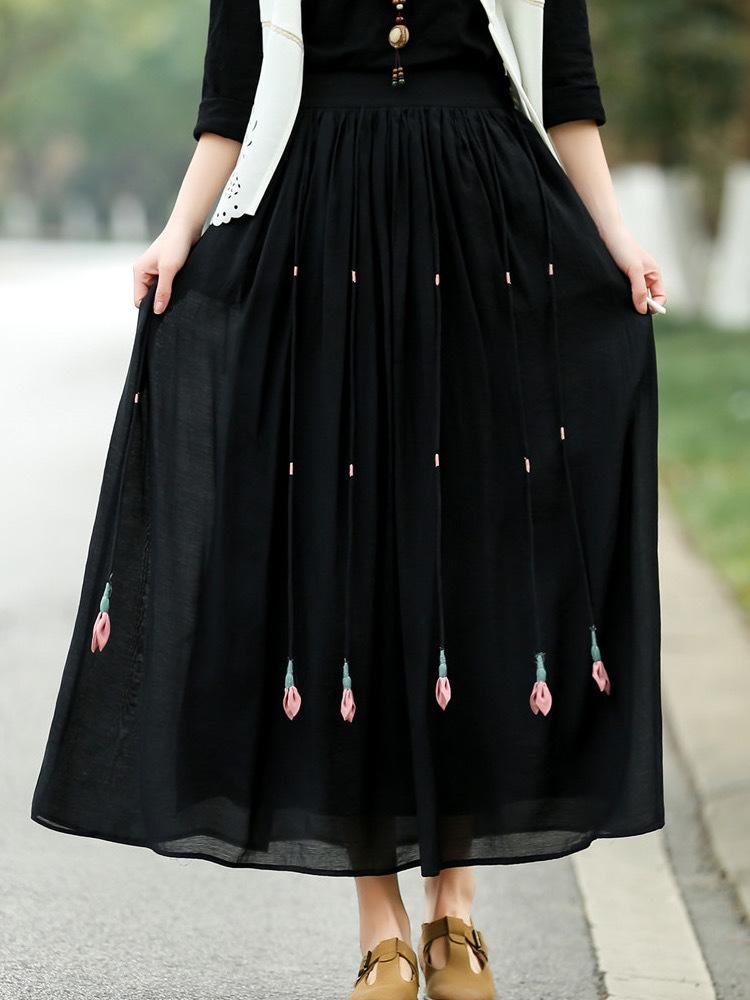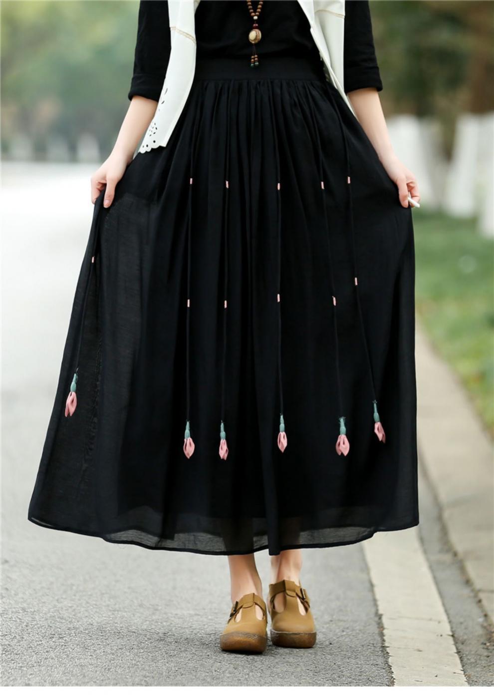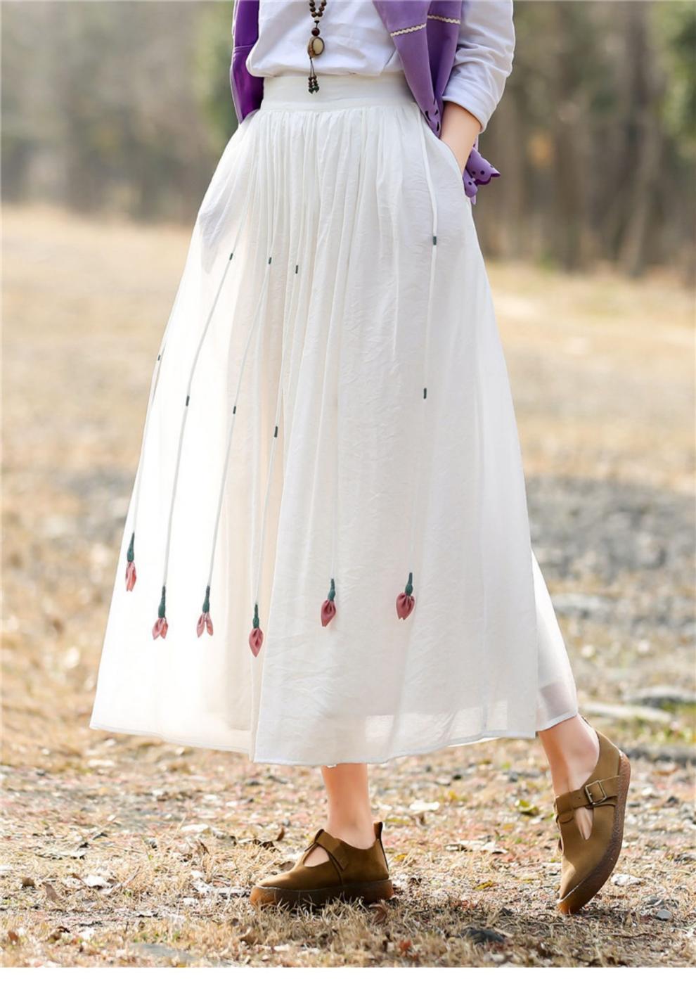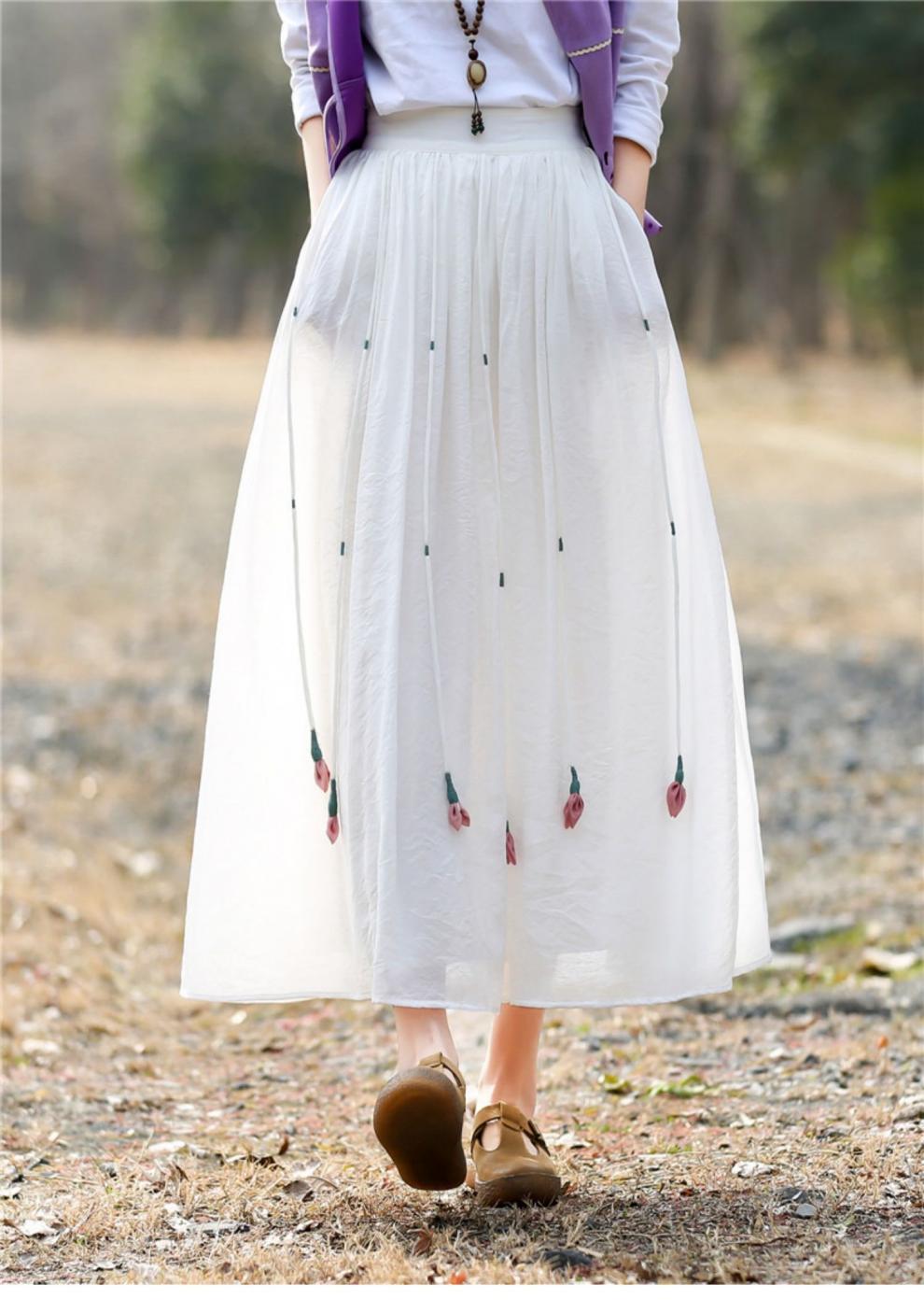 Falda de estilo literario de verano 2025, nueva falda de lino y algodón con cintura elástica, falda suelta para niños