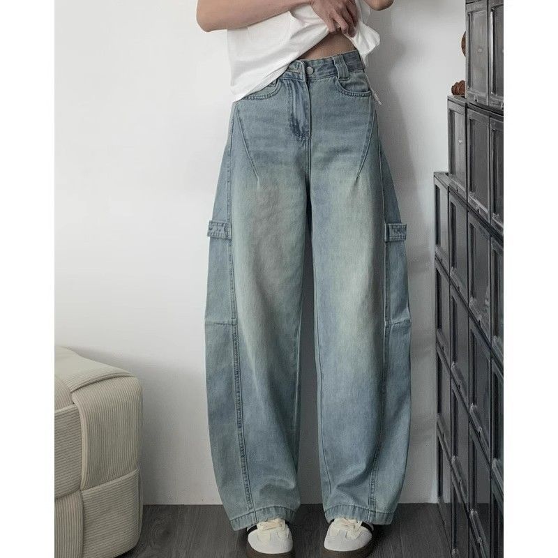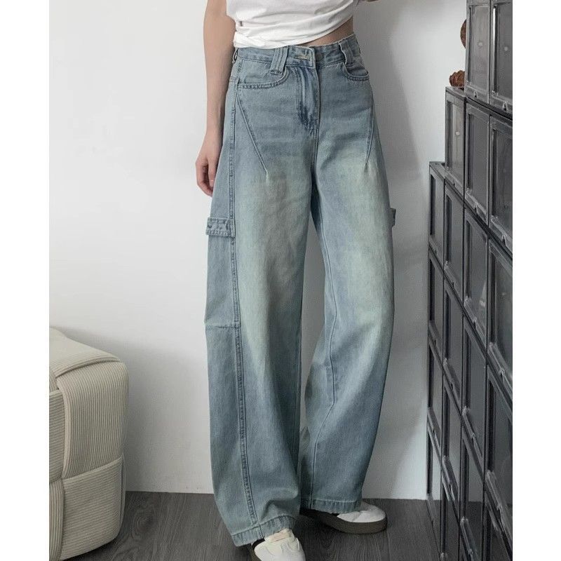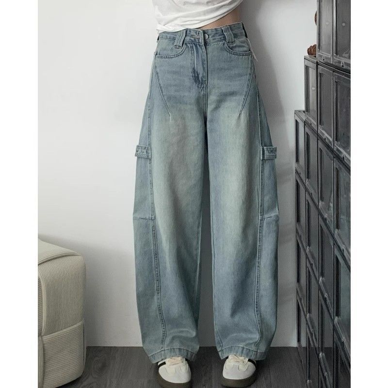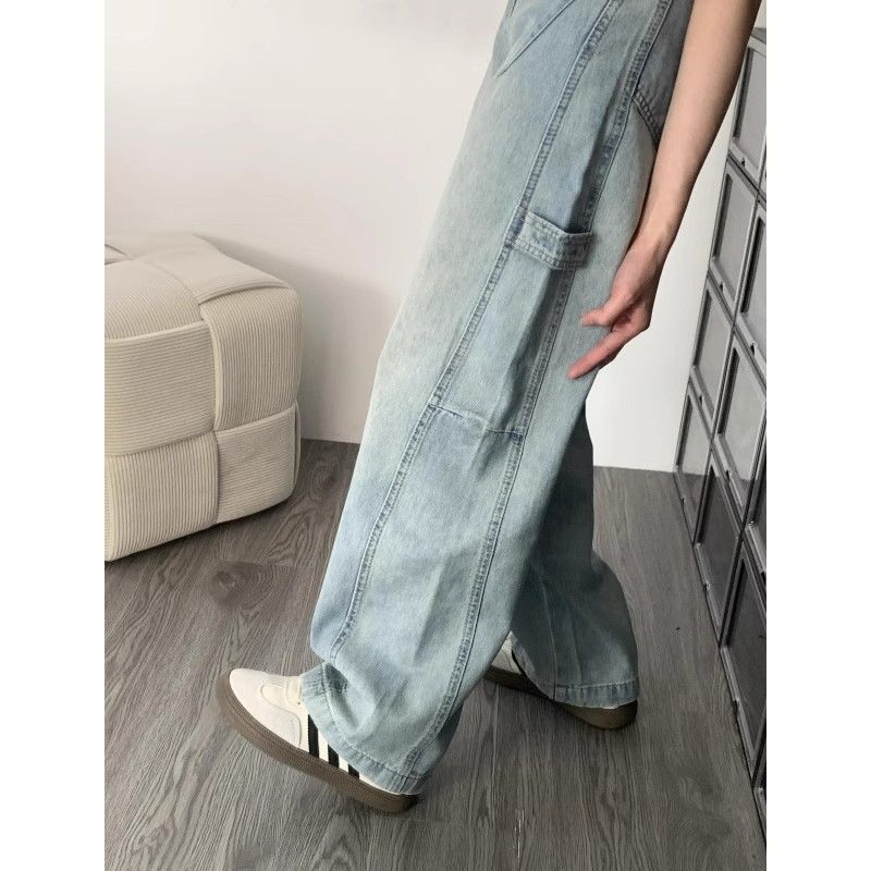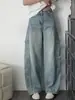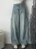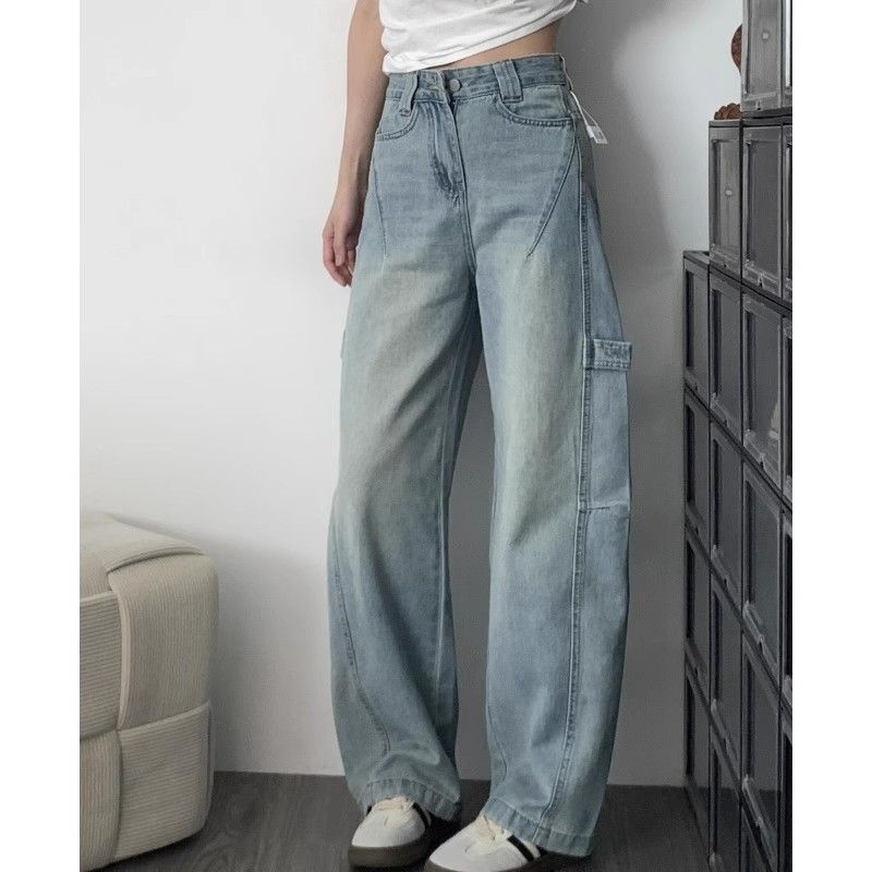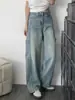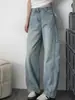 Diseño de Estilo Americano Sentido Costuras Machete Jeans de Mujer Adelgazantes Combinan con Todo Blanco para Usar Pantalones Holgados de Pierna Ancha Altos Talla Extra