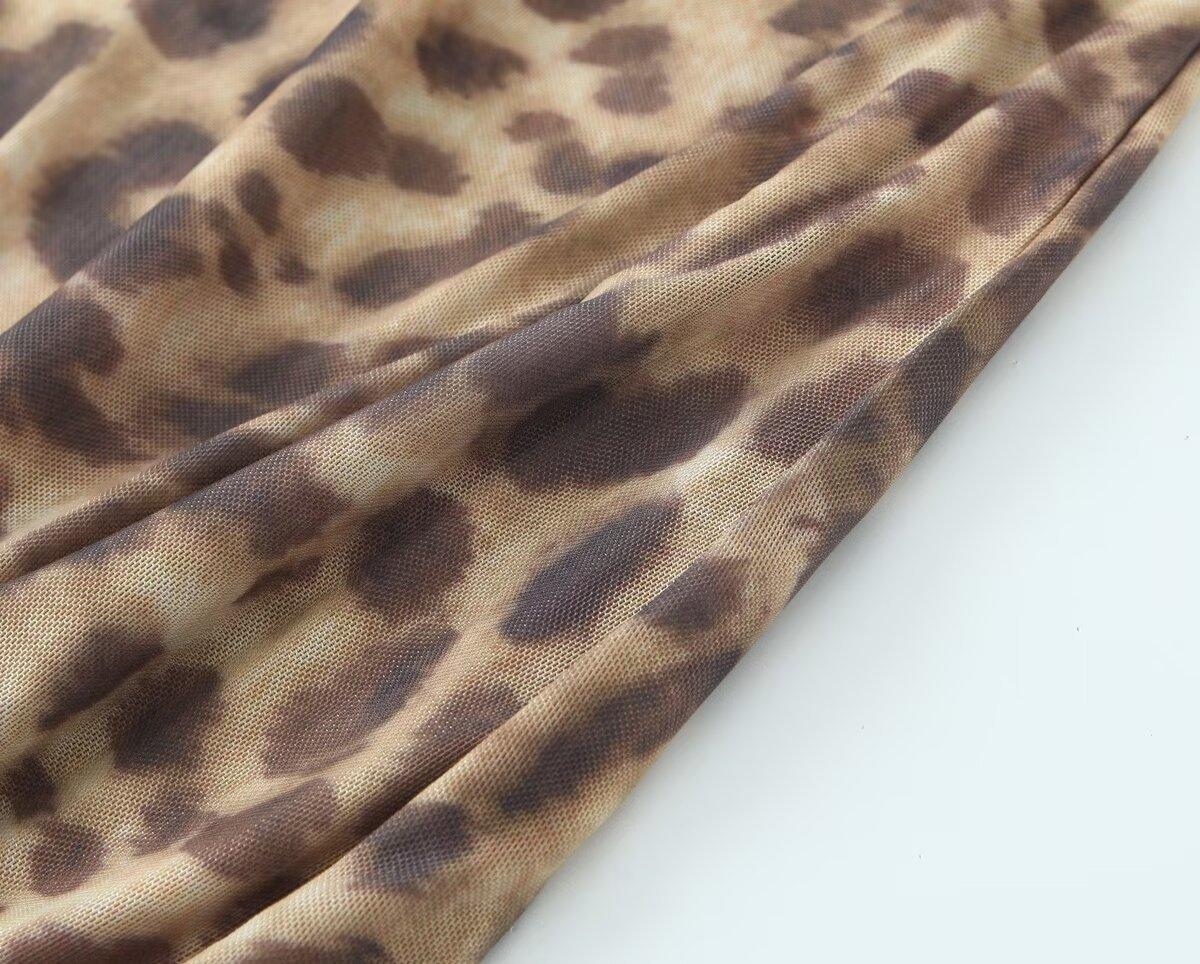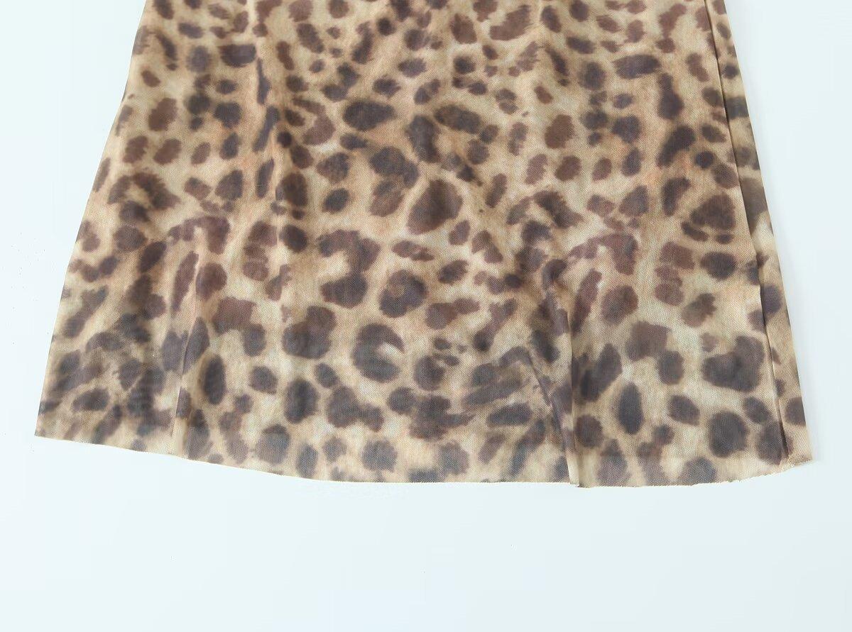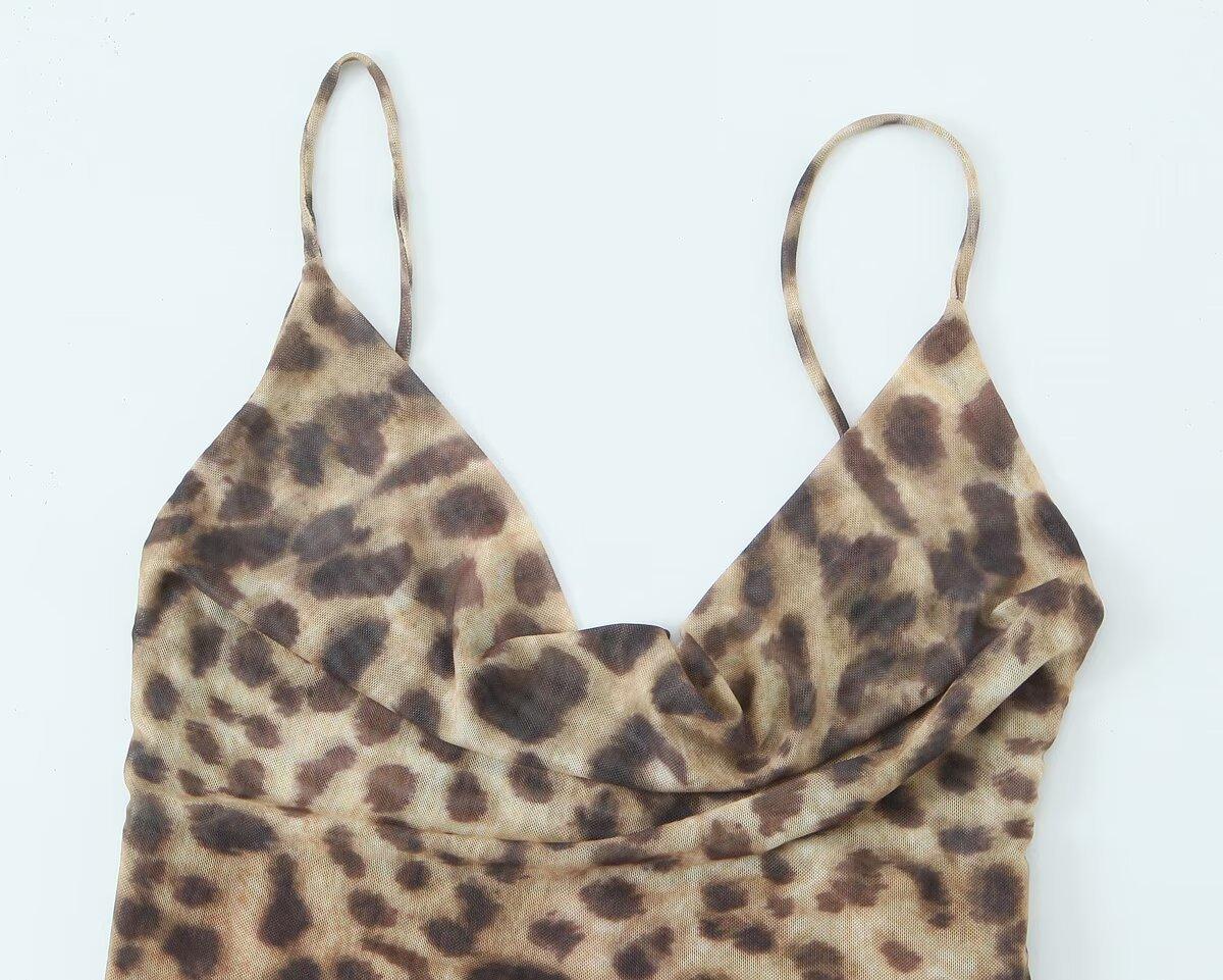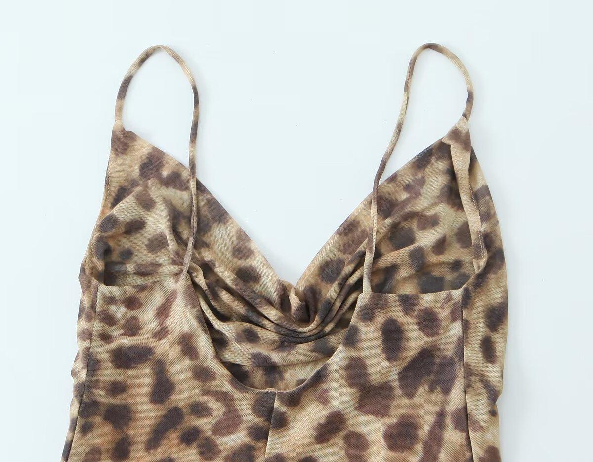 6768-25 Primavera Nuevo Estilo Europeo y Americano Moda Corto Sexy Vestido de Tirantes de Malla con Estampado de Leopardo