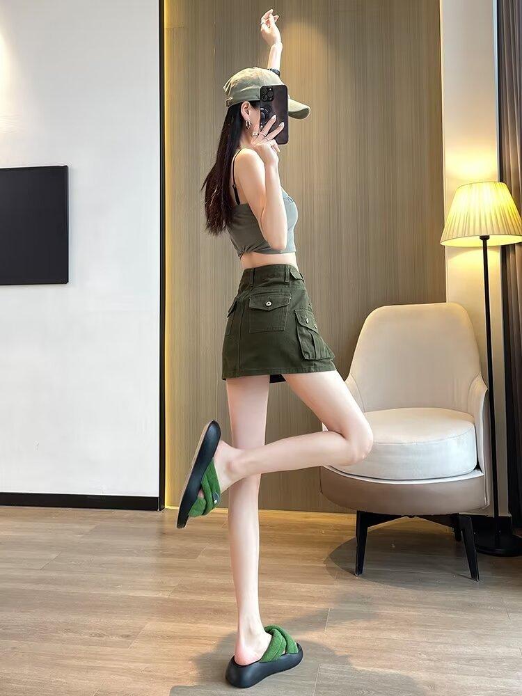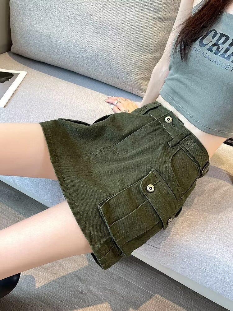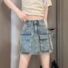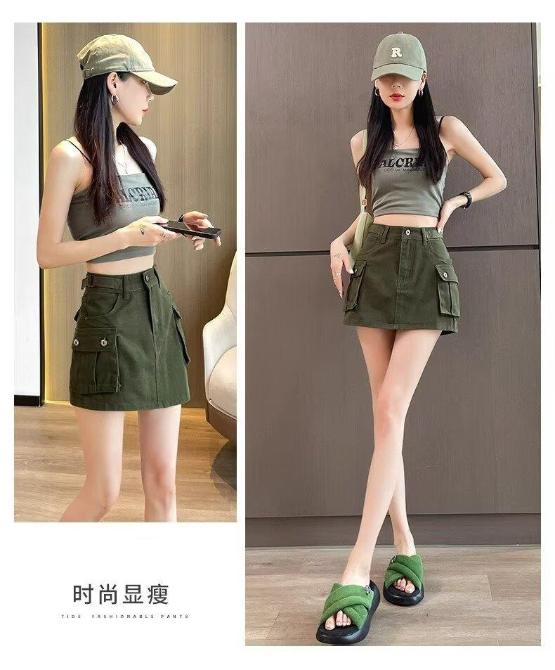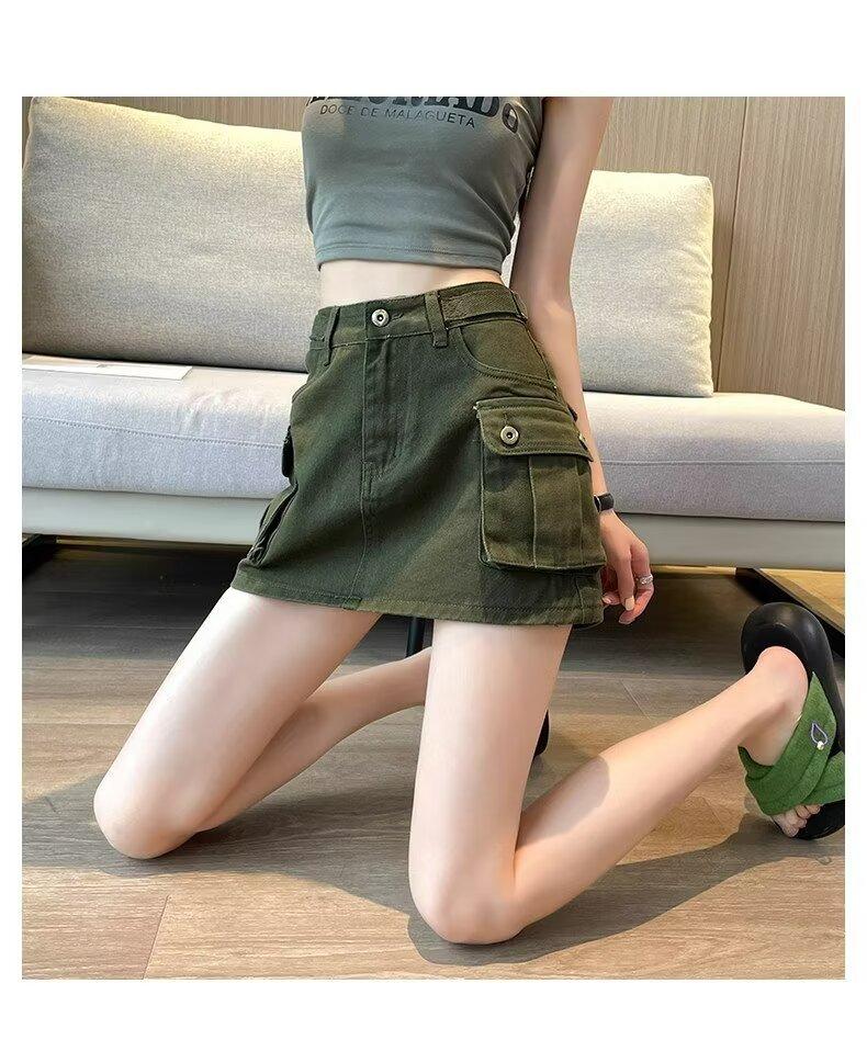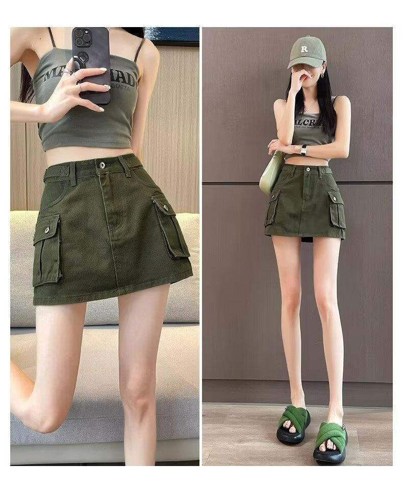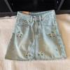 Falda Corta de Mezclilla para Mujer, Verano Chica Caliente, Falda A-Line de Cintura Alta con Efecto Adelgazante, Falda Versátil Ajustada a las Caderas, Falda de Mezclilla de Moda
