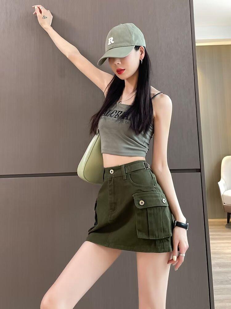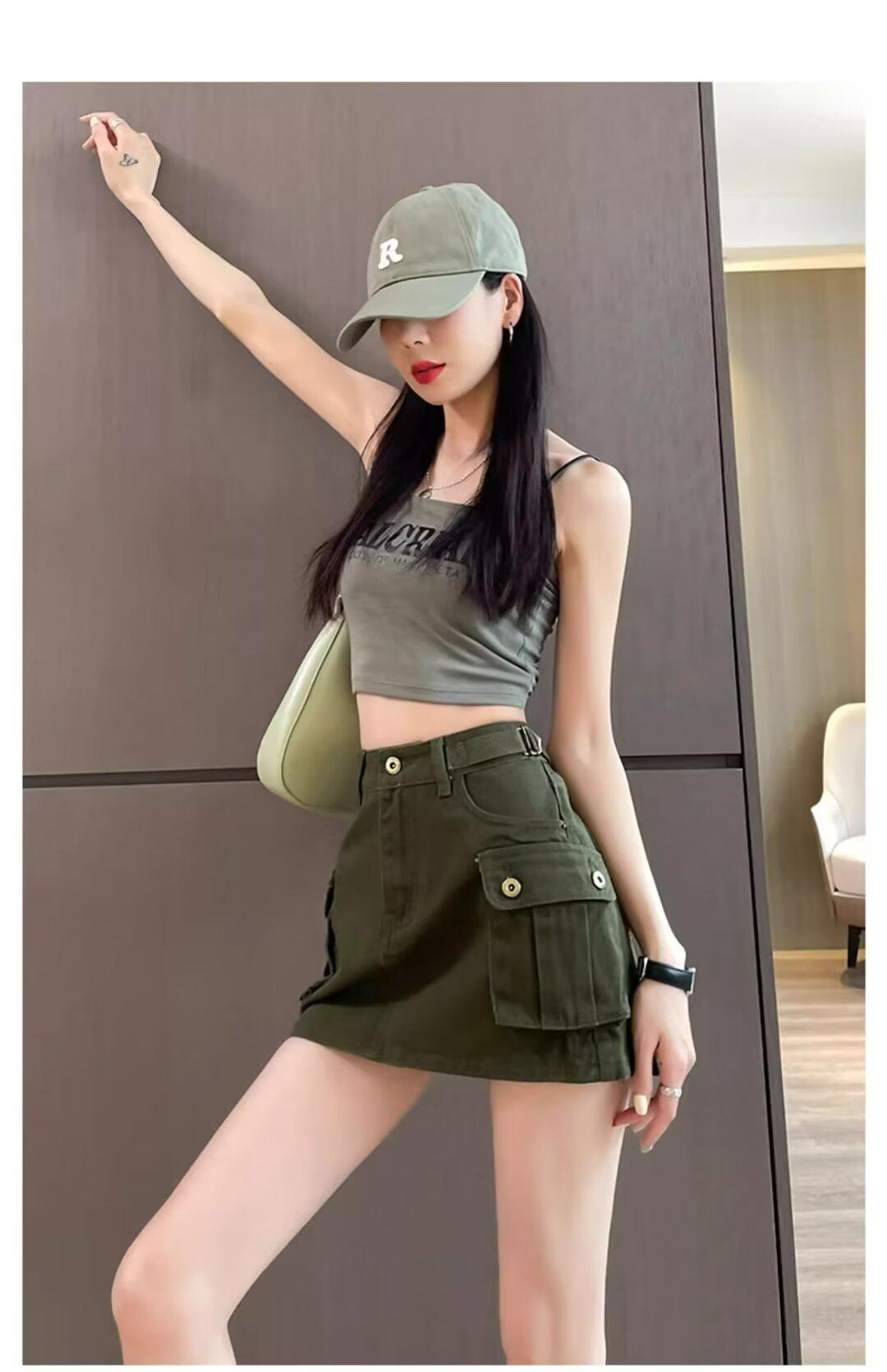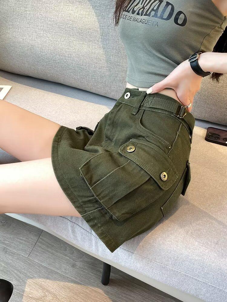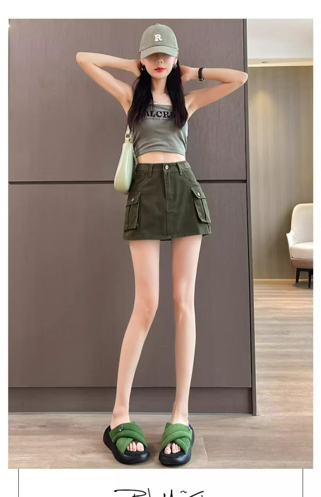 Falda Corta de Mezclilla para Mujer, Verano Chica Caliente, Falda A-Line de Cintura Alta con Efecto Adelgazante, Falda Versátil Ajustada a las Caderas, Falda de Mezclilla de Moda