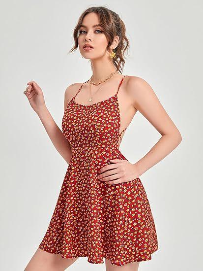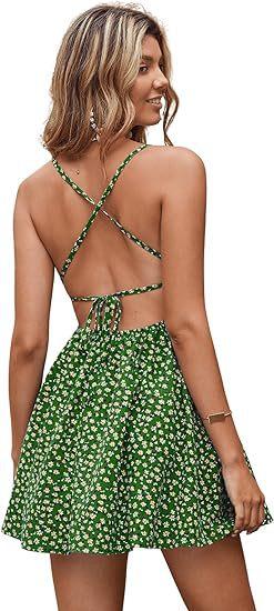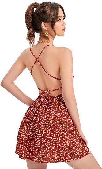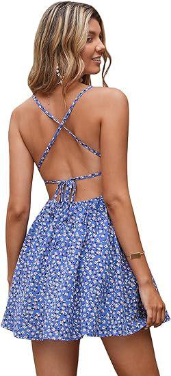 Amazon Transfronterizo 2025 Vestido de Verano para Mujer con Estampado Floral Espalda Descubierta con Tirantes Sin Mangas Vestido de Tirantes