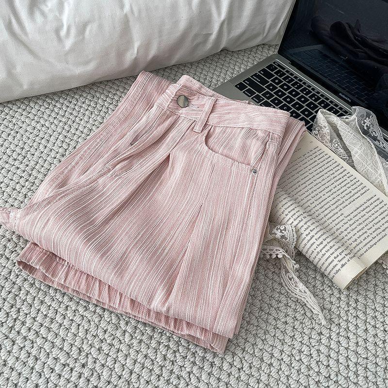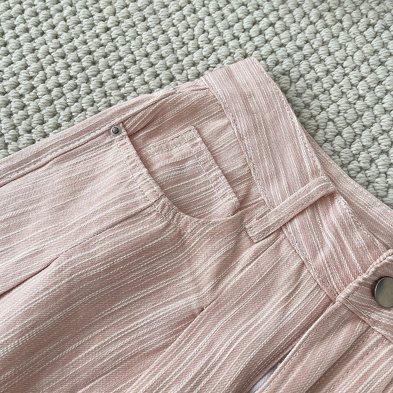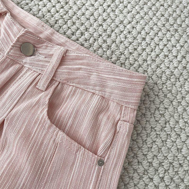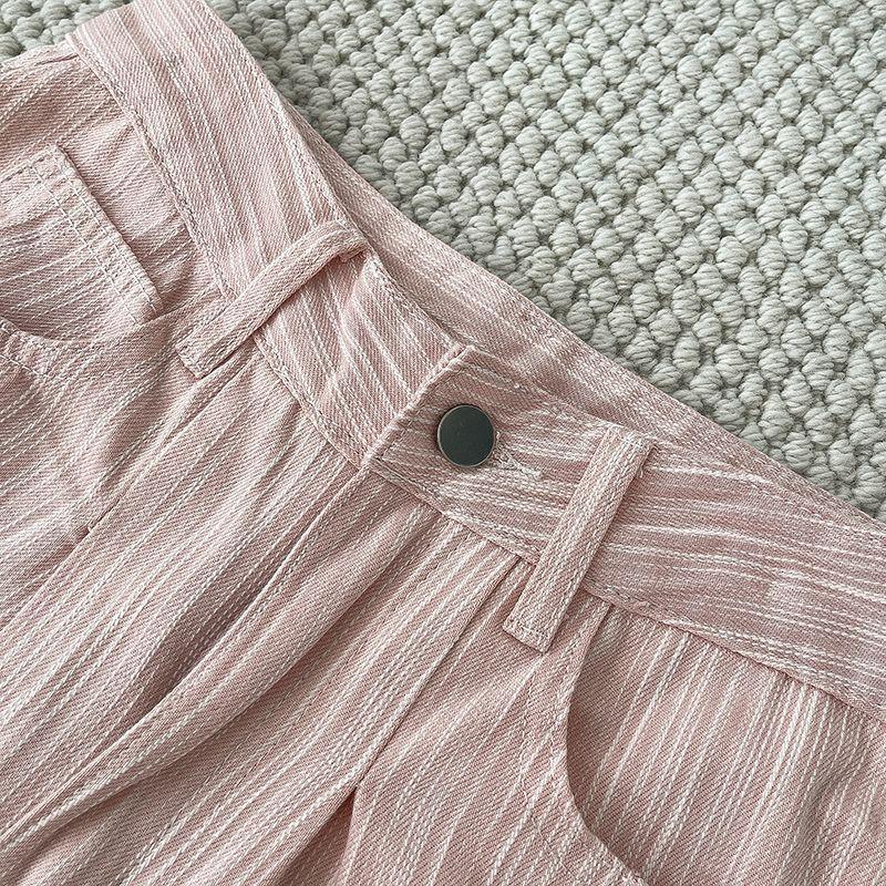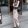 Jeans rectos holgados rosas de cintura alta para mujer, verano, nuevo diseño, sentido de la textura, aspecto delgado, combinan con todo, pantalones de pierna estrecha/ancha