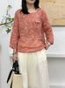 Camisa de ramio para mujer, primavera y verano, nueva, artística, retro, holgada, combinable, moda europea, informal, con cuello de carne, camiseta tipo pulóver