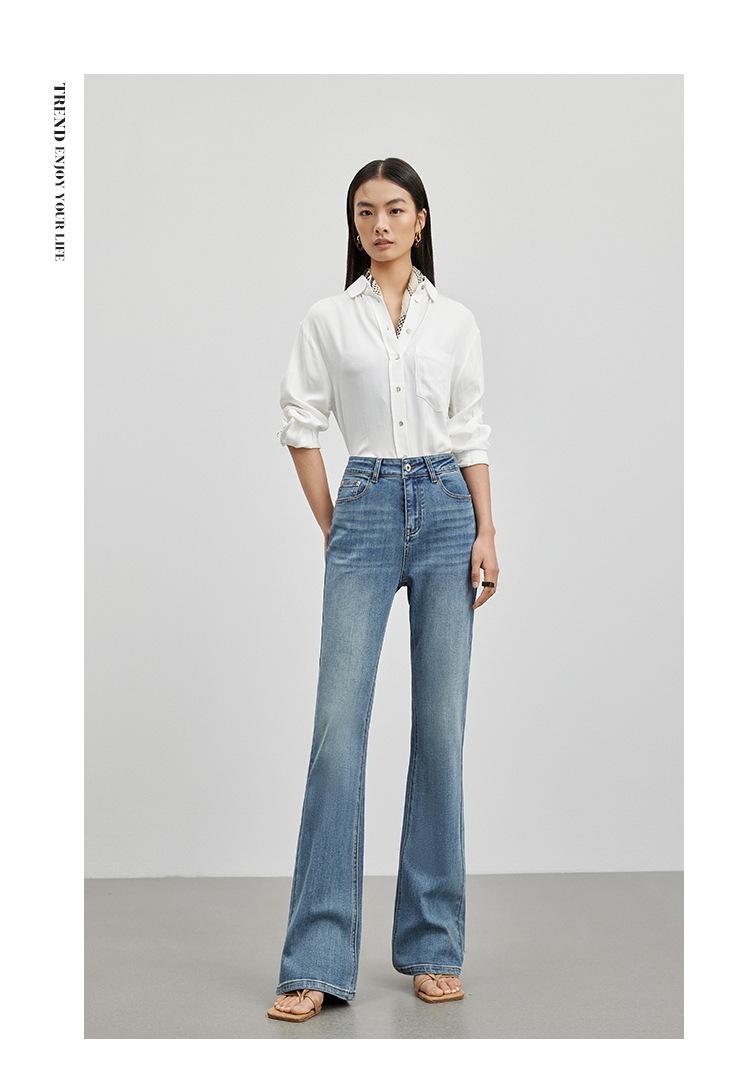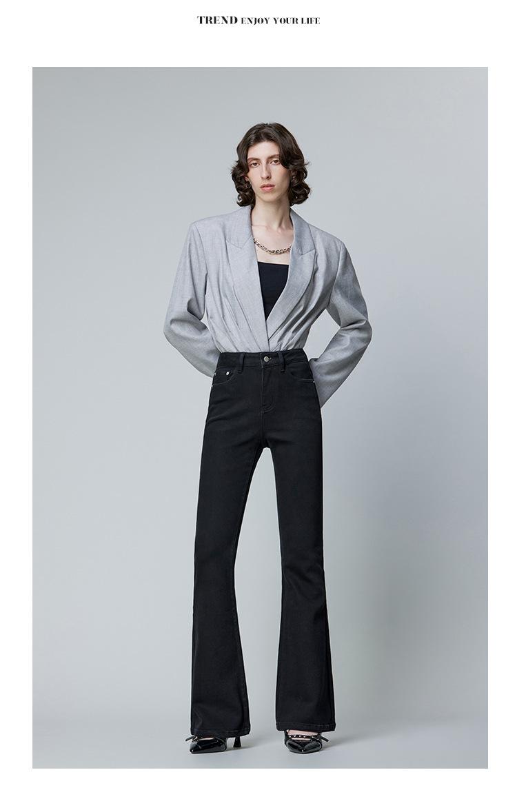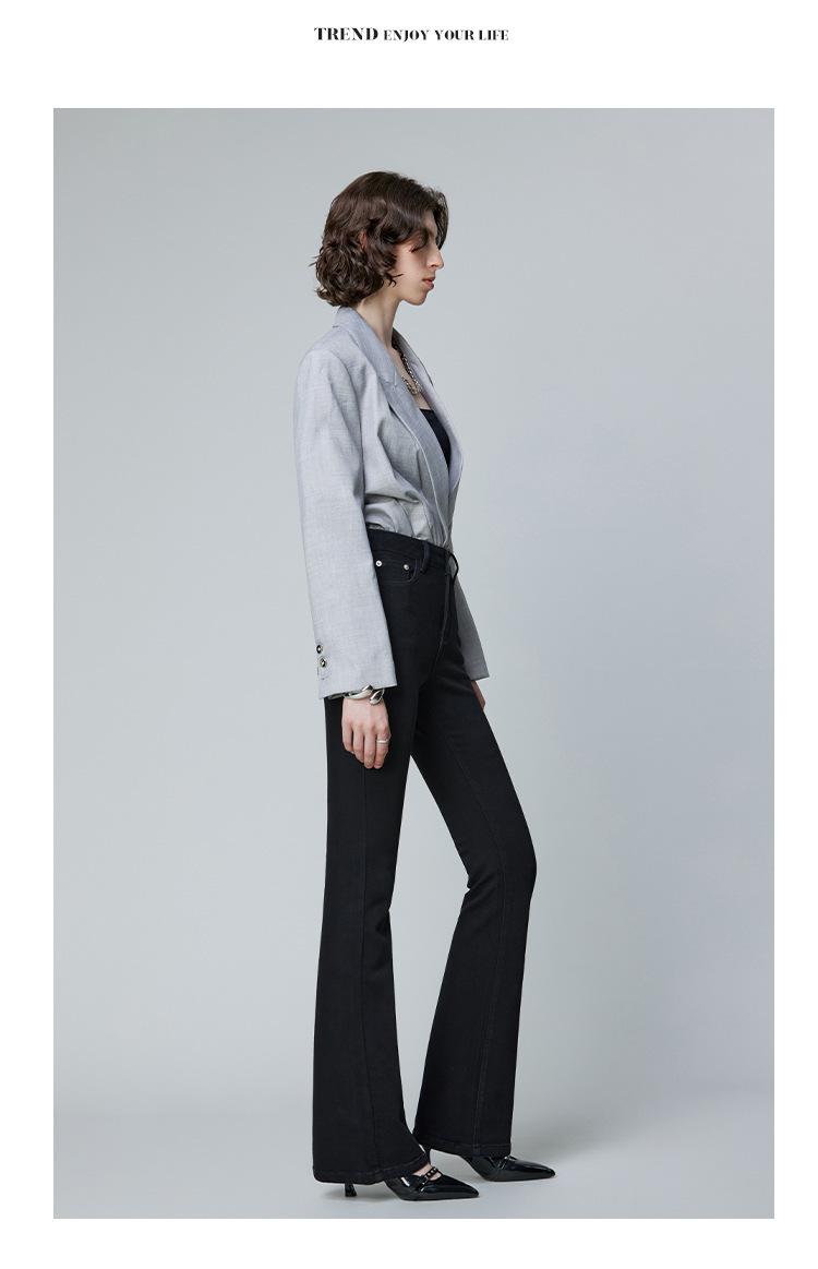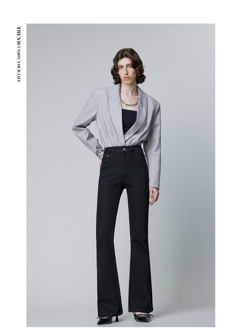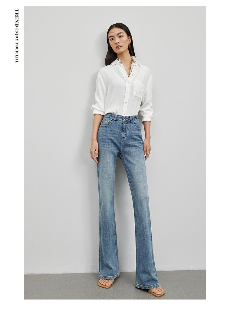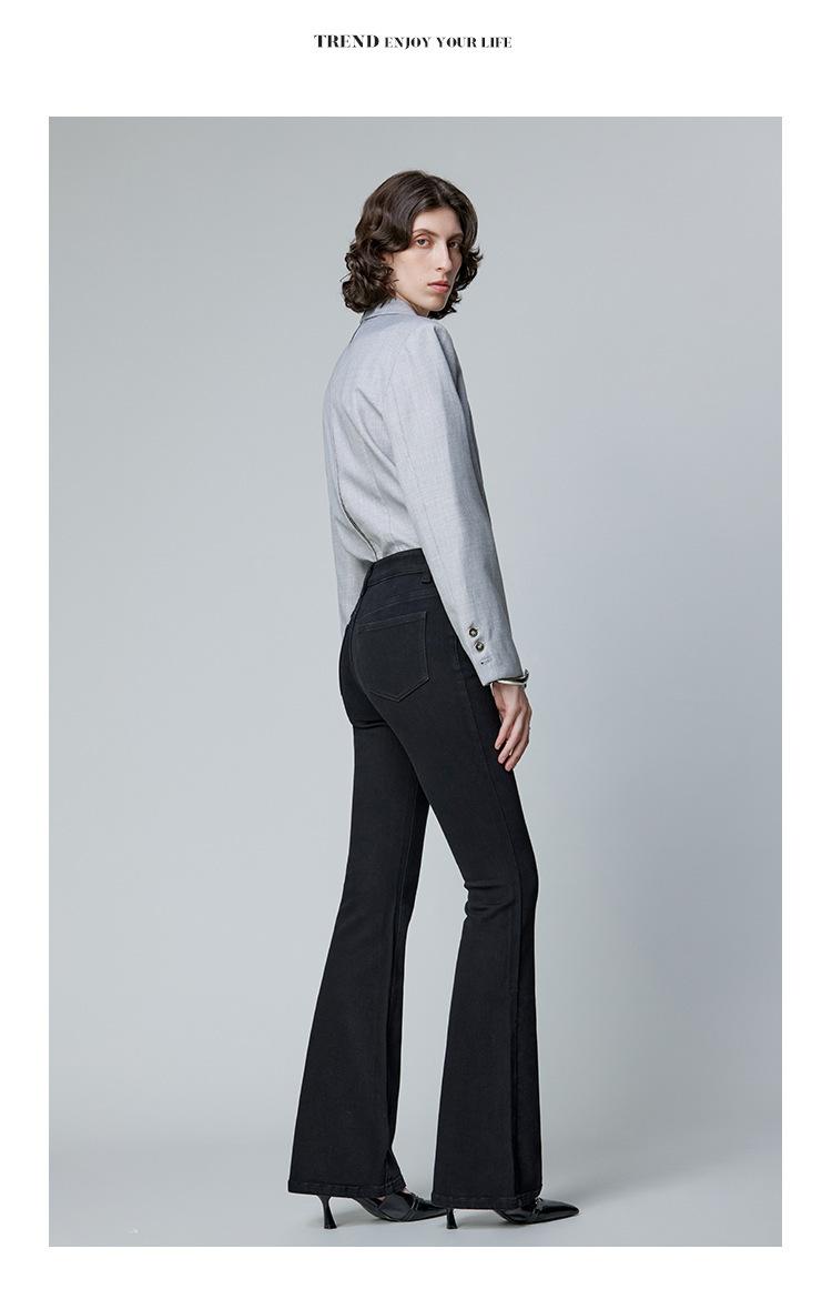 Moda Europea y Americana de Alta Gama Calidad París Jeans de Mujer Otoño Diseño de Alta Calidad Cintura Alta Adelgazantes Sencillos Pantalones Acampanados