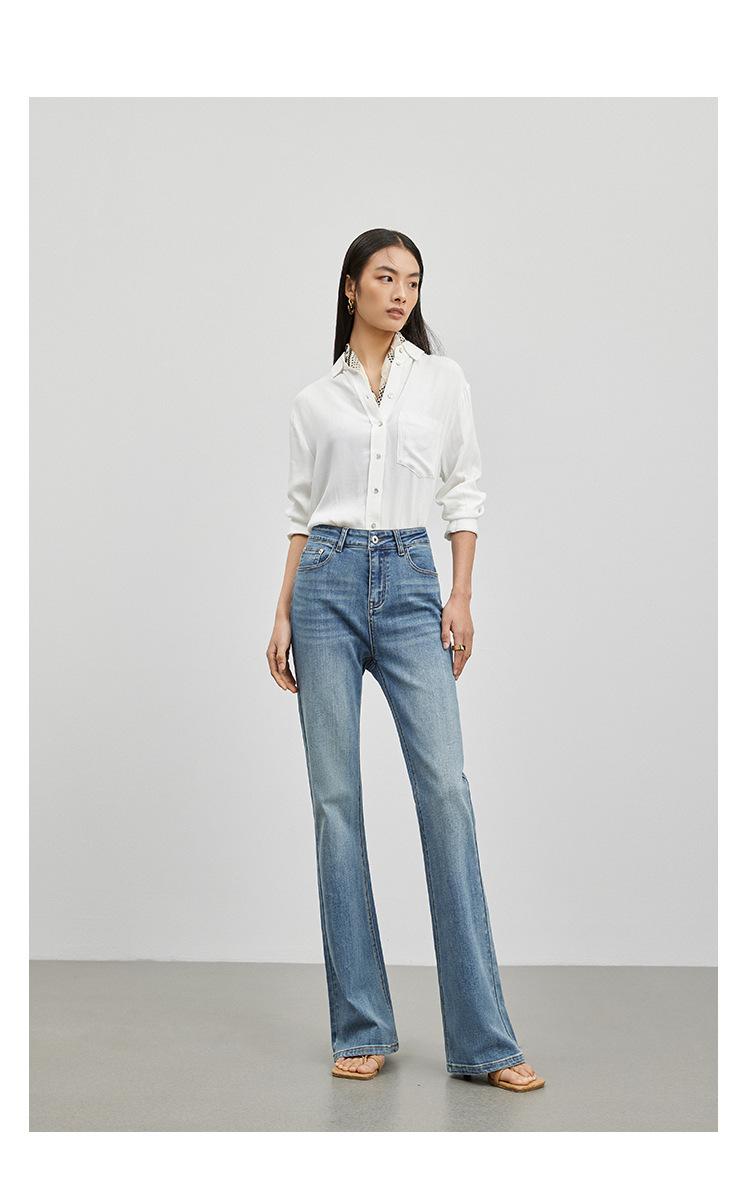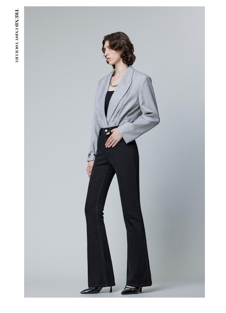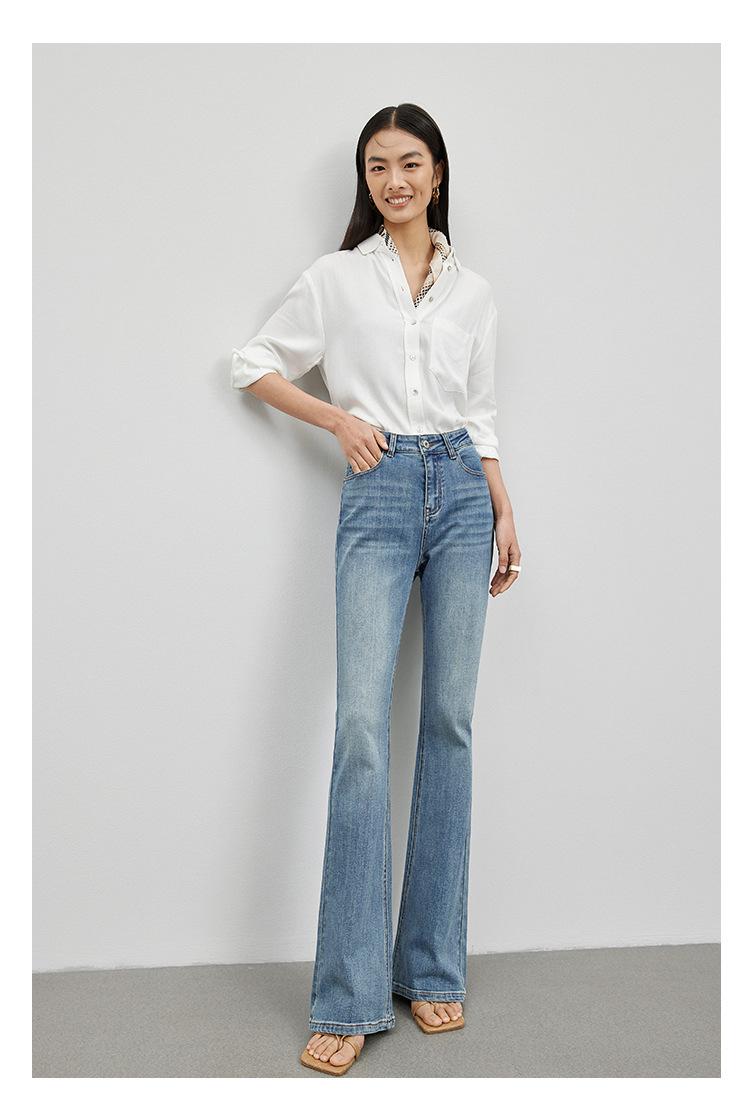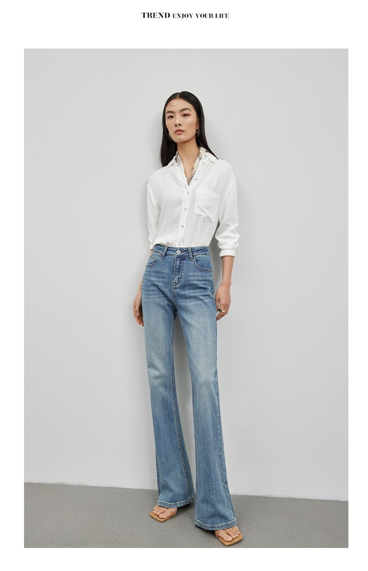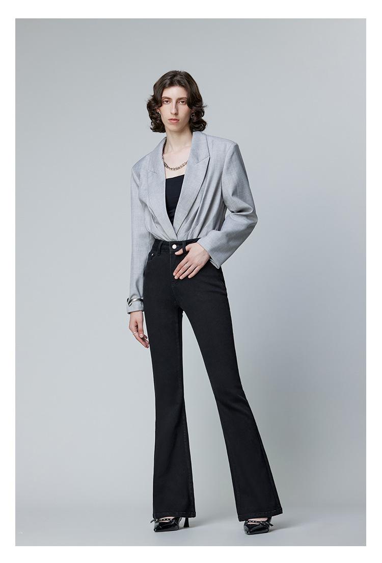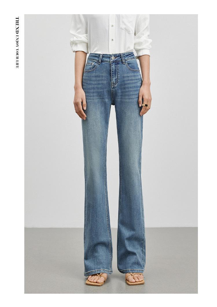 Moda Europea y Americana de Alta Gama Calidad París Jeans de Mujer Otoño Diseño de Alta Calidad Cintura Alta Adelgazantes Sencillos Pantalones Acampanados