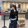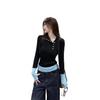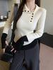 Suéter de mujer con solapa y diseño de colores contrastantes y costuras, ajustado, adelgazante, con interior grueso, para otoño e invierno.