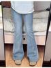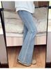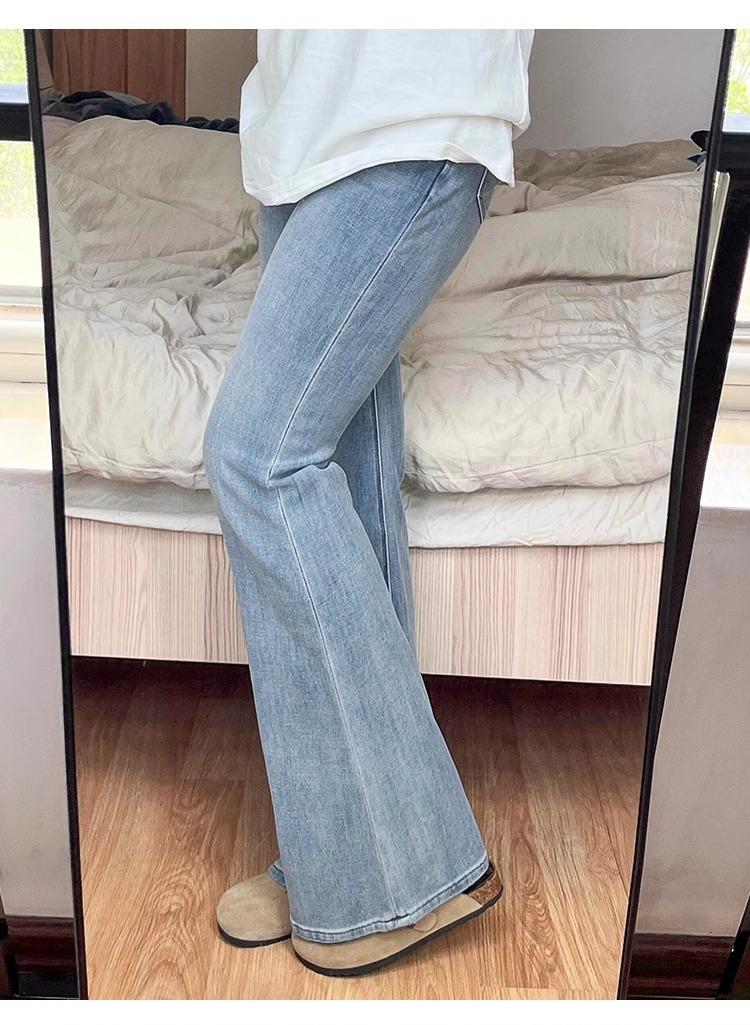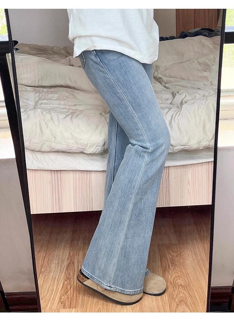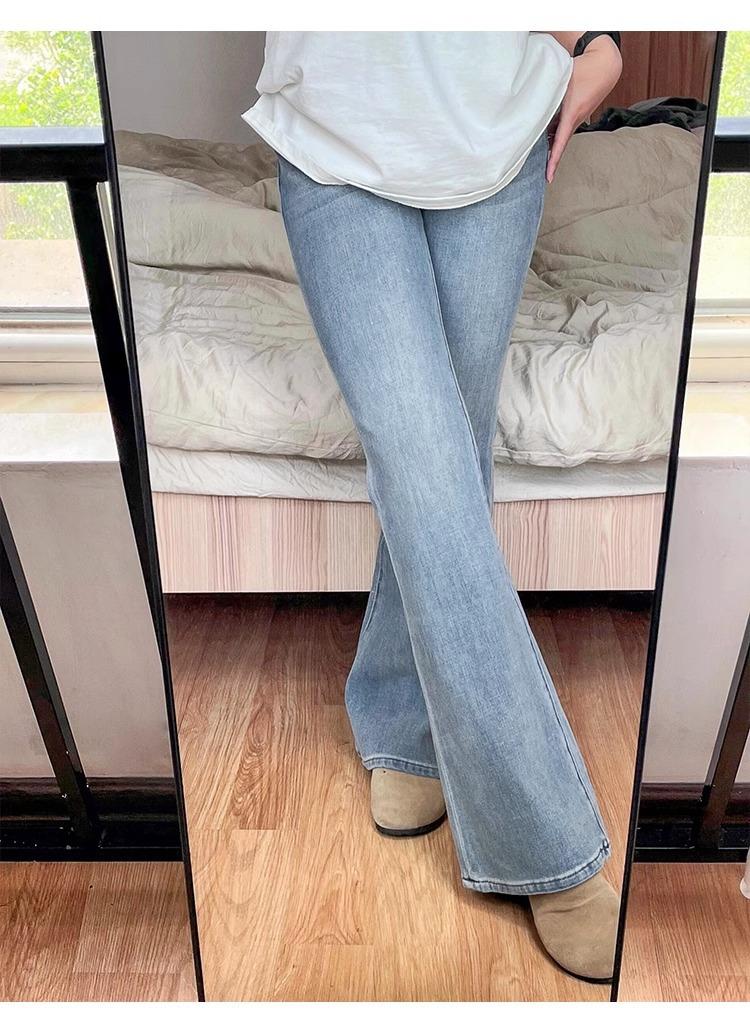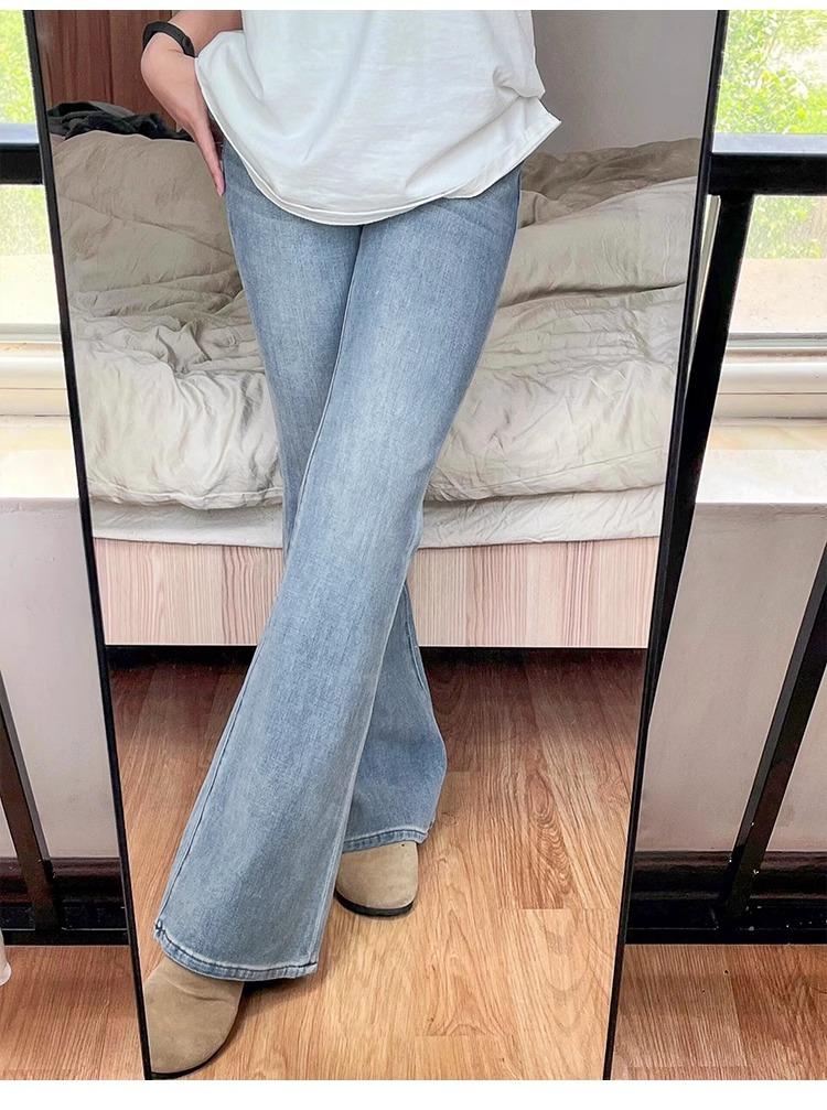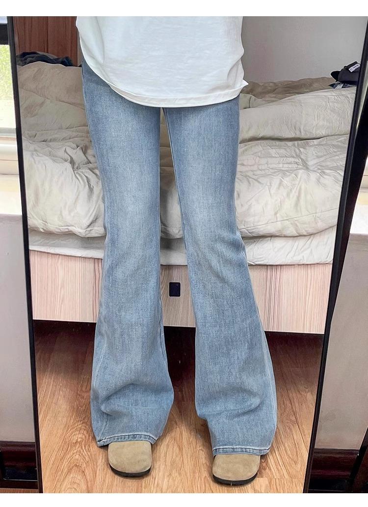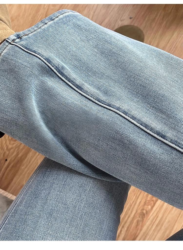 Pantalones vaqueros microblading de color claro para mujer, de primavera y verano, de cintura alta, de talla grande, elásticos, adelgazantes, con forma de pera y diseño de herradura.