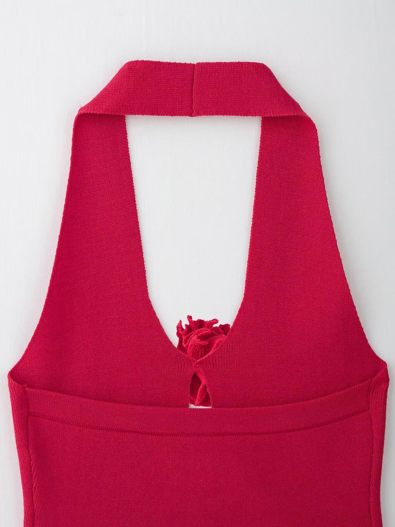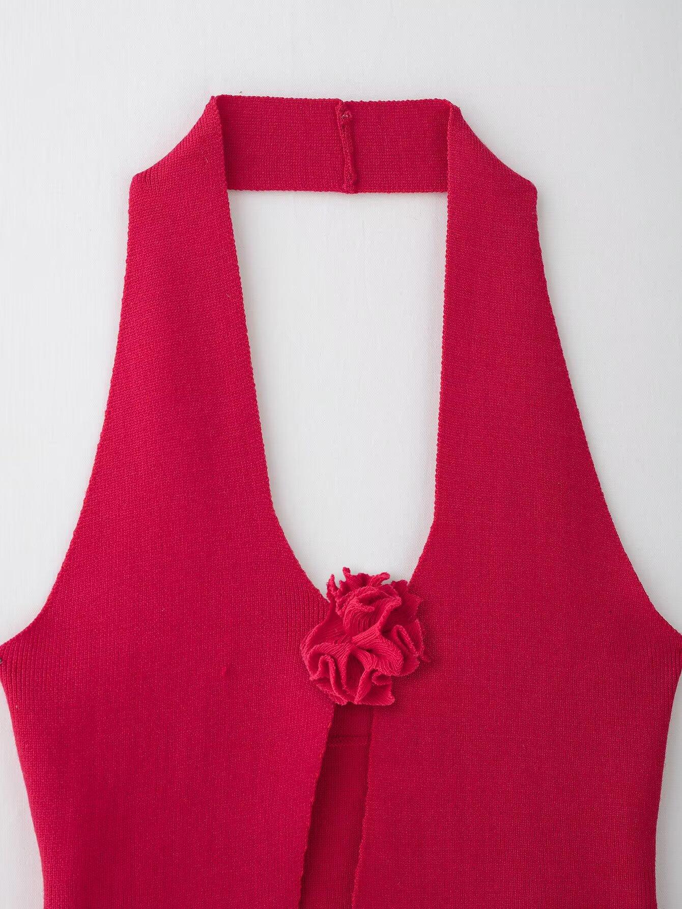 Amazon Comercio Exterior Transfronterizo Europeo y Americano Mujeres 2025 Primavera Nueva Decoración Floral Moda Cuello Rojo Cabestrillo
