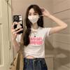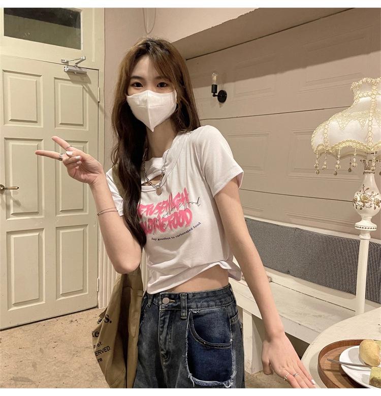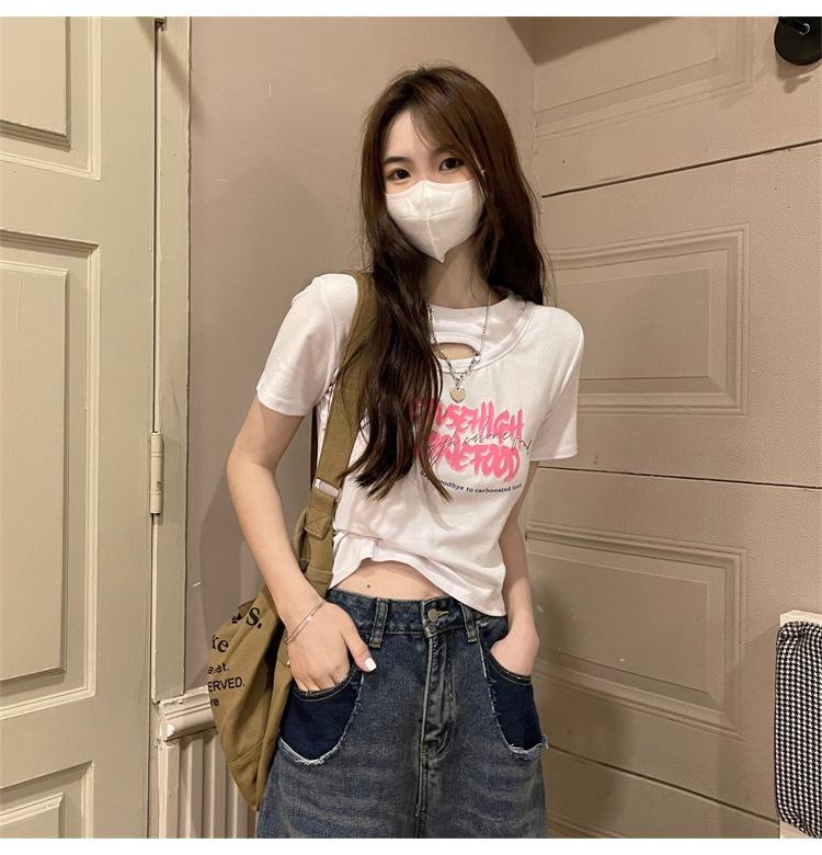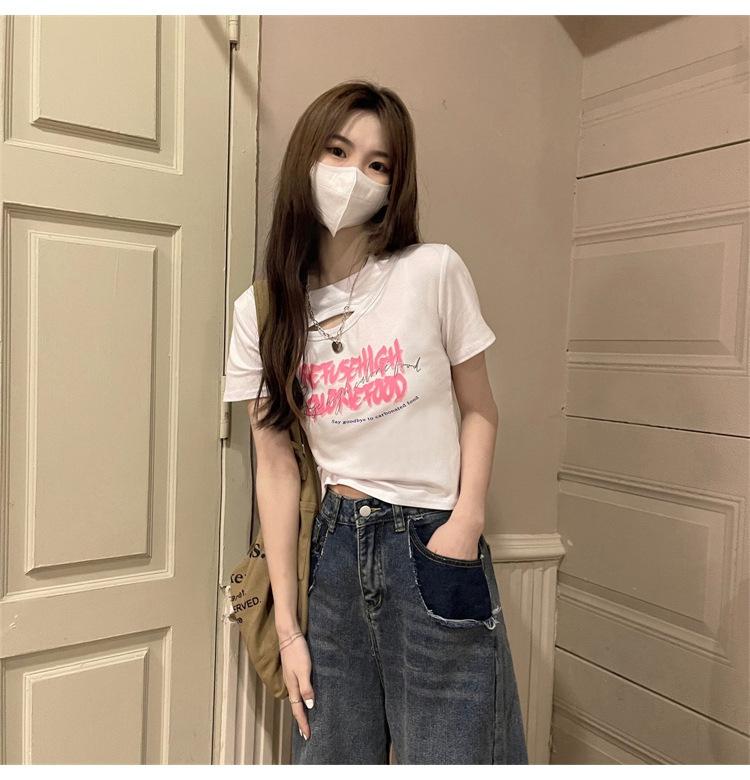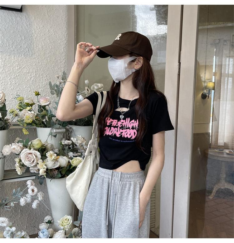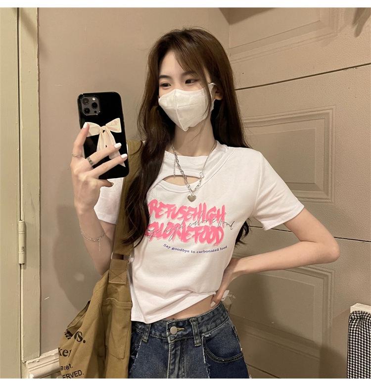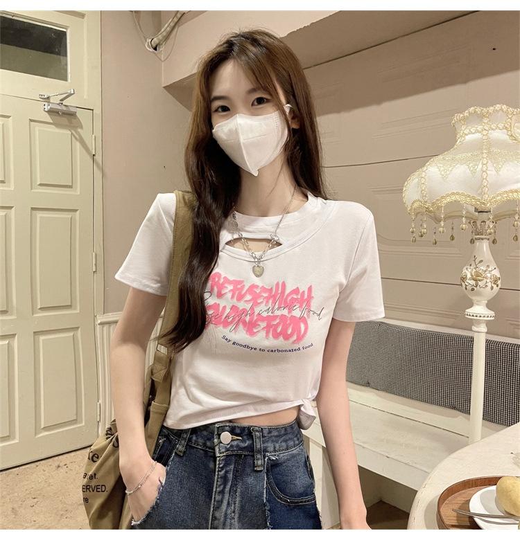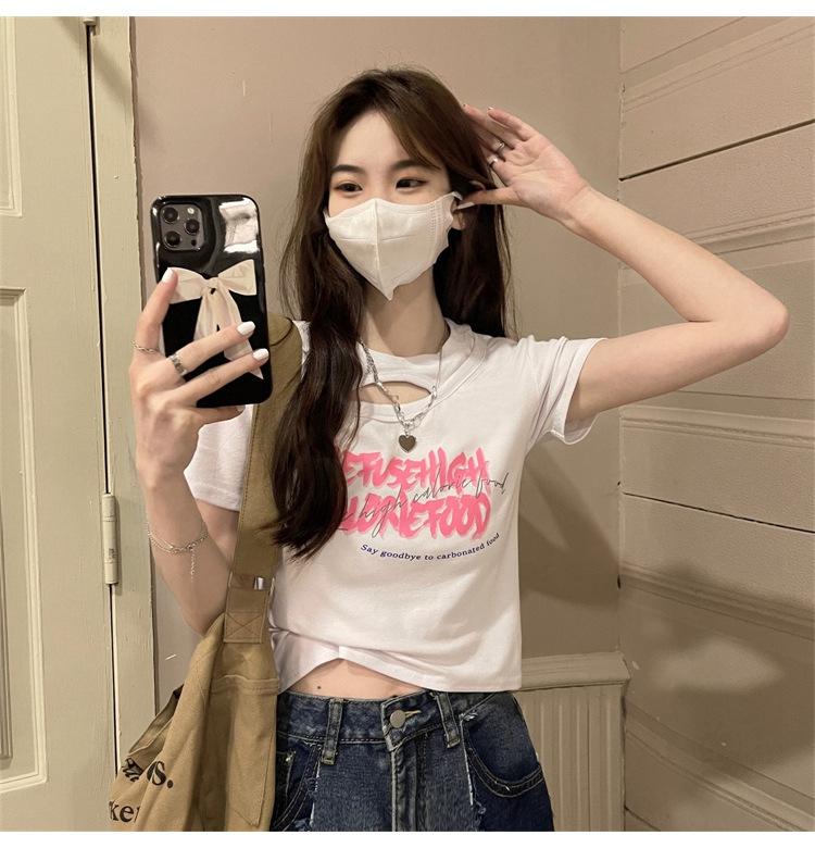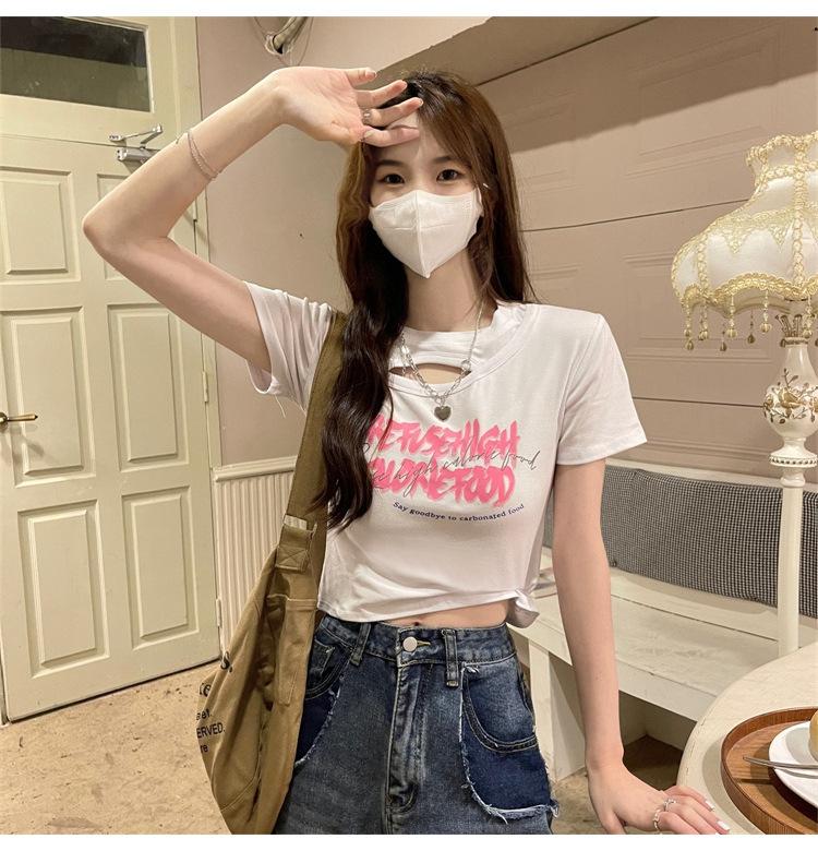 Camiseta de manga corta estilo americano para mujer, estilo sexy, verano 2025, nuevo diseño, top corto adelgazante con hombros descubiertos y tendencia