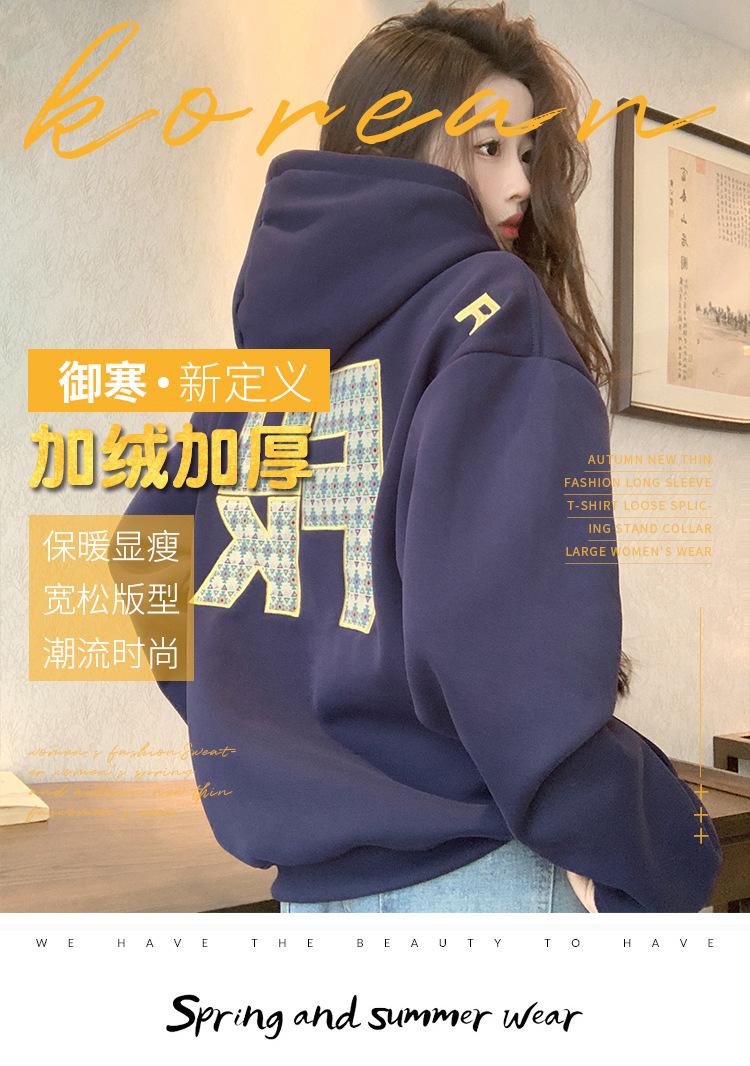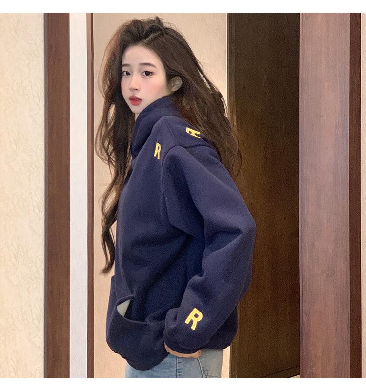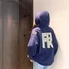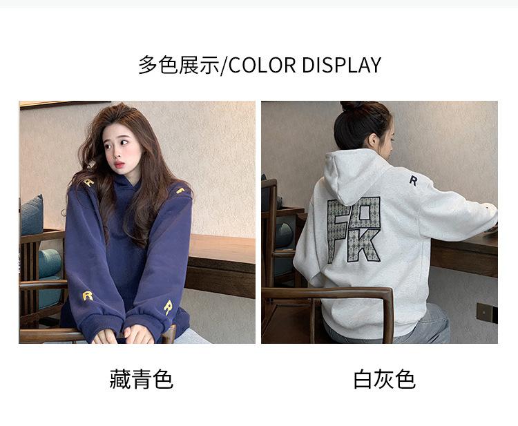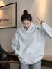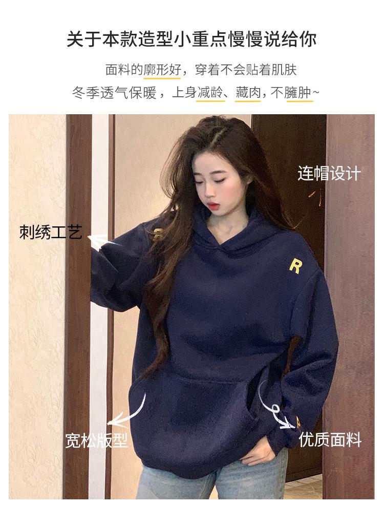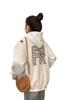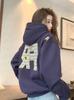Suéter con capucha y letras bordadas estilo americano retro para mujer, chaqueta deportiva holgada informal de manga larga para invierno