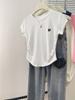 Cuello Redondo, Hombro Derecho, Camiseta Blanca de Manga Corta para Mujer, Nuevo Estilo Verano 2025, Ajuste Slim, Cintura Plisada, Top de Alta Gama para Personas Pequeñas