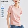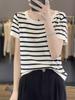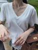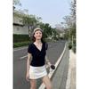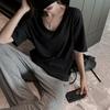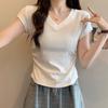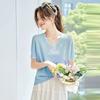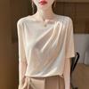 Venta al por mayor mercerizada 2025 primavera y verano nuevas mujeres cuello cuadrado corto suelto media manga irregular cuello inclinado hombro media manga top