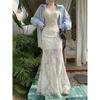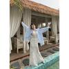 Blue shirt [huaduo selection], White skirt [huaduo selection], Beautiful lace back inside [selected flowers], ...