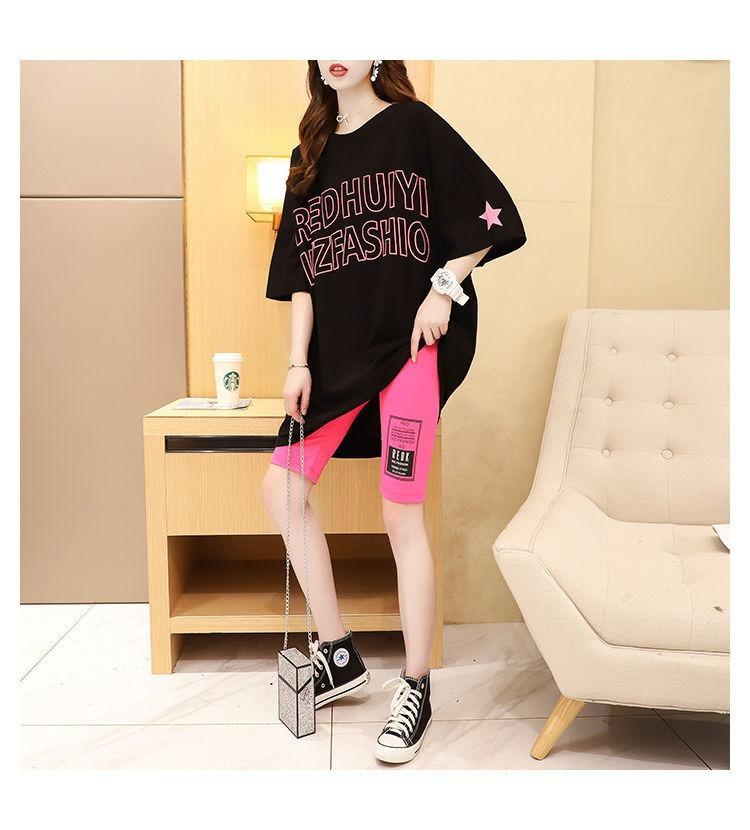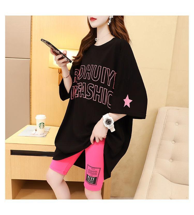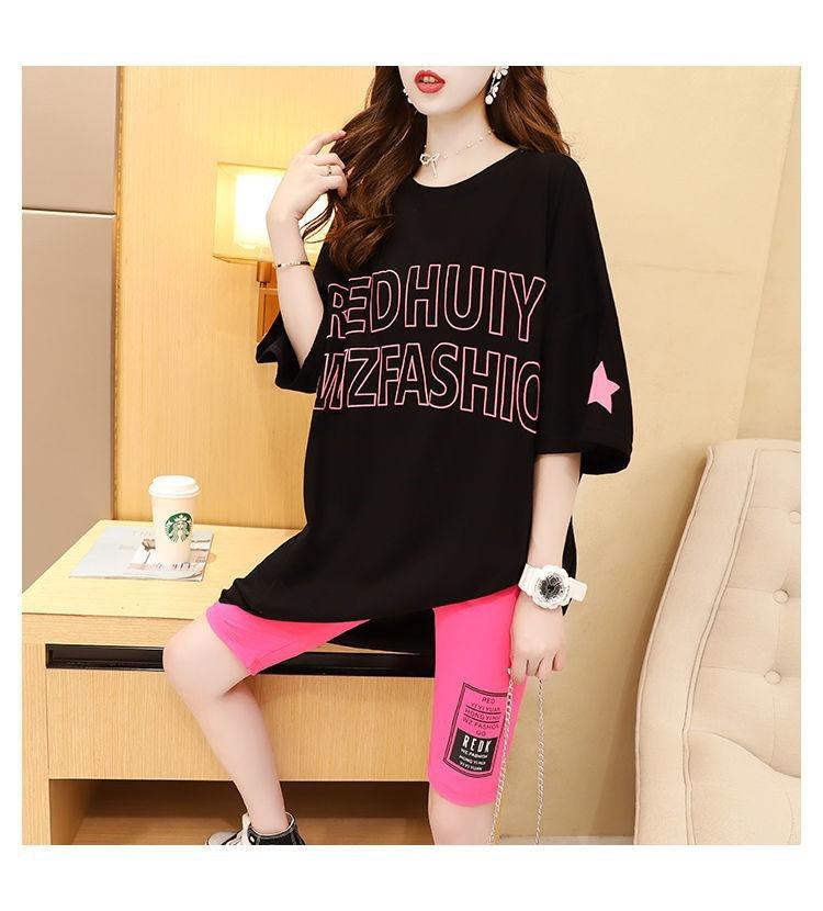 Traje deportivo holgado de talla grande para chica gordita transfronterizo, camiseta de moda elegante para verano para mujer, pantalones cortos de manga corta, conjunto de dos piezas