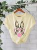 Camiseta de moda transfronteriza europea y americana para mujer, con gafas y estampado de conejo, de algodón de manga corta de verano, disponible para mujer.