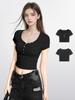 Camiseta Negra de Hombro Descubierto de Manga Corta para Mujer Verano Ajustada Ínter Base Camiseta de Cintura Alta Ombliguera Top Corto para Chicas Hot