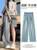 Pantalones vaqueros azules de Tencel para mujer, cintura alta, corte recto, estilo retro, holgados, de pierna ancha, 2025