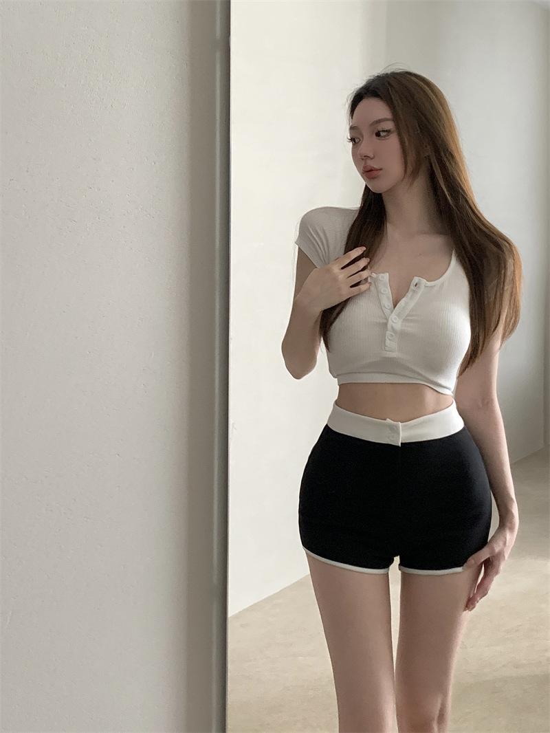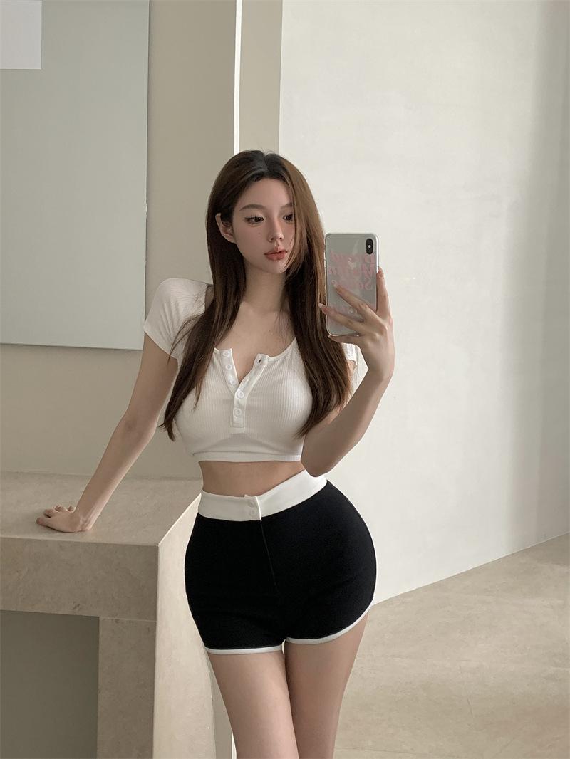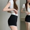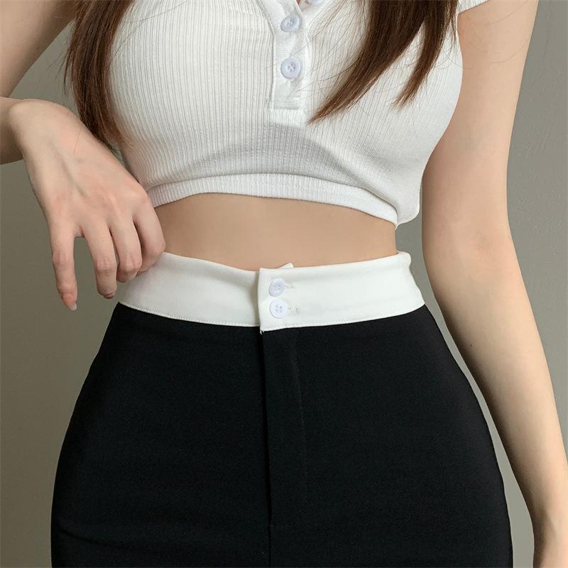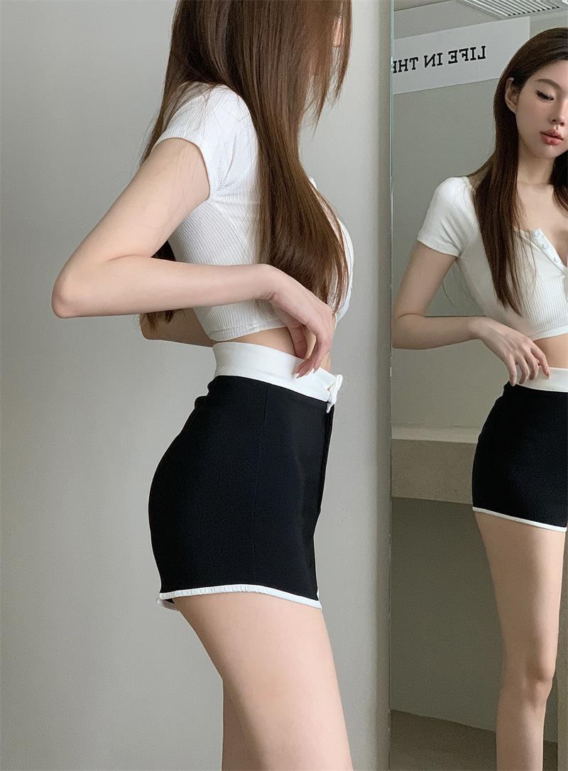 Pantalones cortos casuales con costuras contrastantes para mujer, verano 2024, nuevos pantalones cortos, cintura alta y rectos.