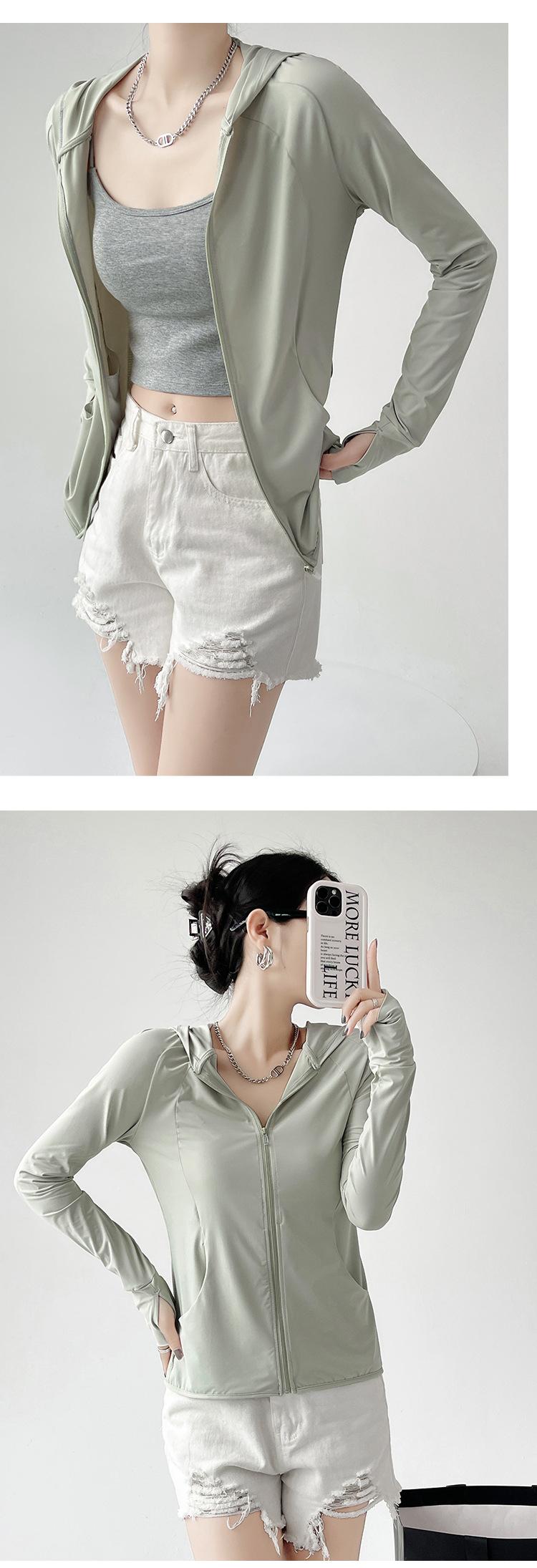 Ropa de Protección Solar con Capucha de Seda de Hielo para Mujer Verano Protección UV 2025 Nuevo Cárdigan Delgado Ropa de Protección Solar Chaqueta Corta Top