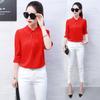 Camisa de mujer de estación europea, primavera y otoño, nueva, estilo coreano, holgada, sencilla, adelgazante, de color sólido, combinable con todo, de tela, camisa de manga larga