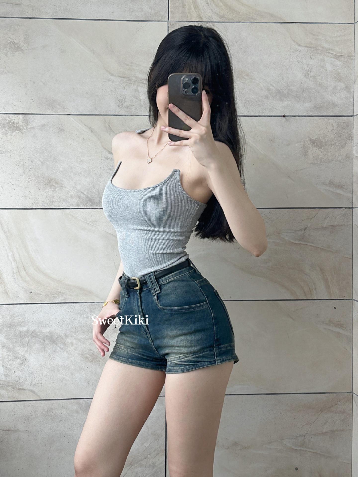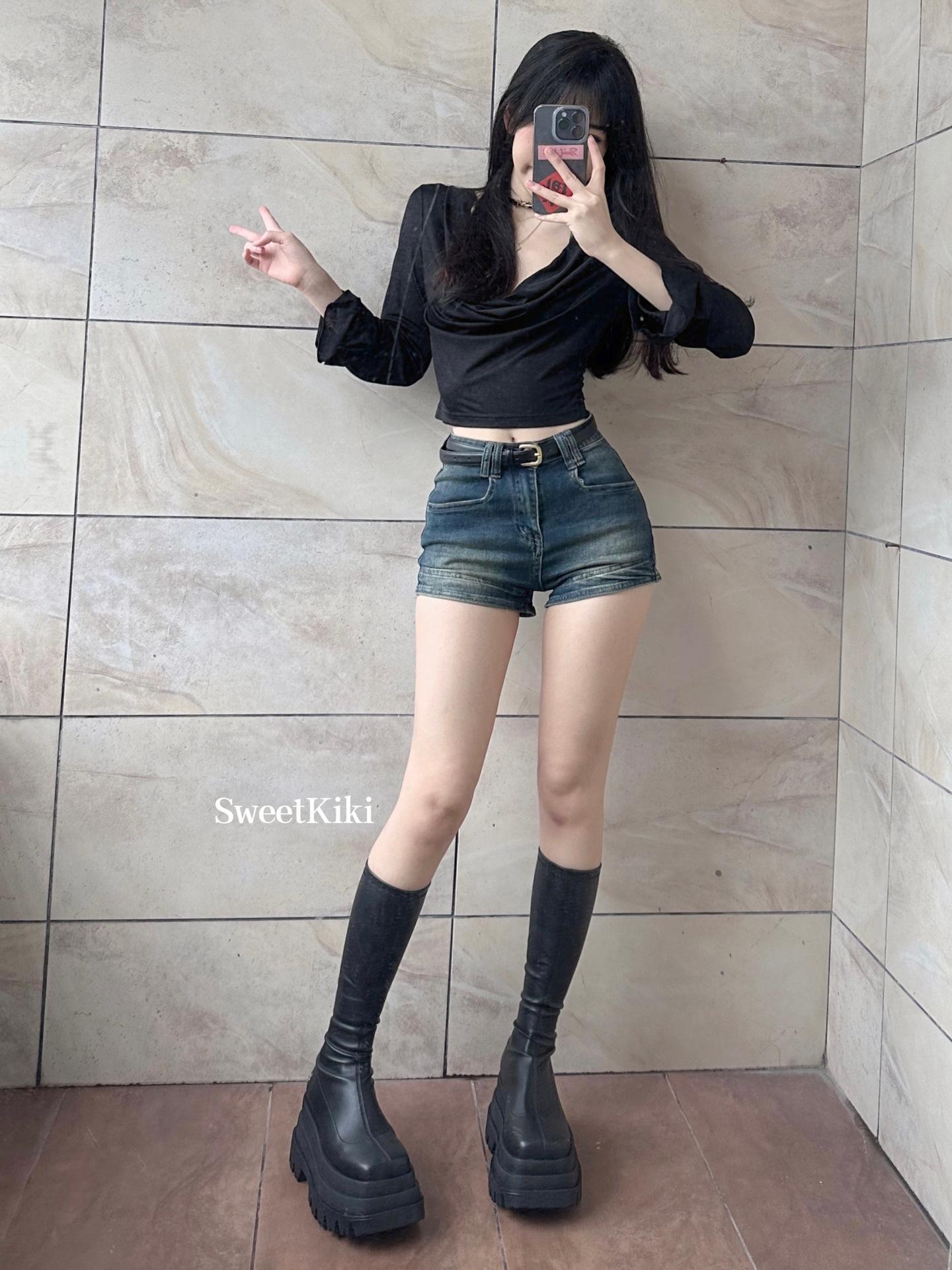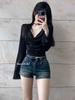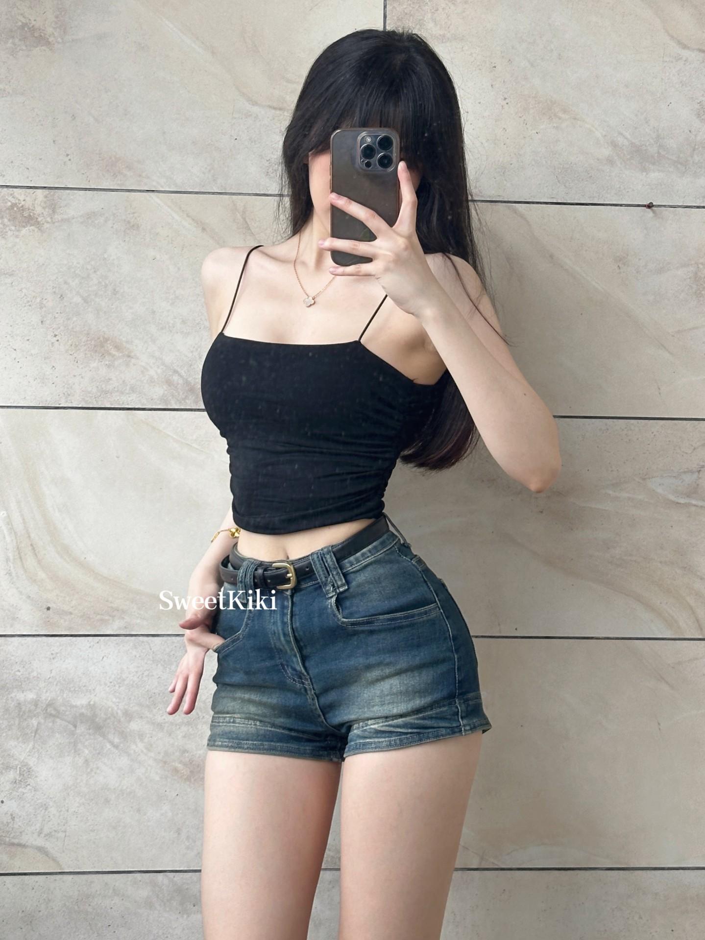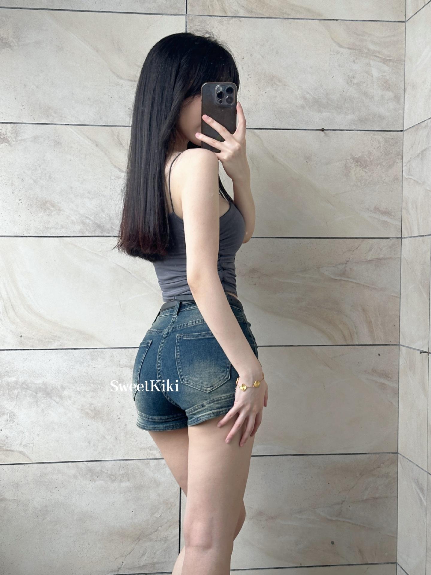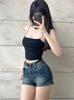Pantalones cortos vaqueros retro americanos para mujer, de verano, con diseño de chica sexy, cintura alta, ajustados, adelgazantes, estilo A-shorts.