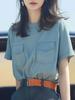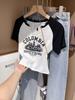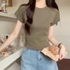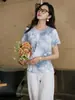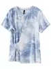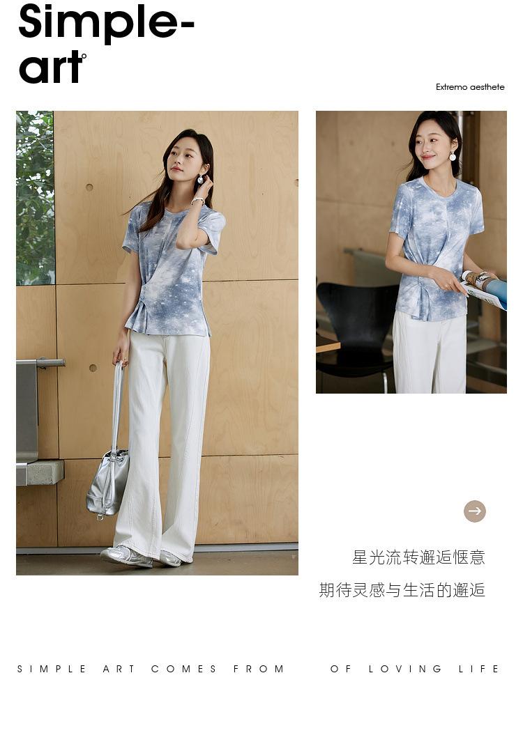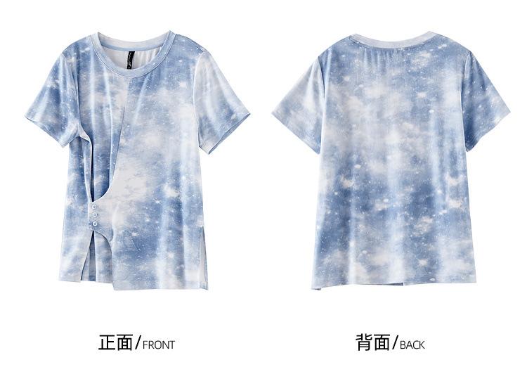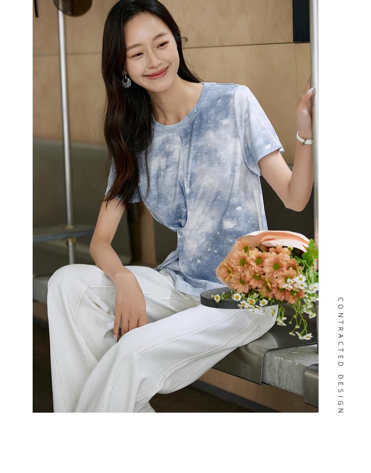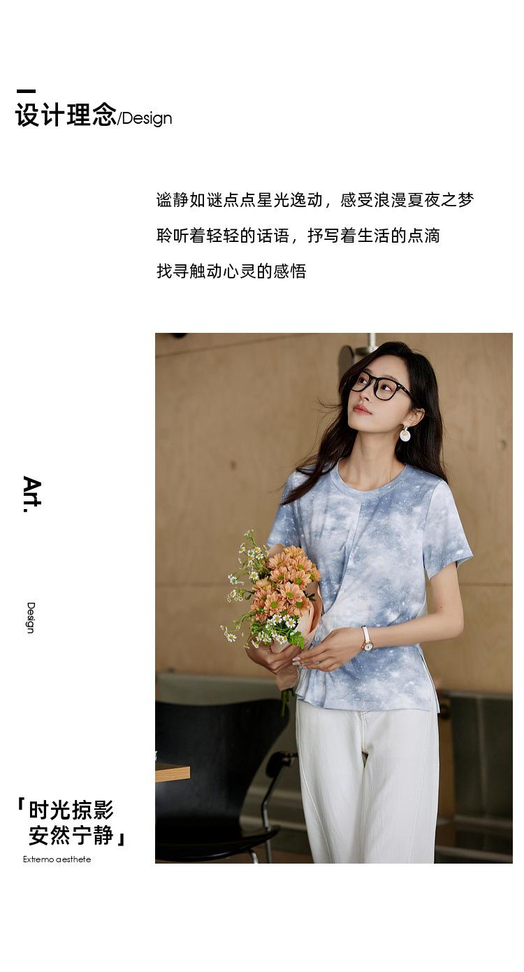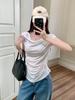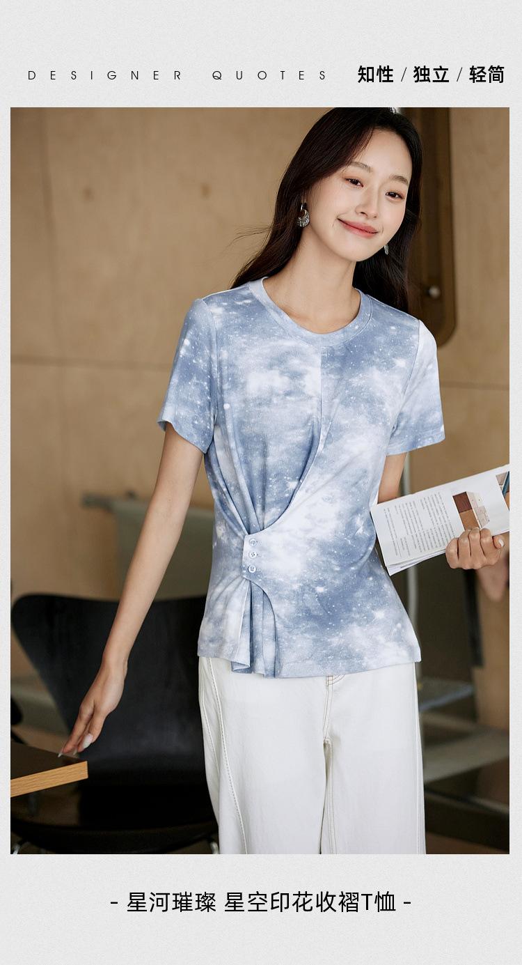 Camiseta de Zhen Xi con diseño plisado y cintura ajustada para mujer, de manga corta, con estampado retro de estrellas, SQ709