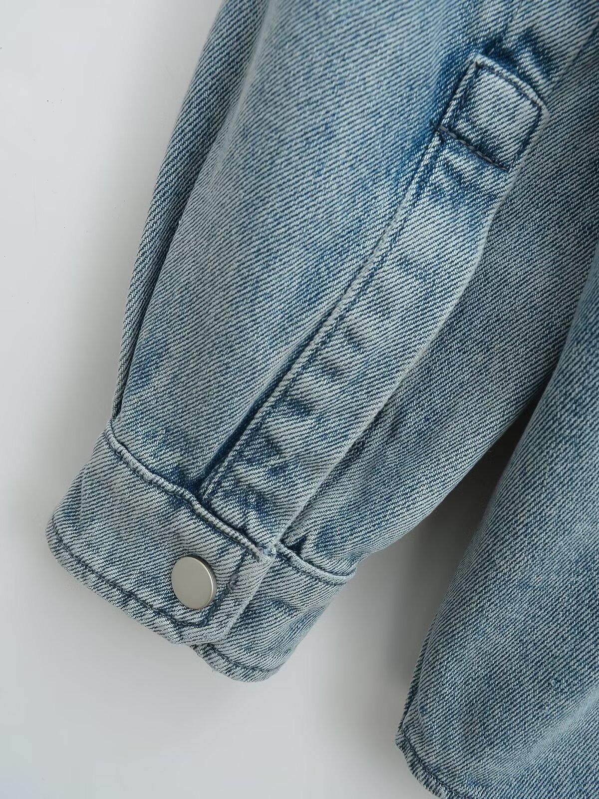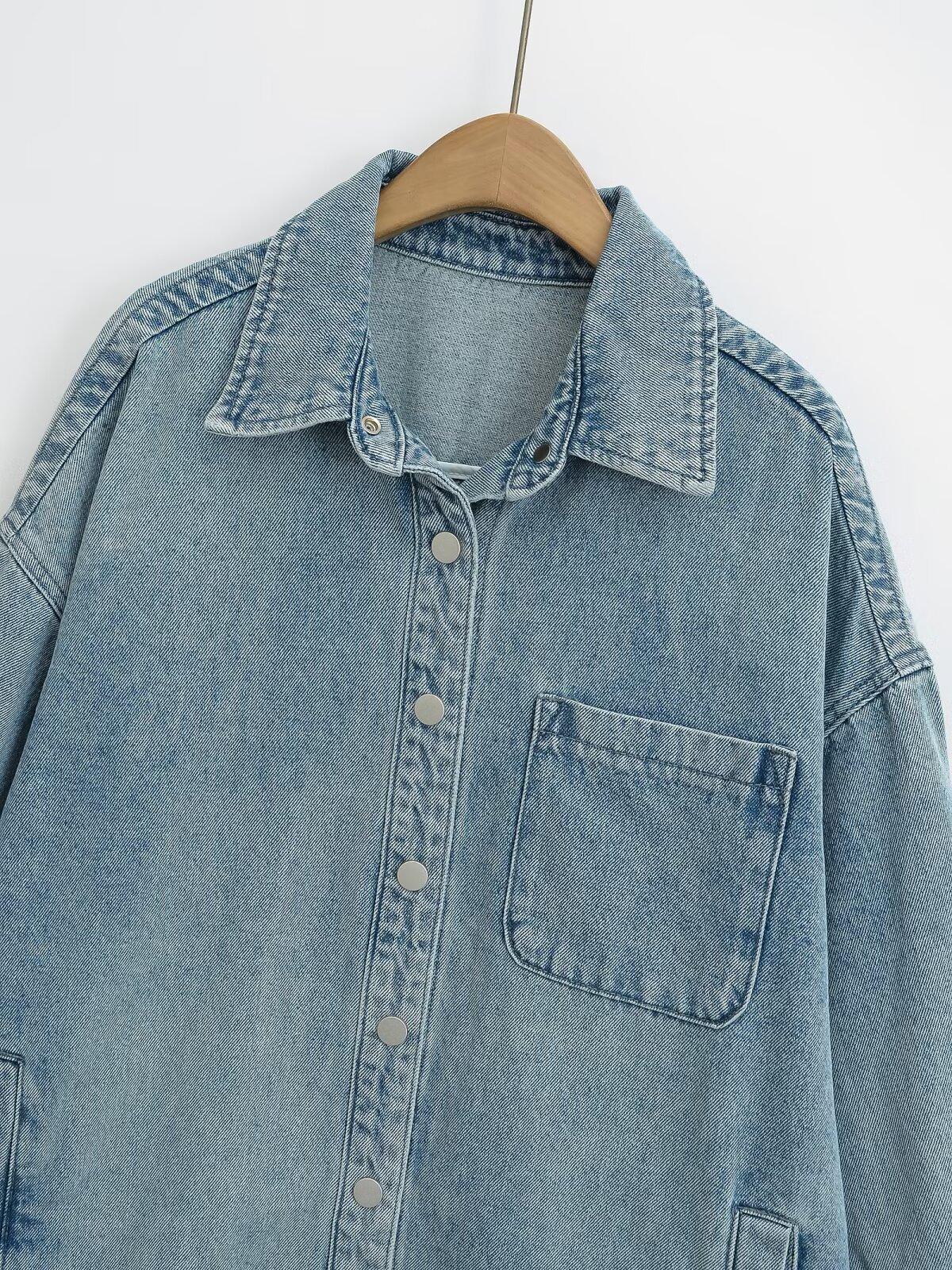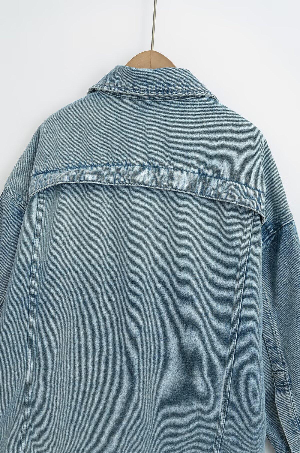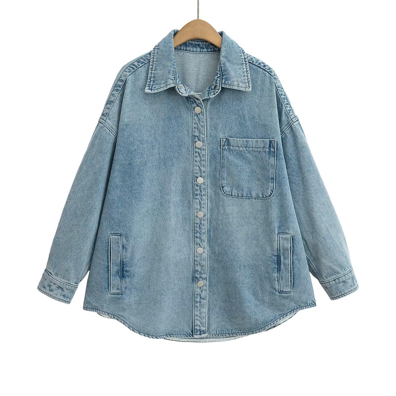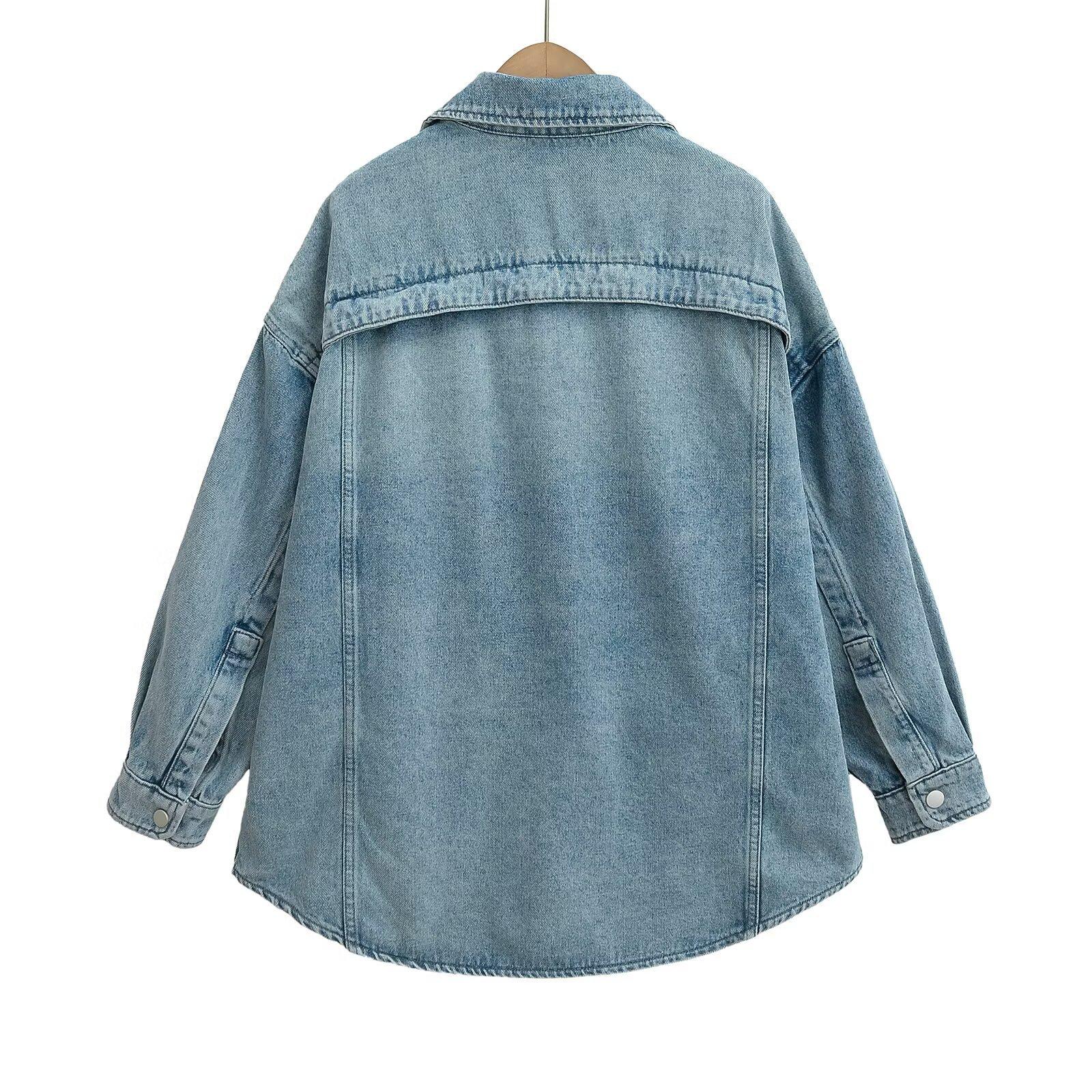 1046-25 Primavera Nuevo Estilo Europeo y Americano Diseño de Espalda Bolsillo de Pecho Suelta Casual Chaqueta Camisa de Mezclilla