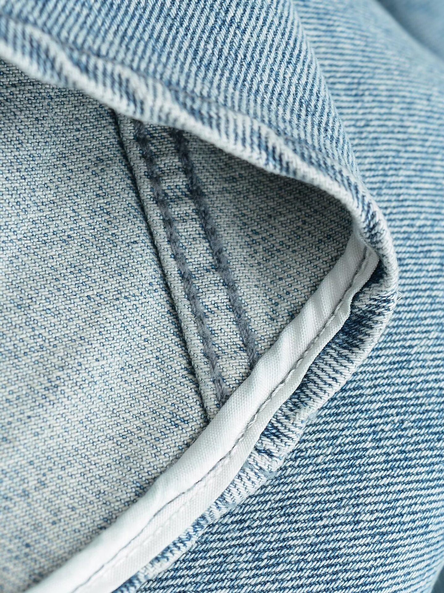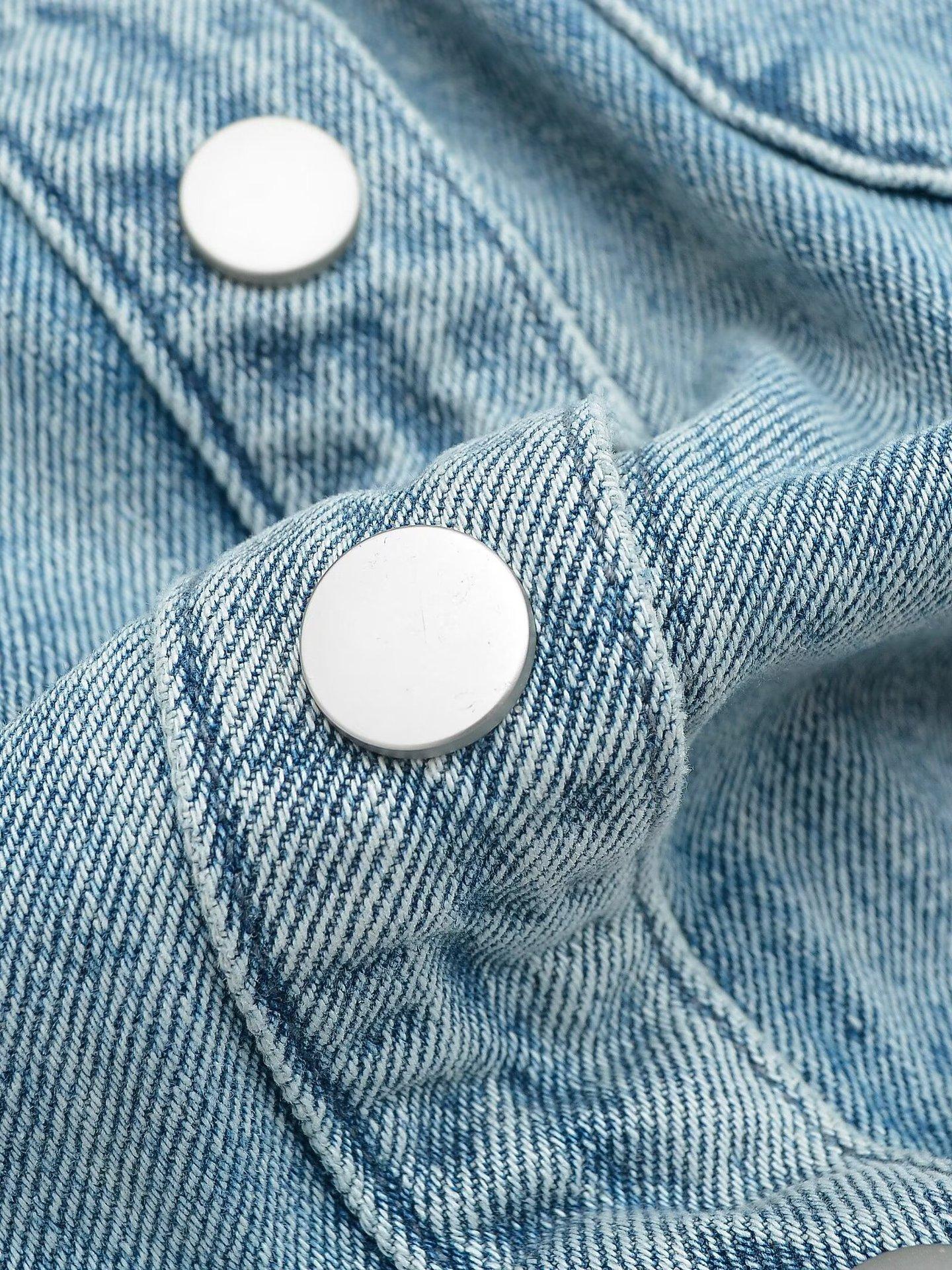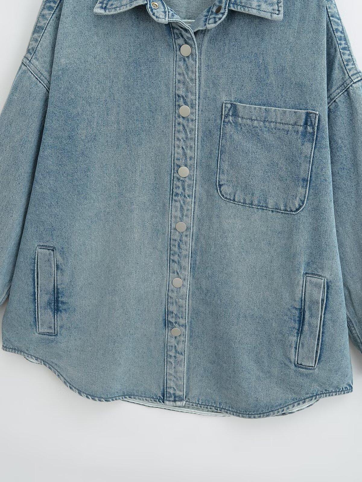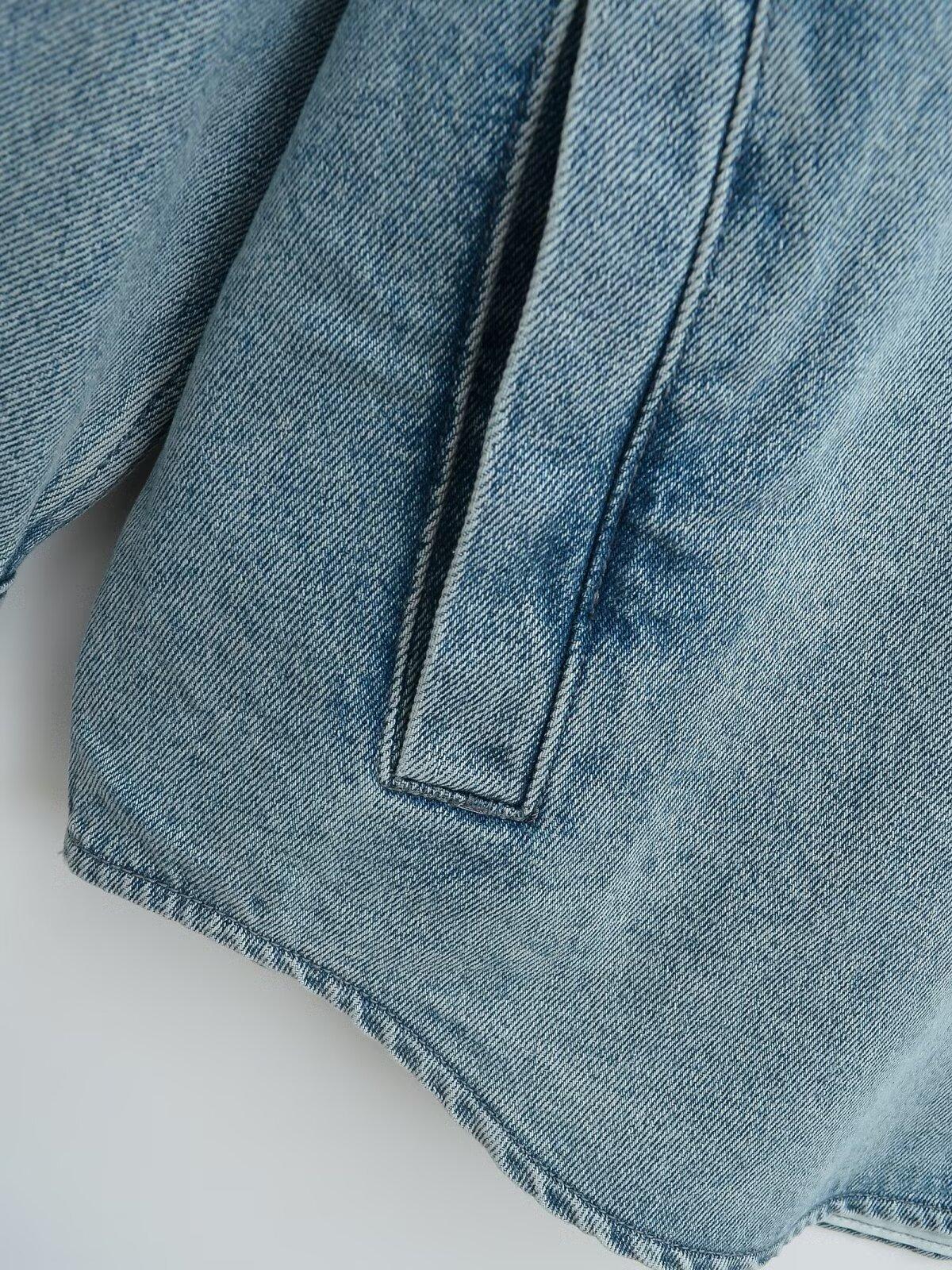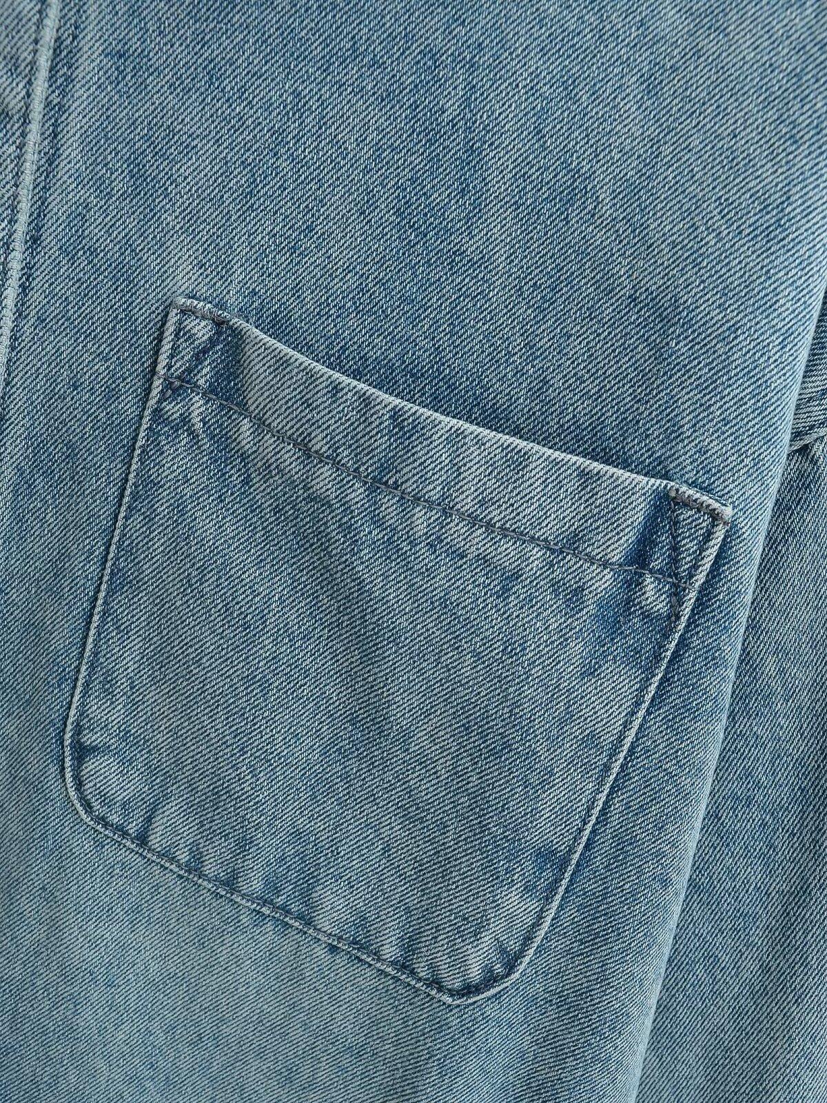 1046-25 Primavera Nuevo Estilo Europeo y Americano Diseño de Espalda Bolsillo de Pecho Suelta Casual Chaqueta Camisa de Mezclilla