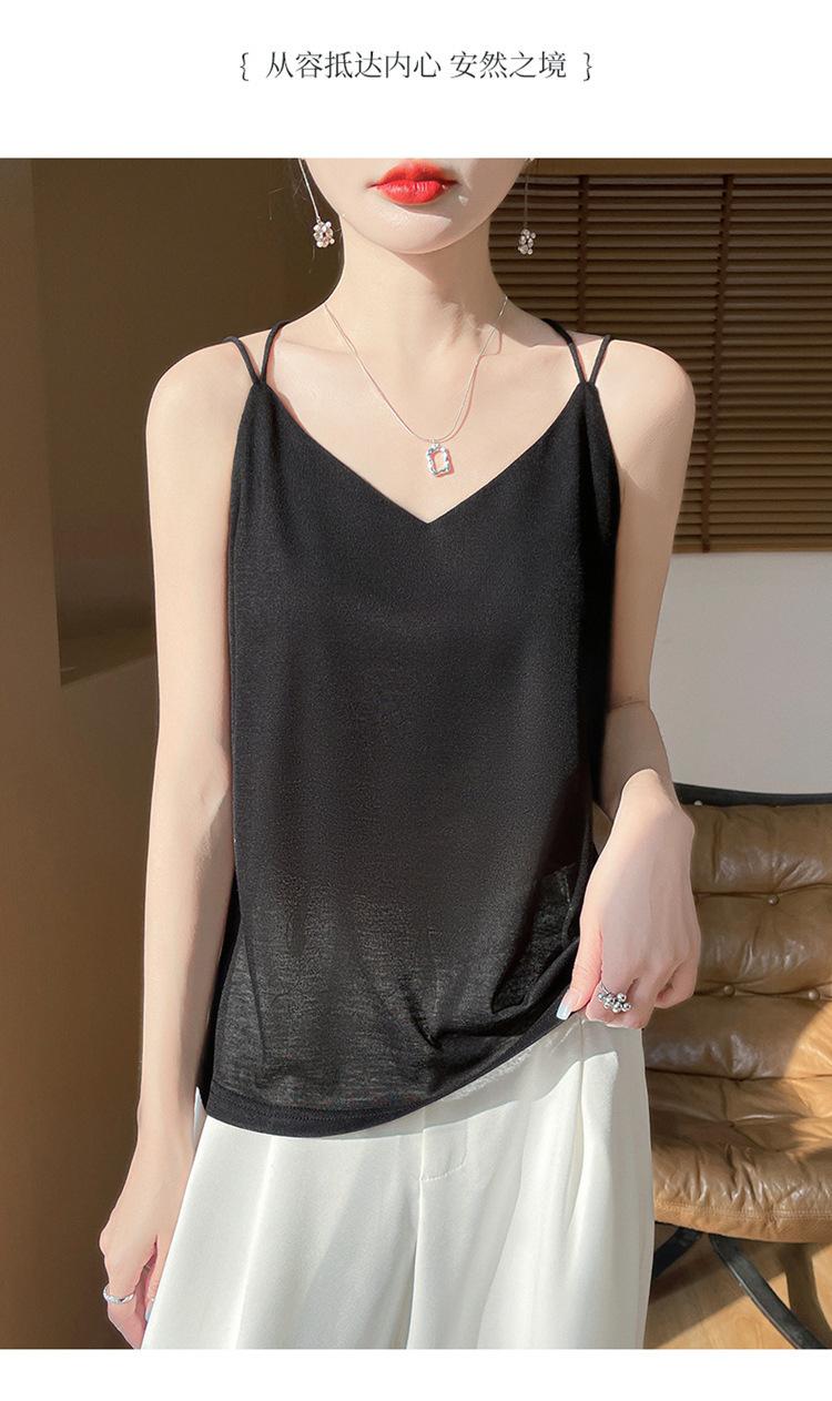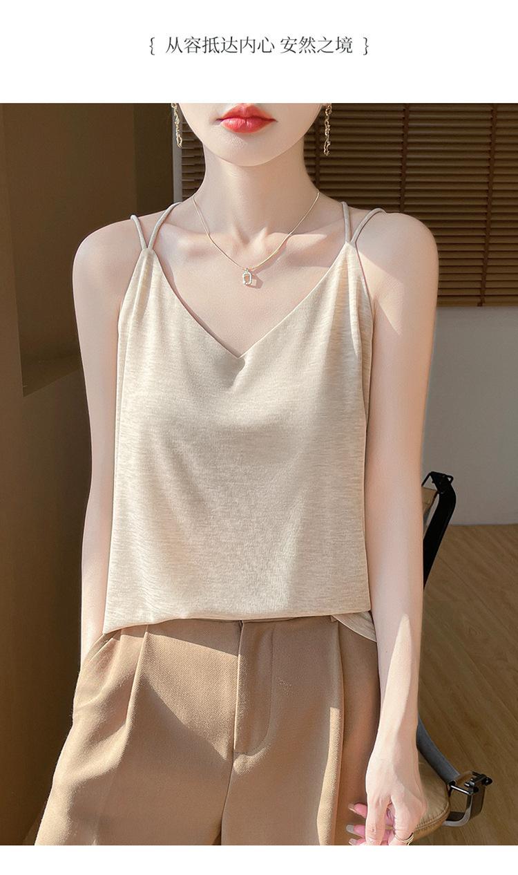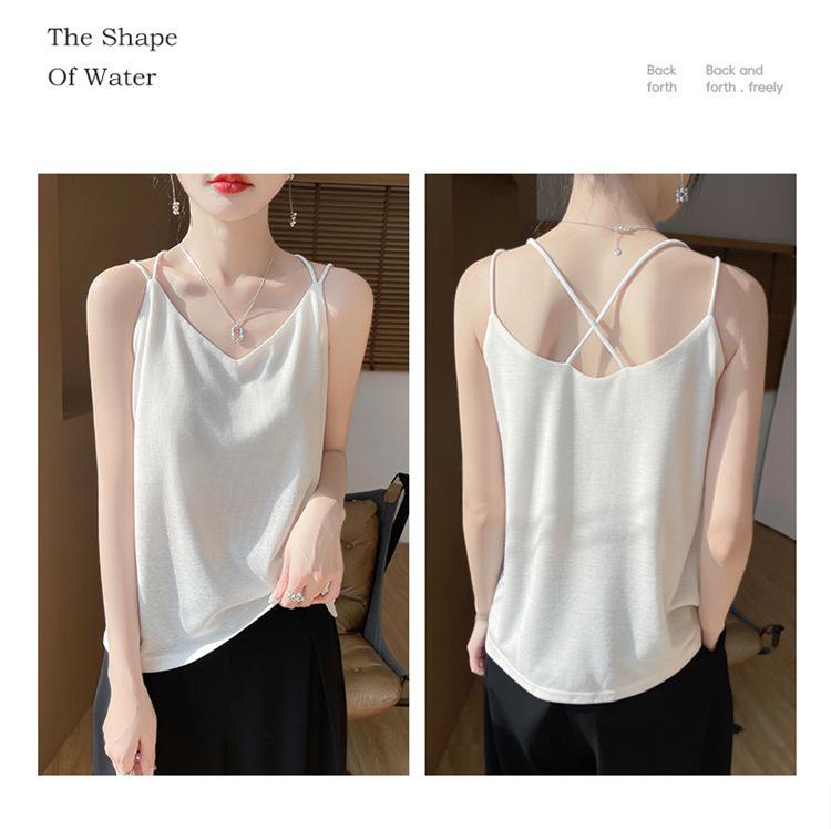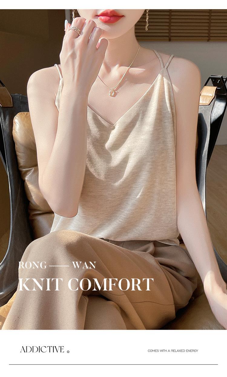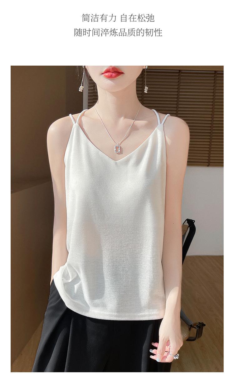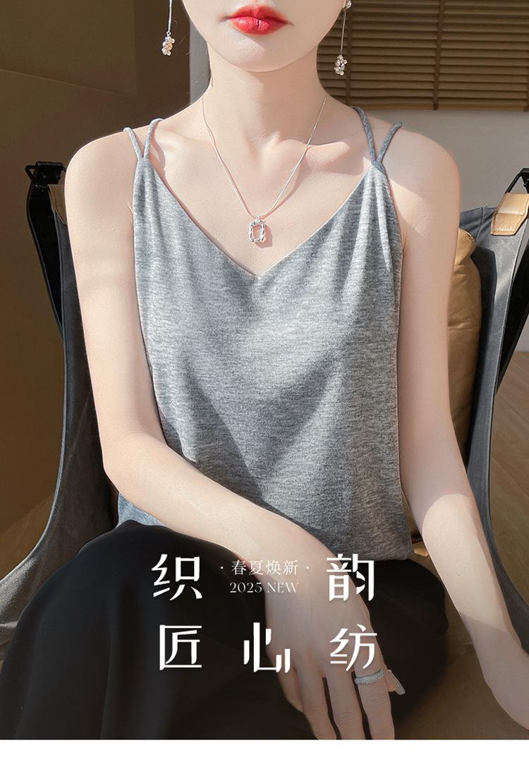 Camisola de primavera y verano 2025 para mujer, nueva, ajustada, con escote en V, diseño de nicho corto, con base interior y espalda hermosa