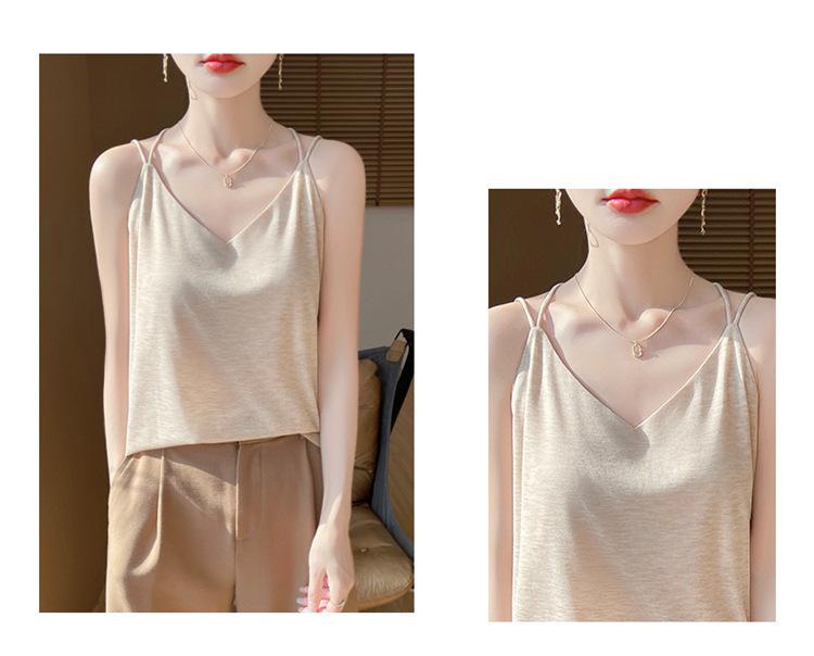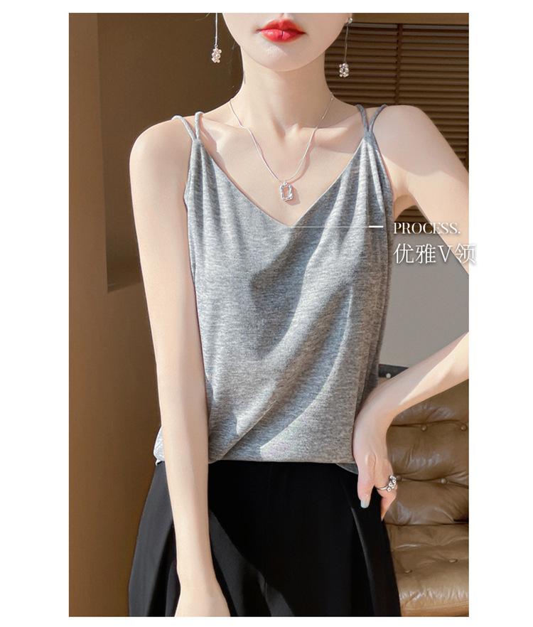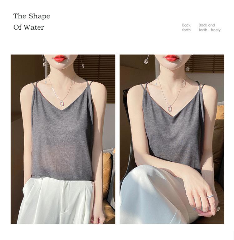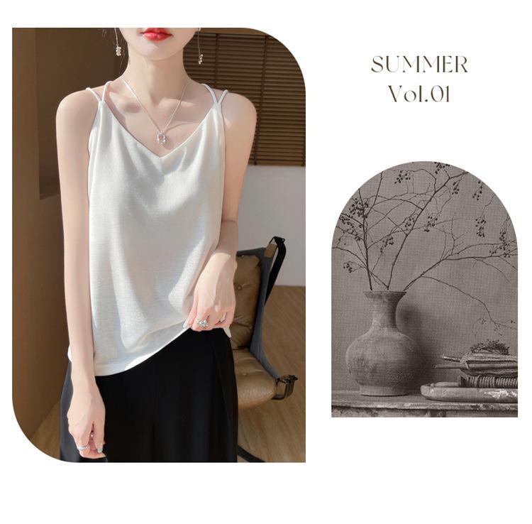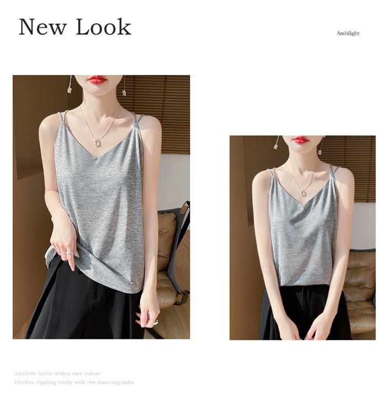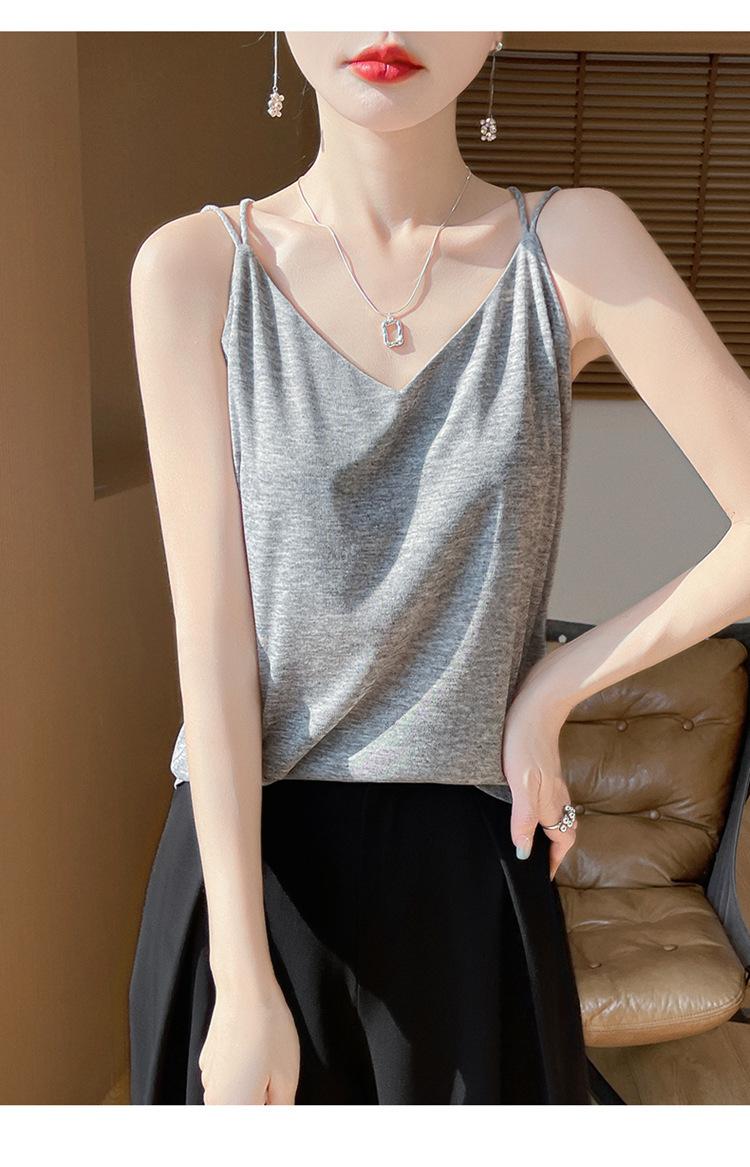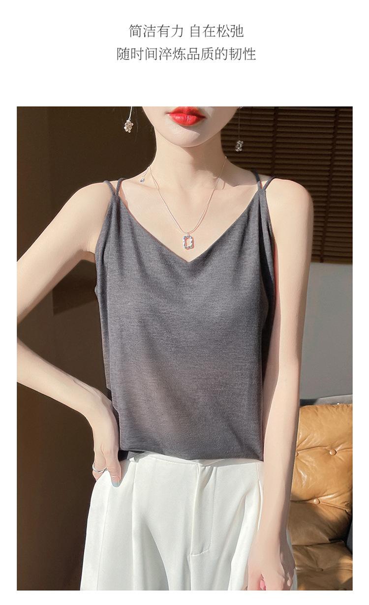 Camisola de primavera y verano 2025 para mujer, nueva, ajustada, con escote en V, diseño de nicho corto, con base interior y espalda hermosa