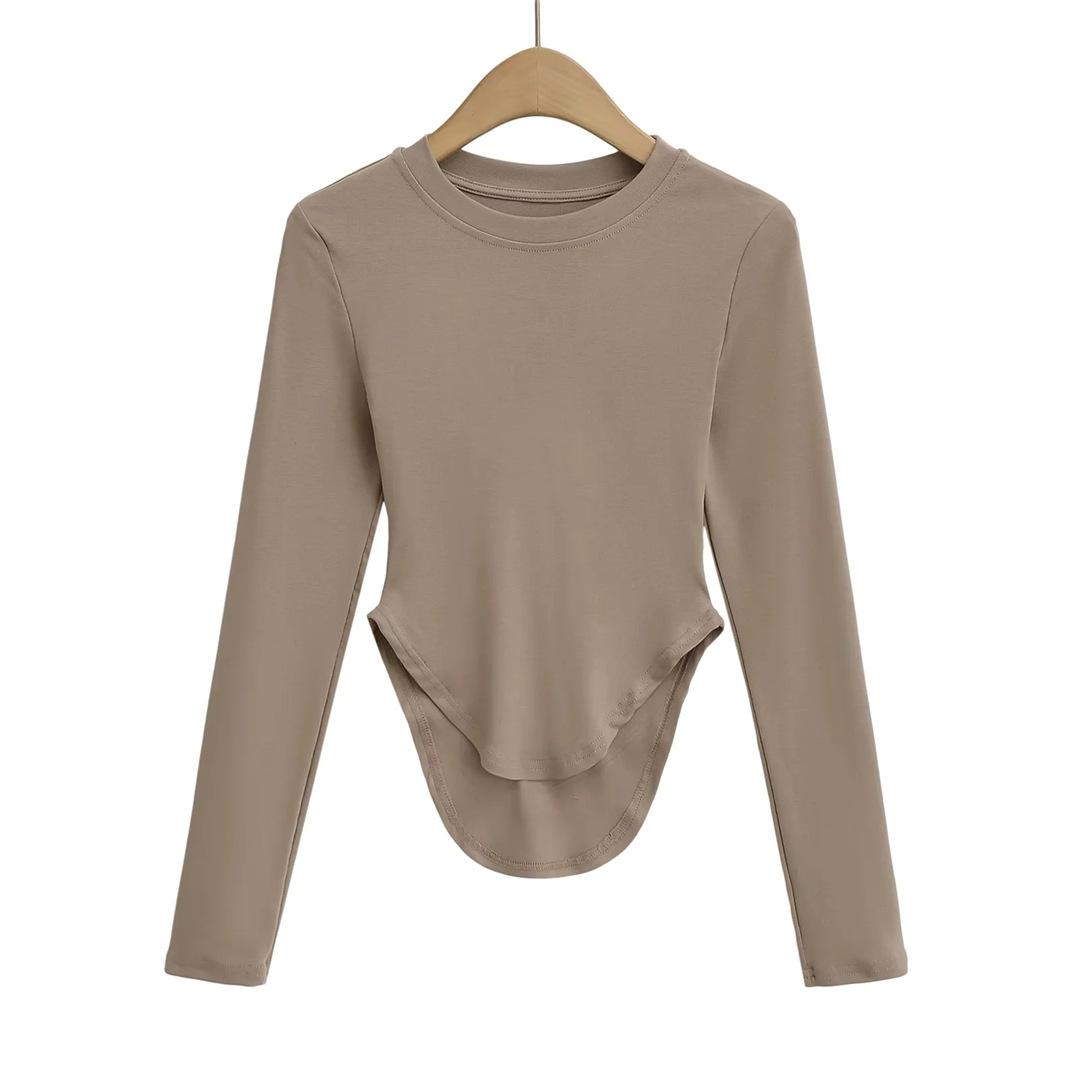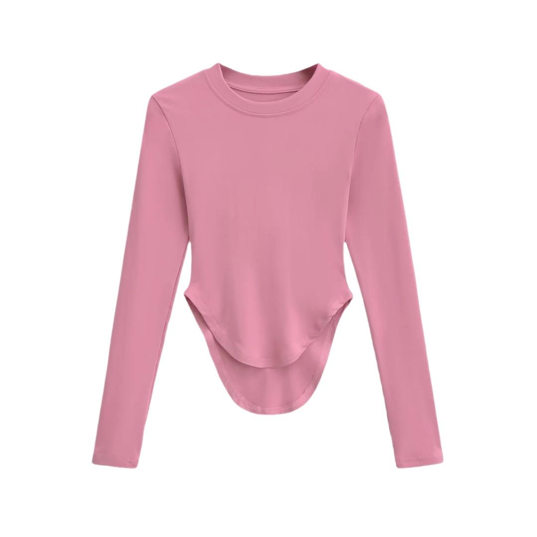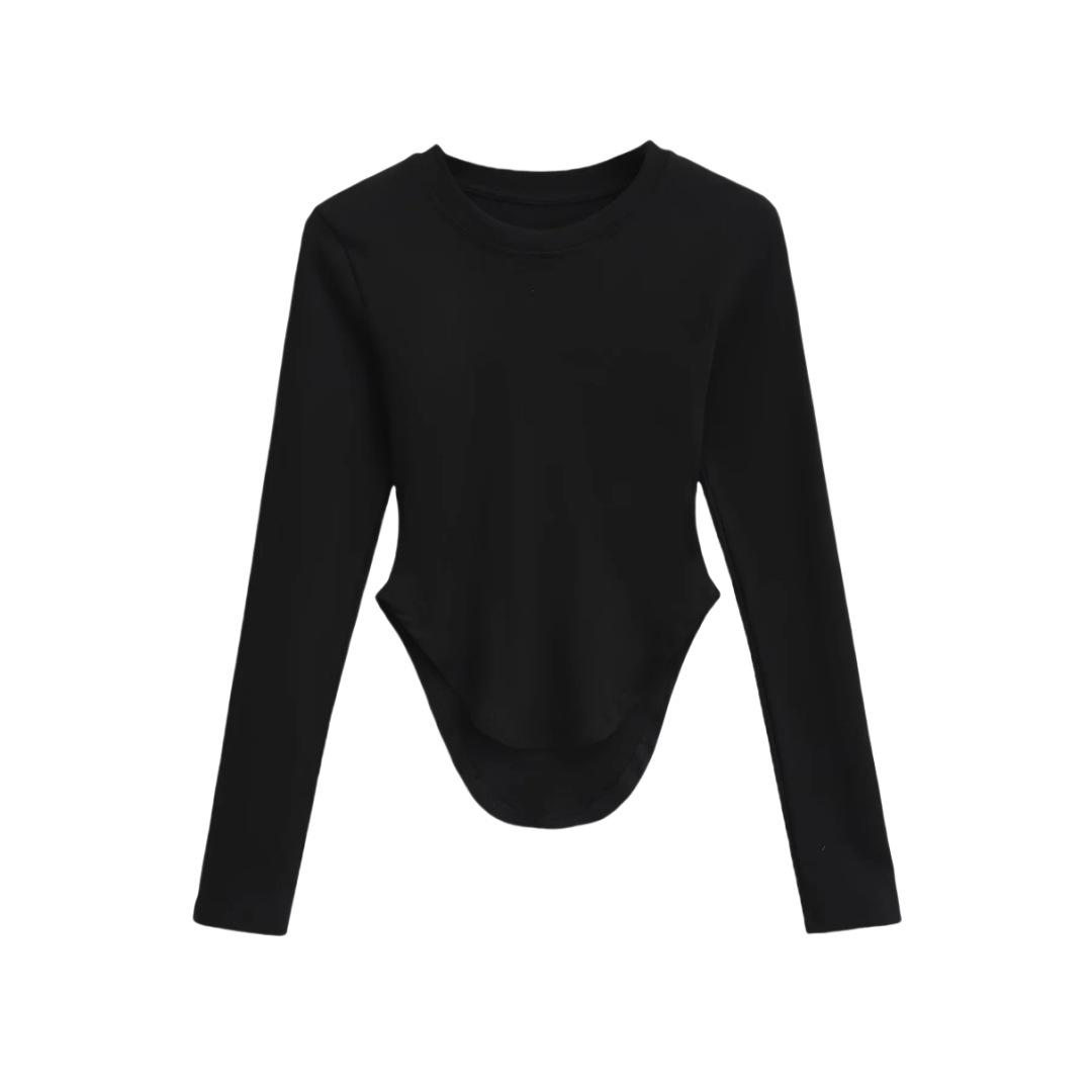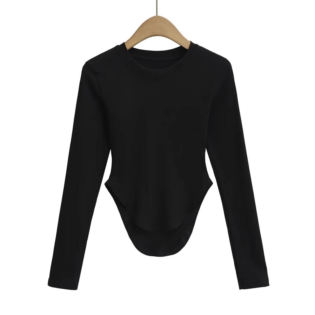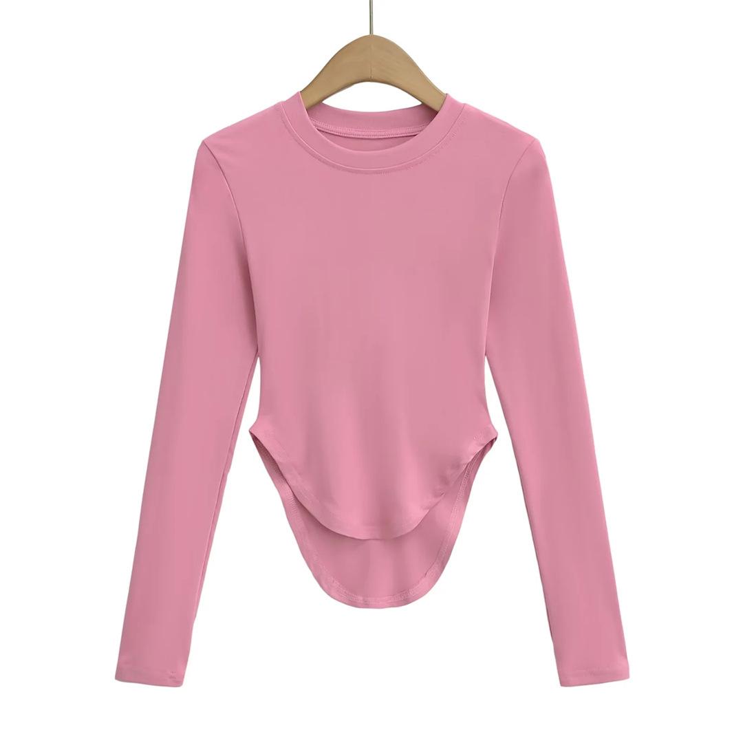 Camiseta de manga larga con cuello redondo y estampado de Spice Girl, estilo americano, para mujer, con dobladillo curvo y cintura ajustada.