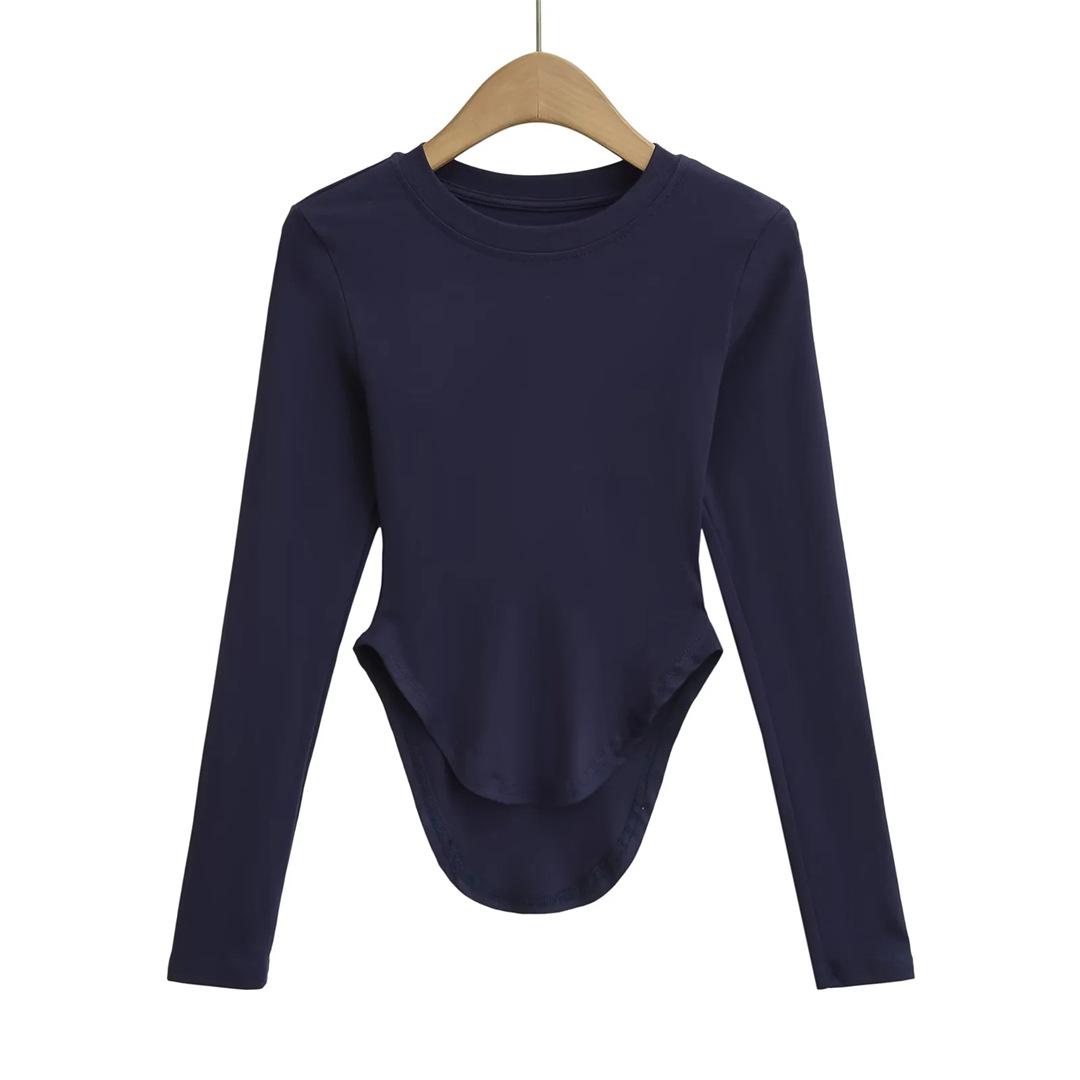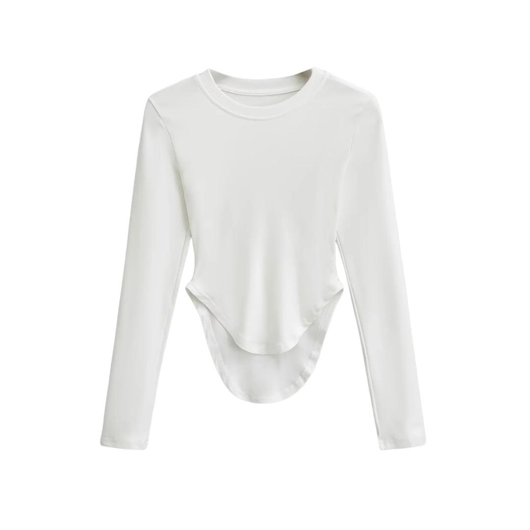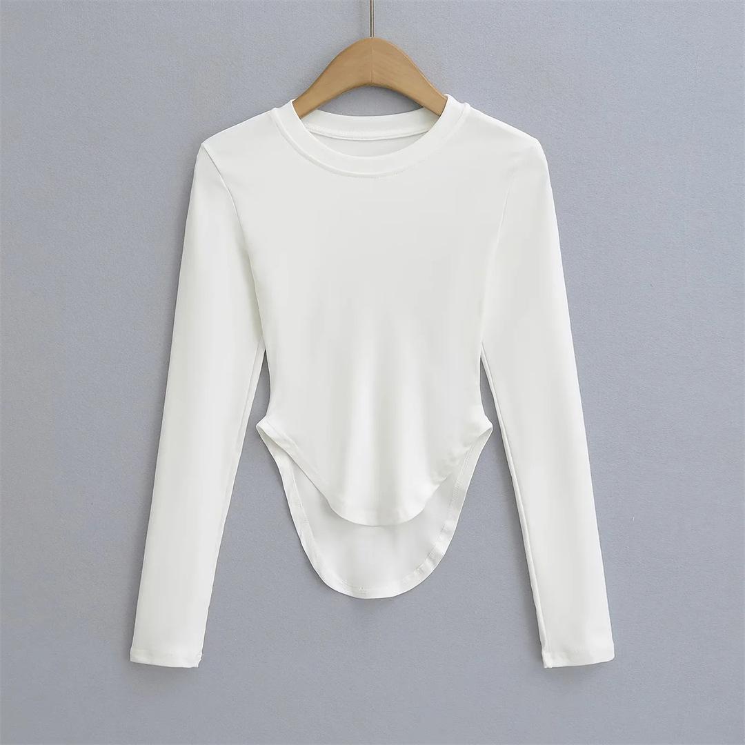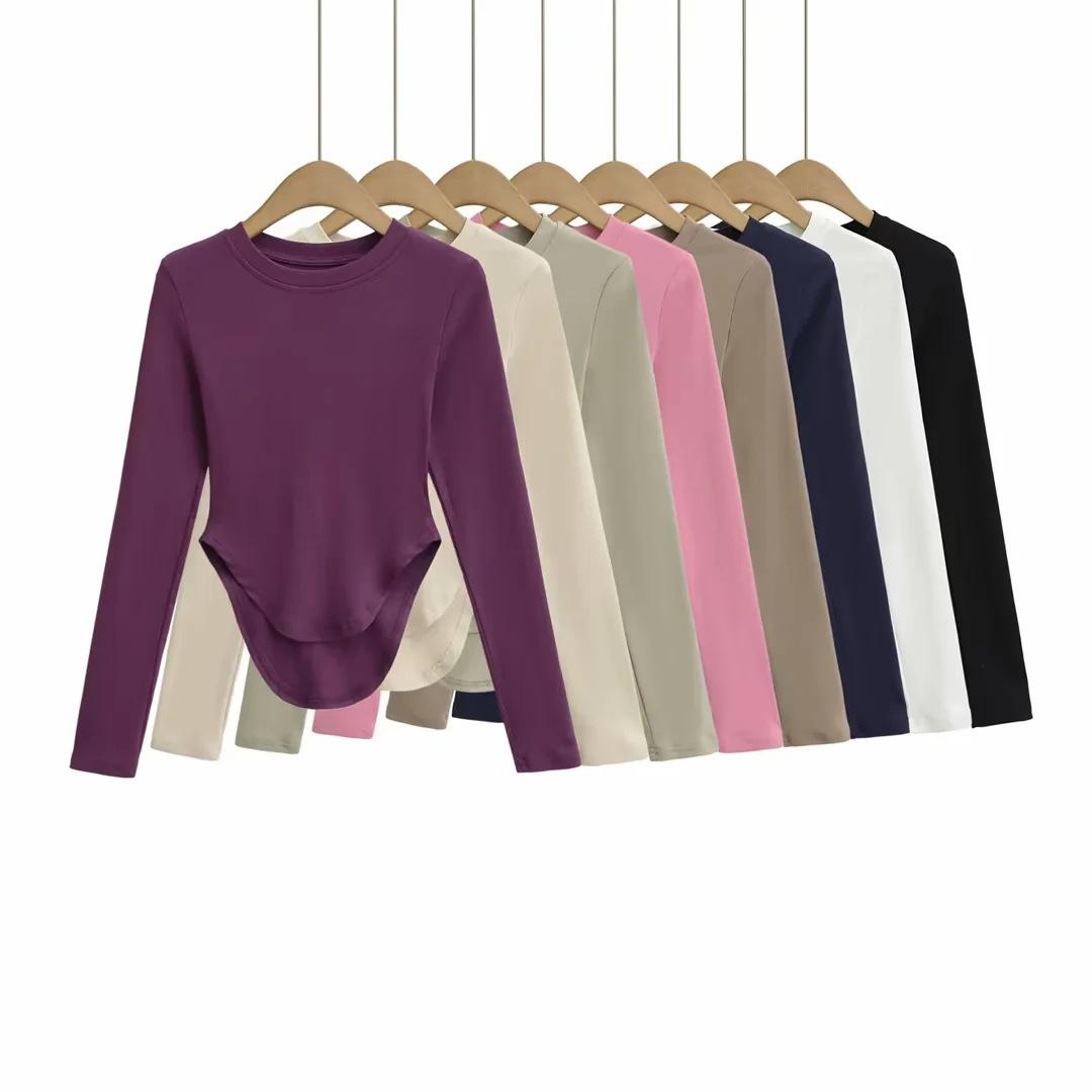 Camiseta de manga larga con cuello redondo y estampado de Spice Girl, estilo americano, para mujer, con dobladillo curvo y cintura ajustada.