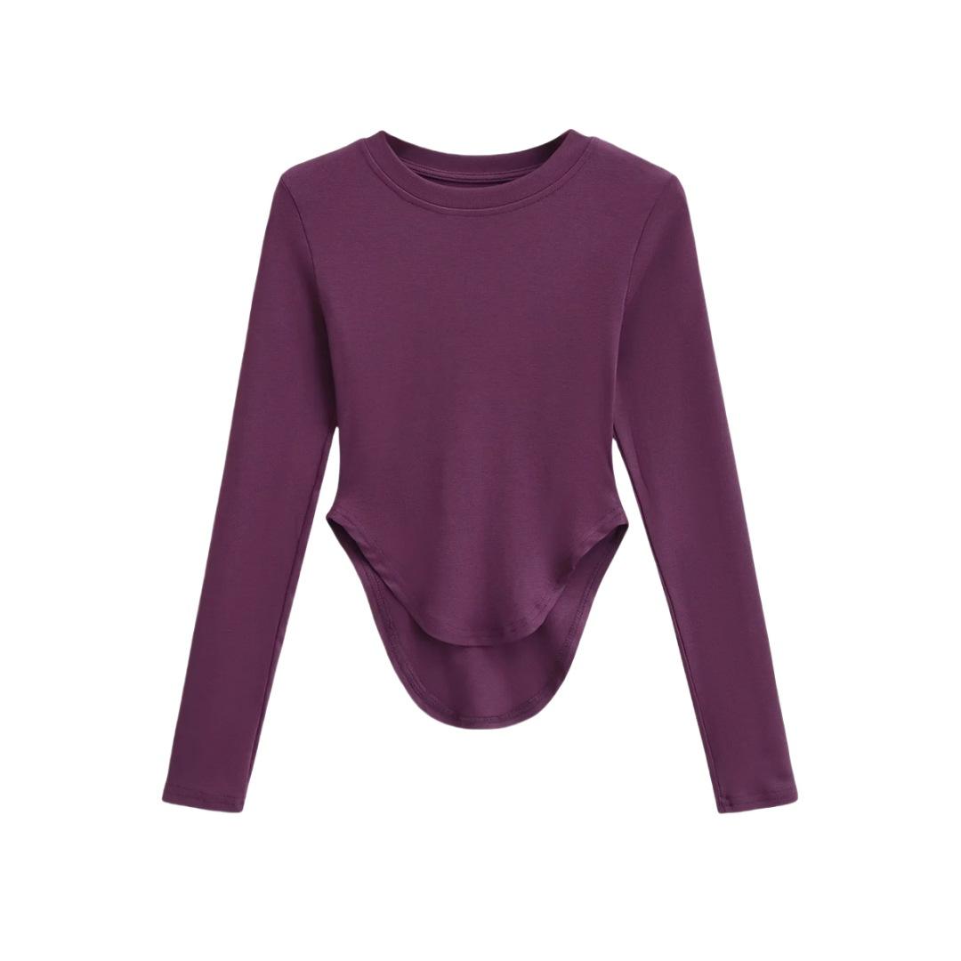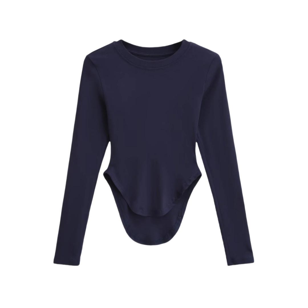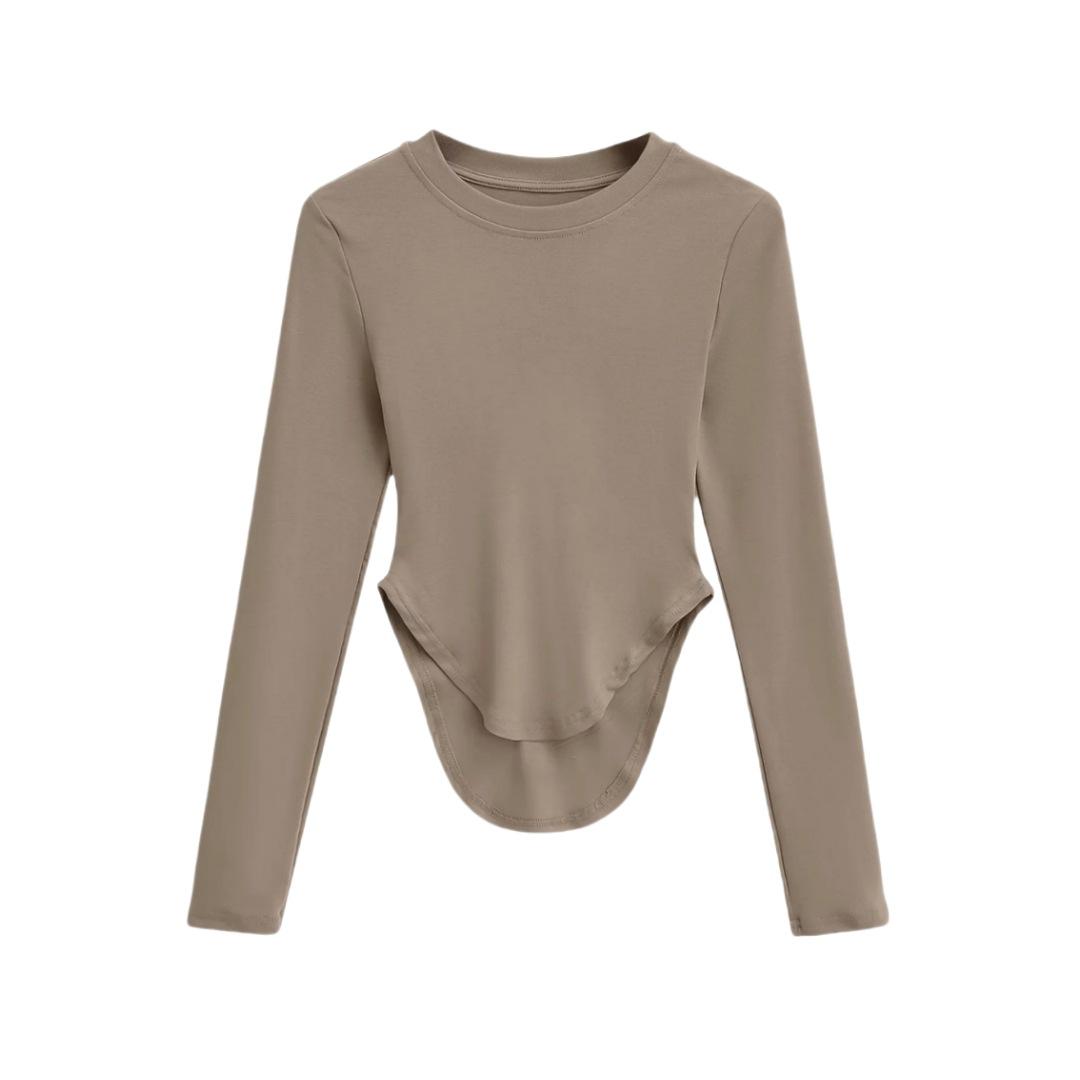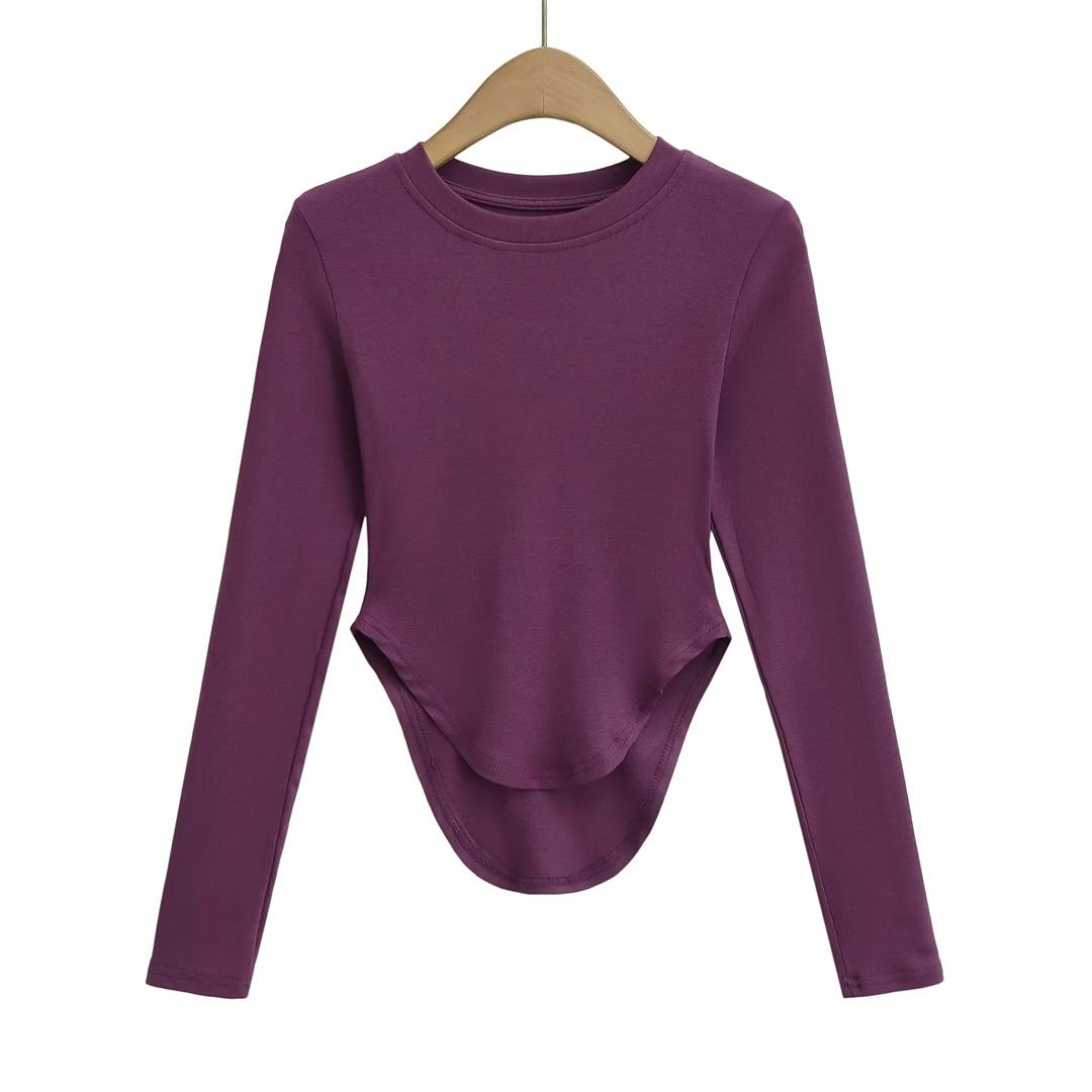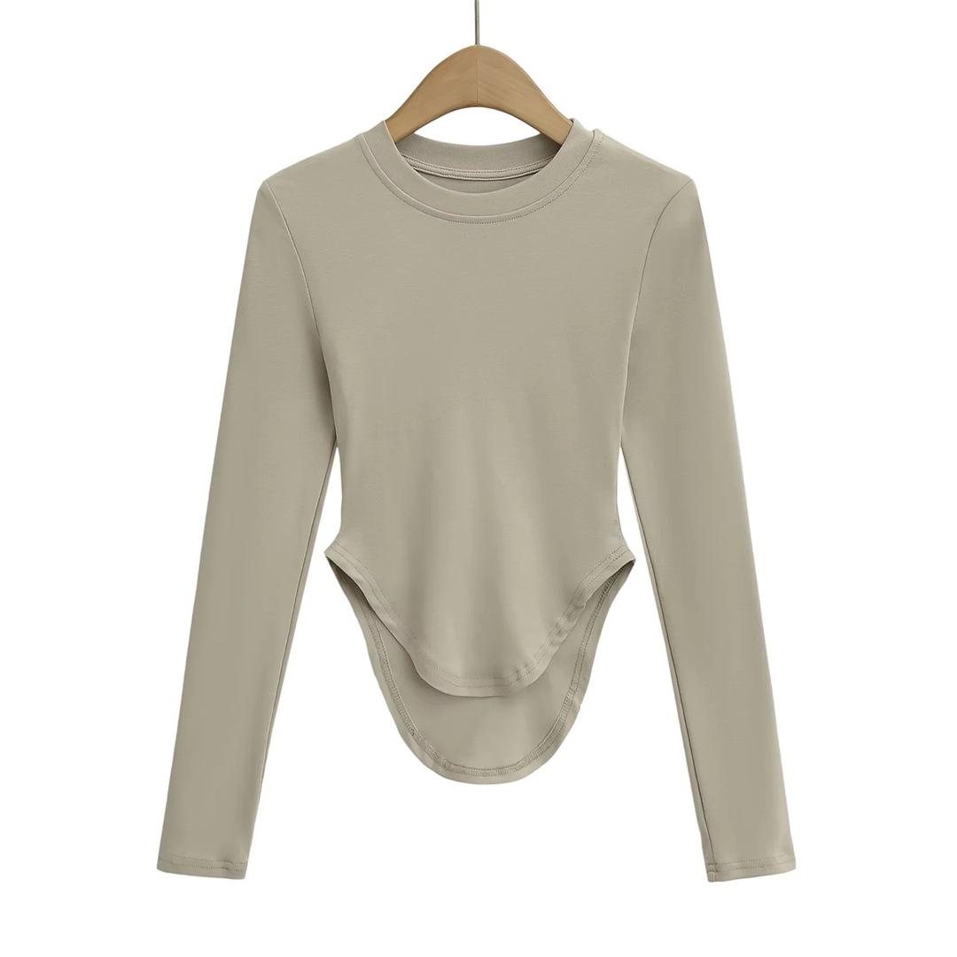 Camiseta de manga larga con cuello redondo y estampado de Spice Girl, estilo americano, para mujer, con dobladillo curvo y cintura ajustada.