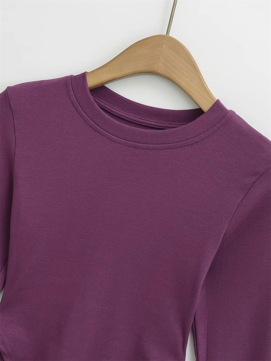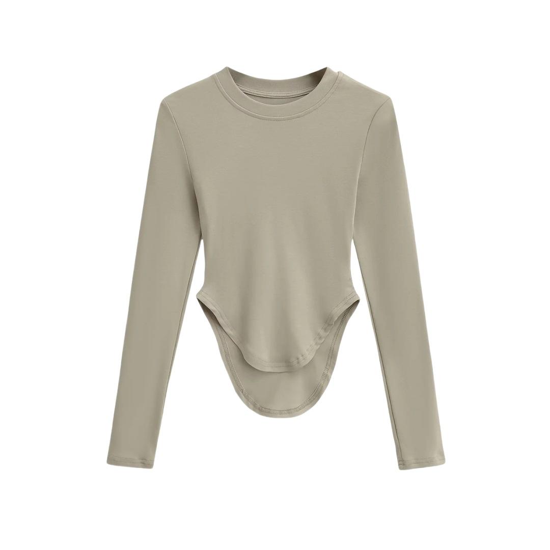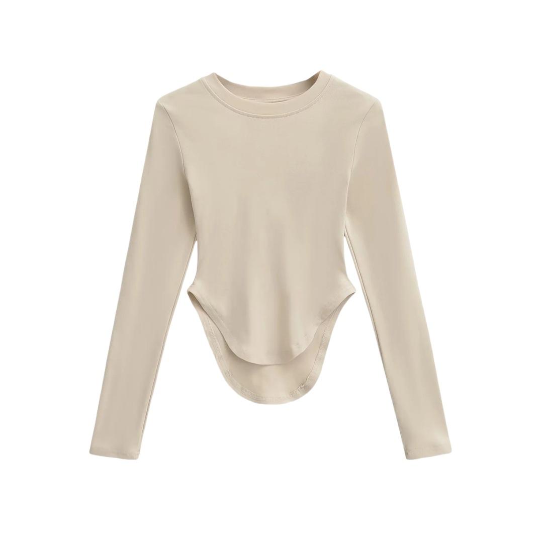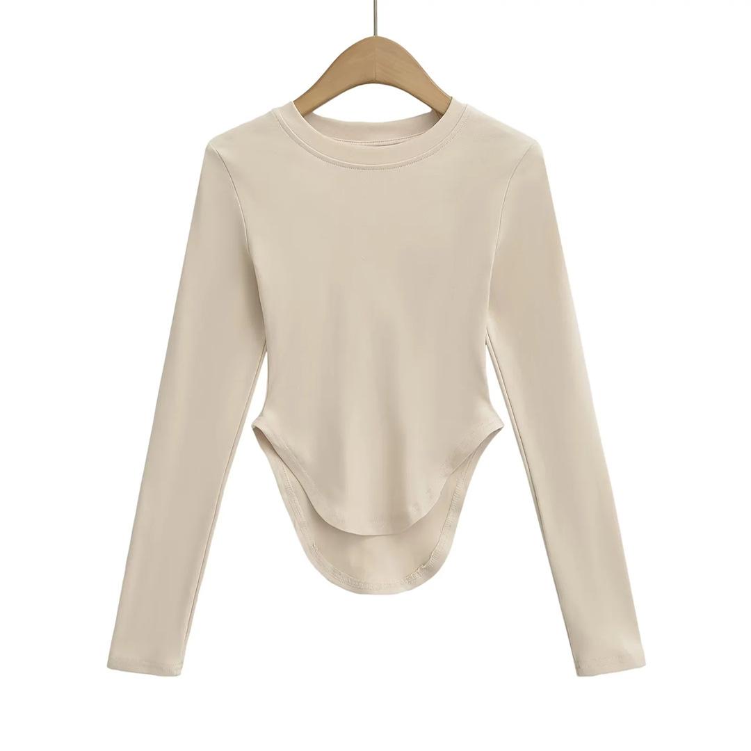 Camiseta de manga larga con cuello redondo y estampado de Spice Girl, estilo americano, para mujer, con dobladillo curvo y cintura ajustada.