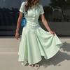 Europeo y Americano Nuevo Transfronterizo Otoño Vestido de Mujer de Manga Larga Color Sólido Moda Tirantes Elegante Ajustado Cintura Mujer