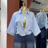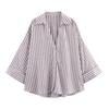 Venta al por mayor transfronteriza 2025 verano nueva camisa casual de rayas de mujer europea y americana suelta con solapa casual de manga larga