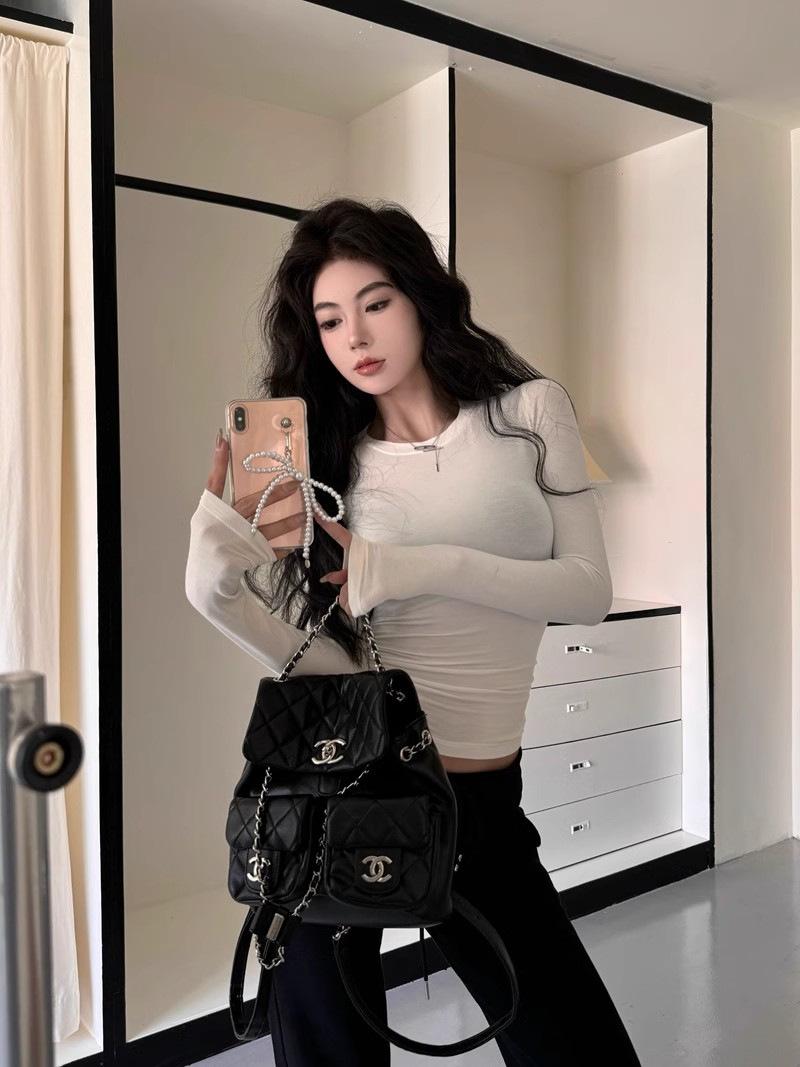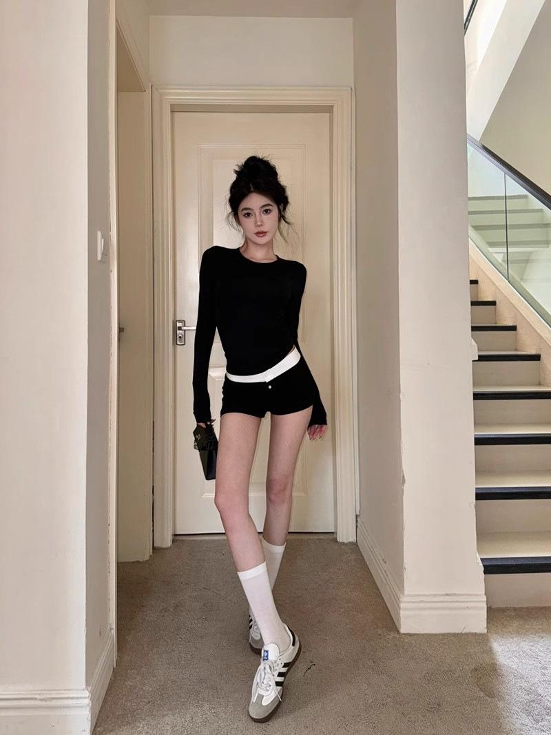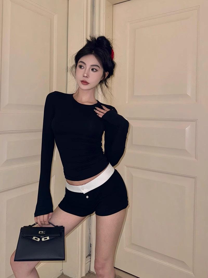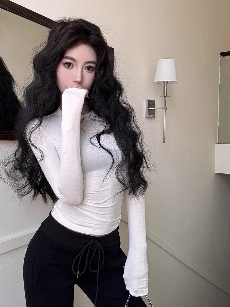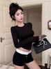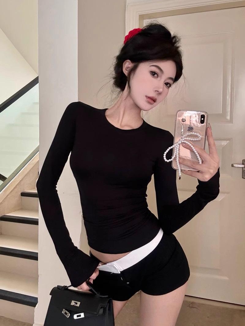 Camiseta de otoño con cuello redondo, manga larga, corte entallado, combinable con todo, Pure Desire, sexy, Spice Girl, moda, nicho, top único Ins