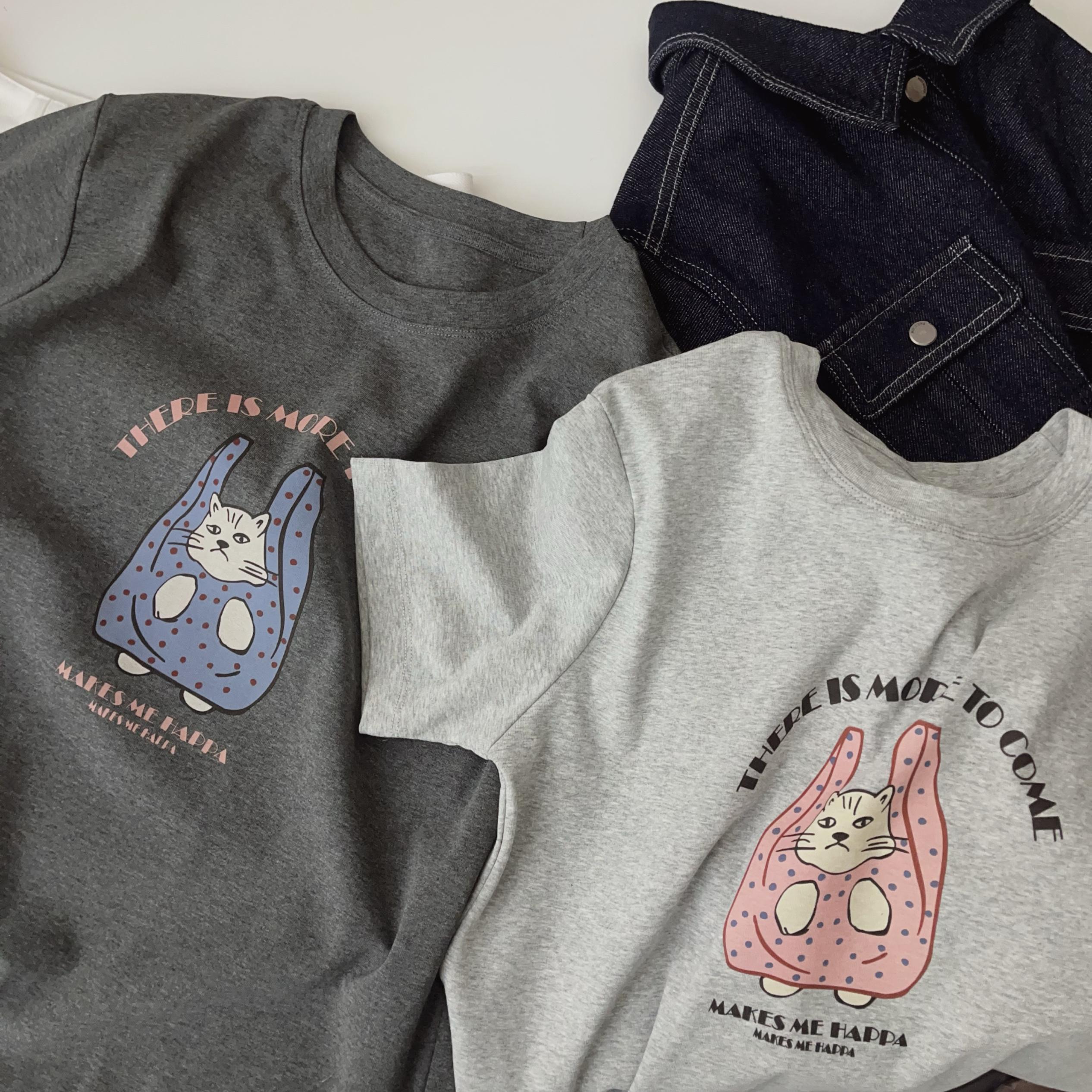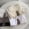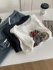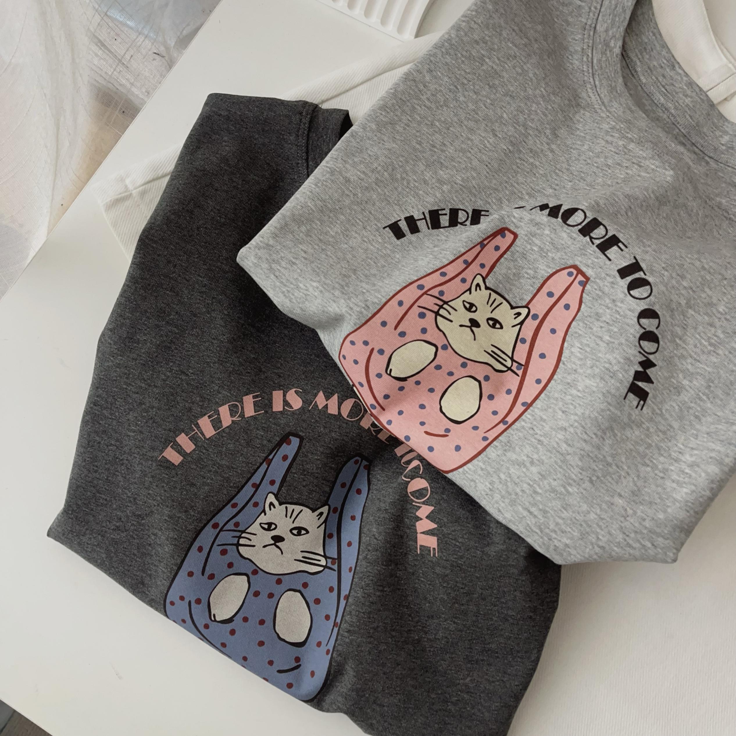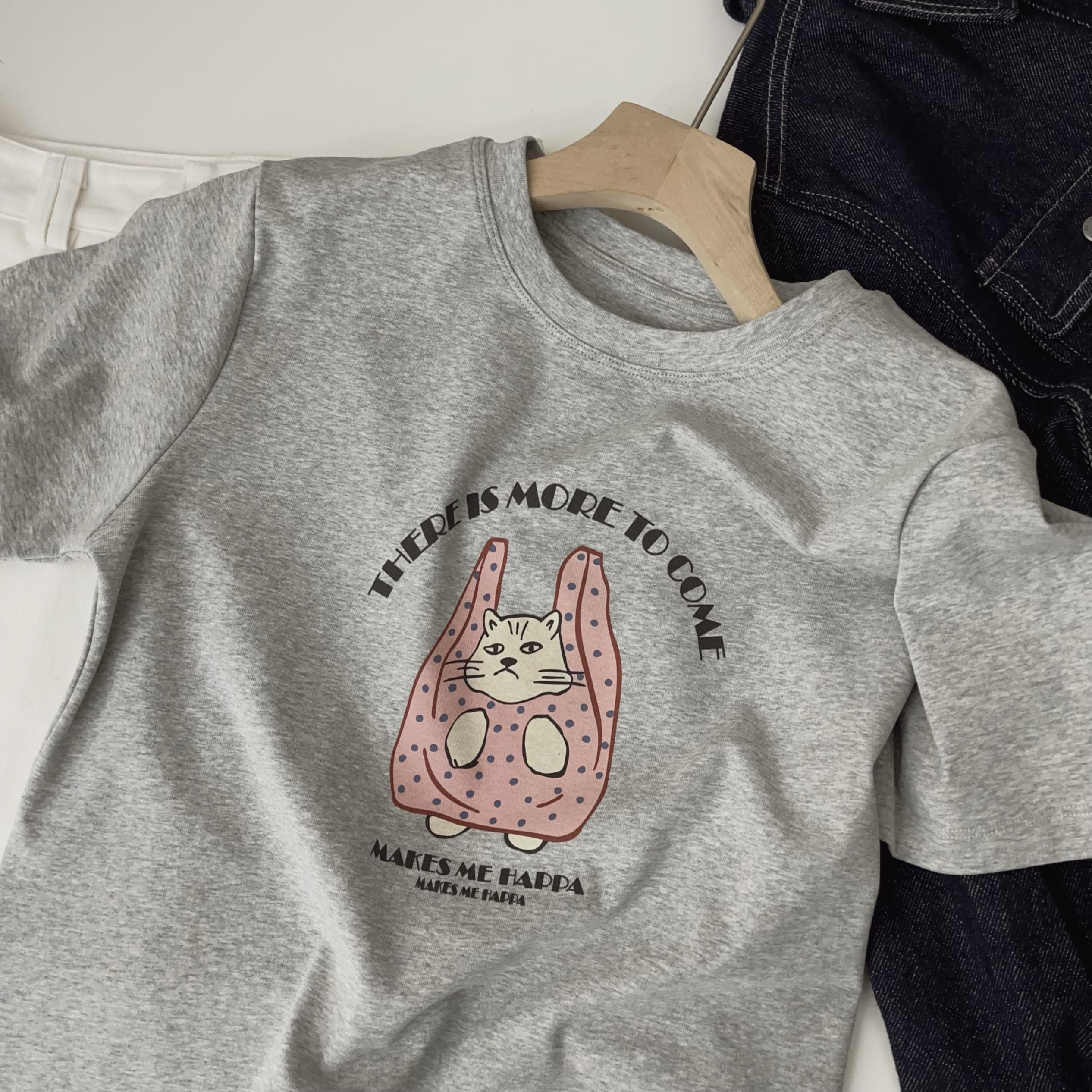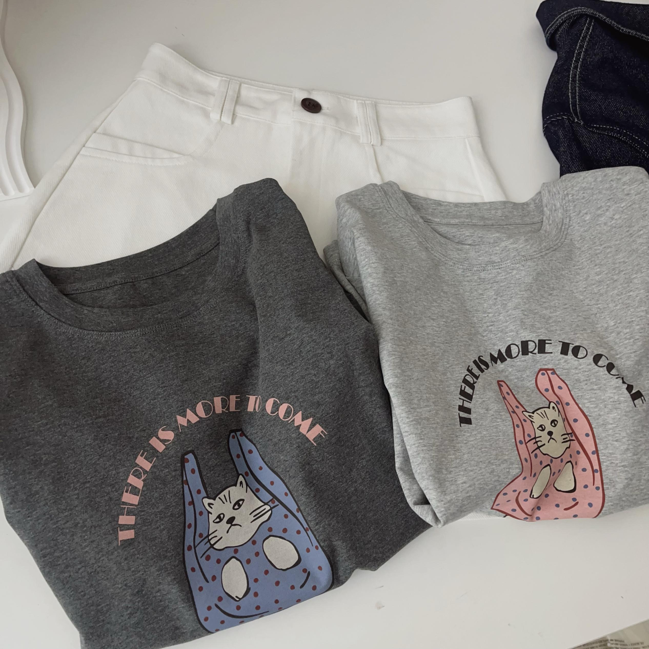 Camiseta de manga corta con estampado de gato de dibujos animados para mujer, primavera 2025, estilo coreano, combinable con todo, antiedad, estilo occidental, moderna.