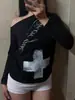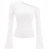 Camiseta elegante y chic de manga larga con cuello con cordones y hombros descubiertos de Spice Girl francesa, top ajustado y adelgazante con cintura ajustada.