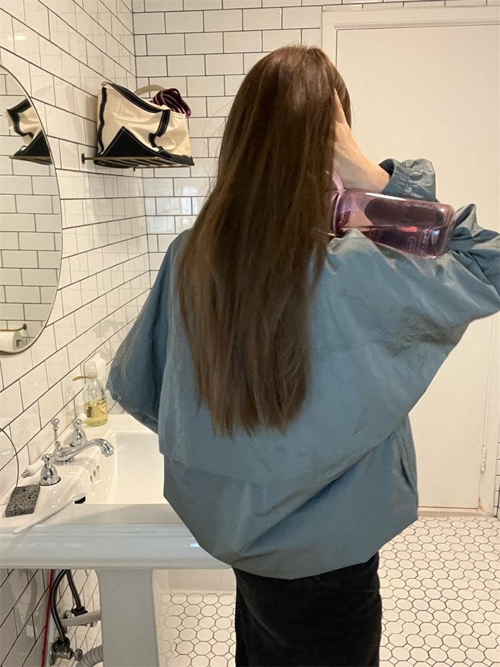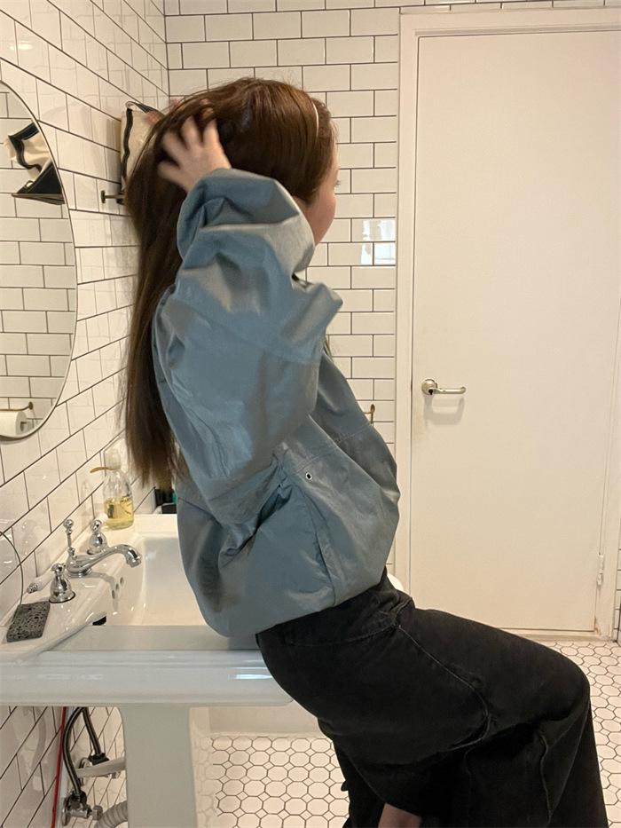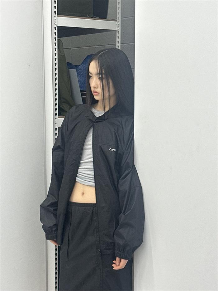En Stock Chaqueta Casual Holgada de Color Sólido con Cierre para Mujer Primavera y Otoño 2025 Estilo Coreano Delgada Cuello Alto Cortavientos