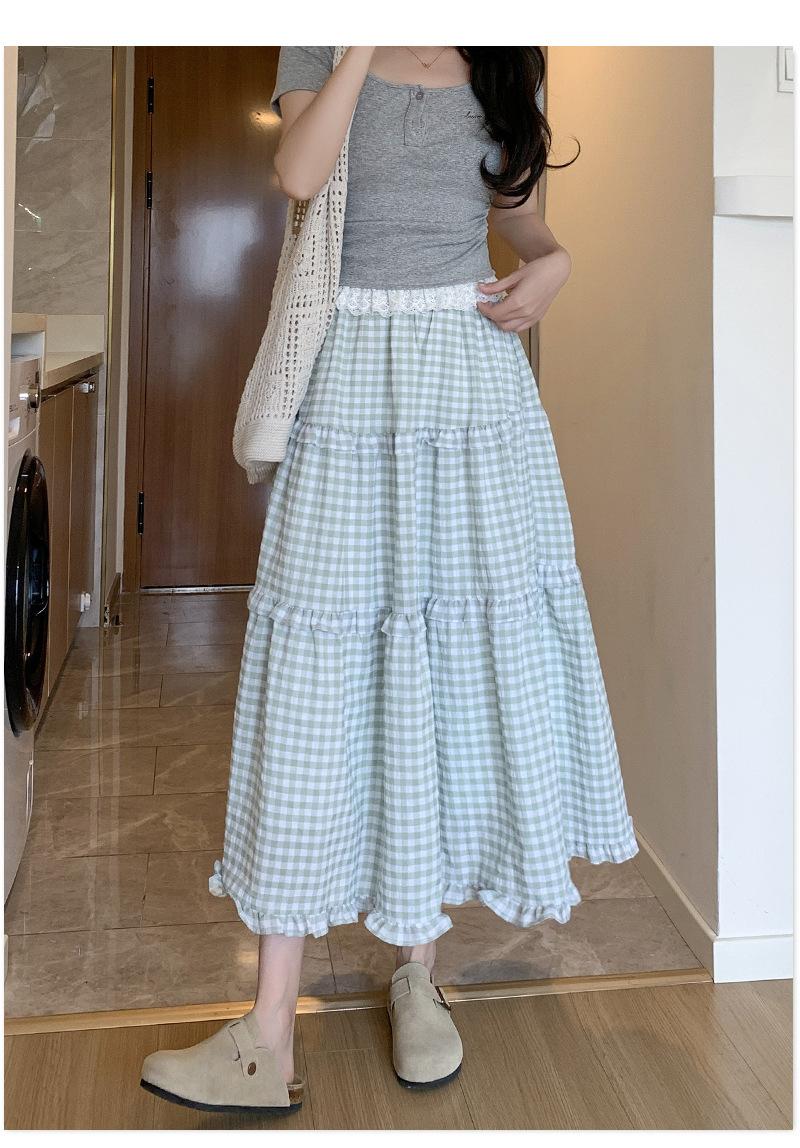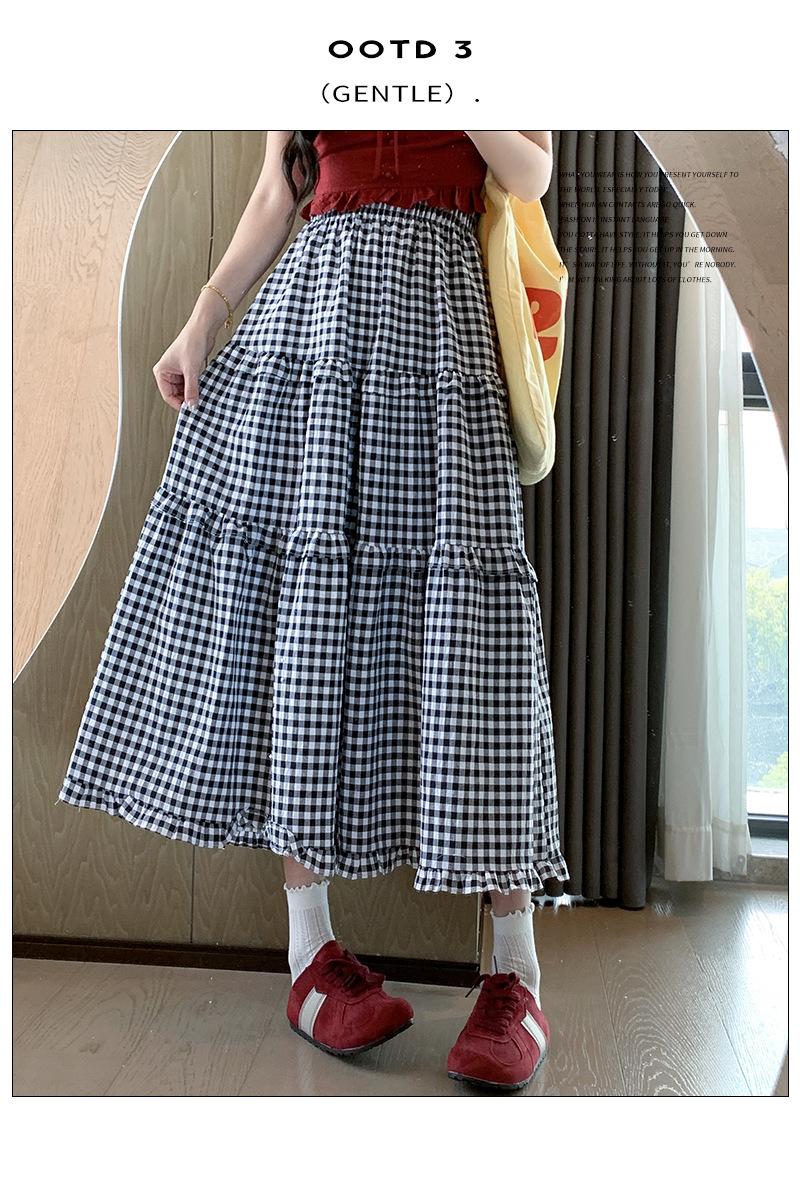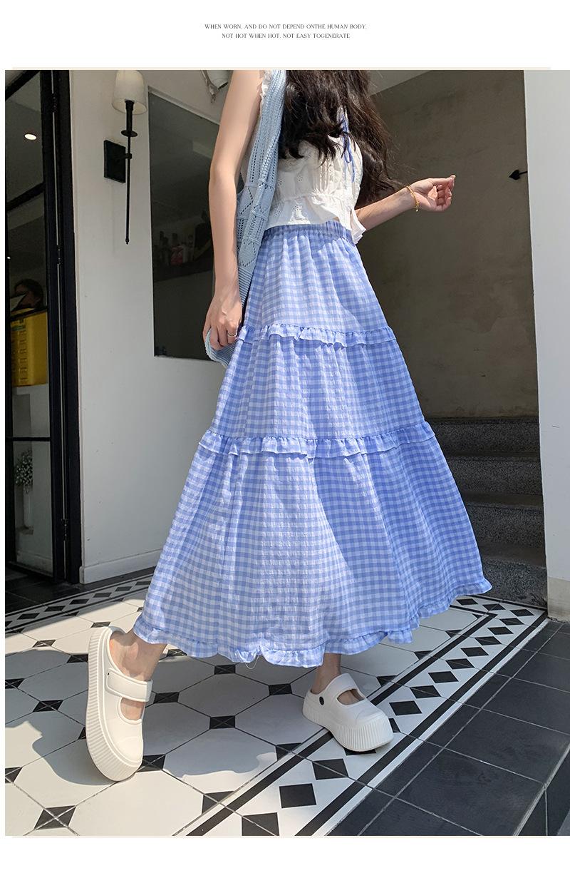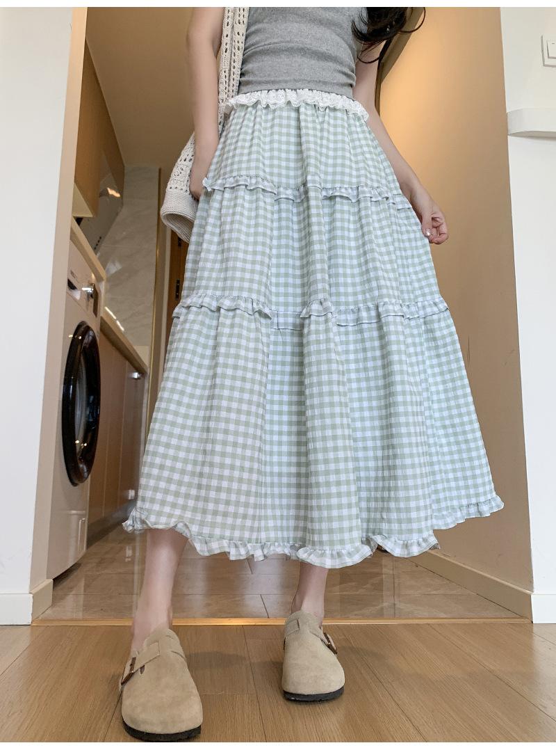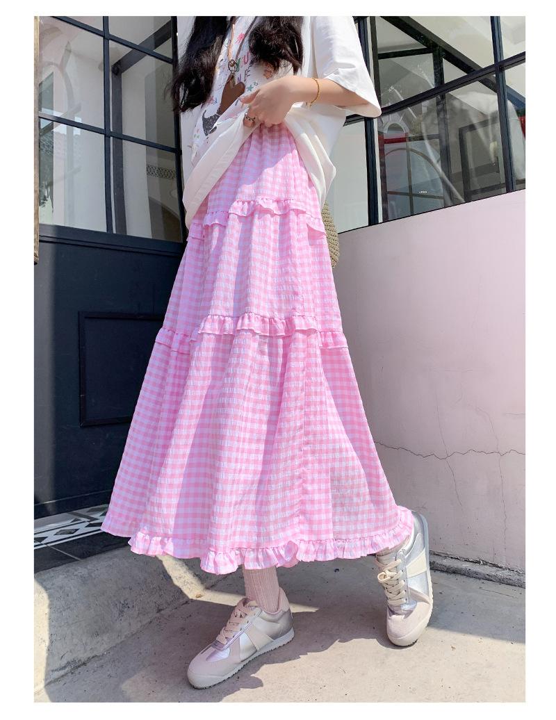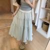Falda suave de pastel de hojaldre para mujer, verano nueva, cintura alta, línea A, falda midi, casual, con borde de oreja, media falda