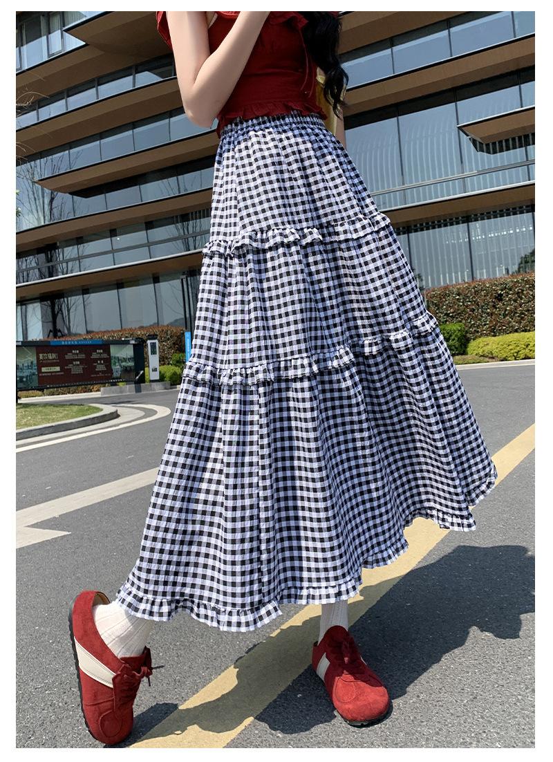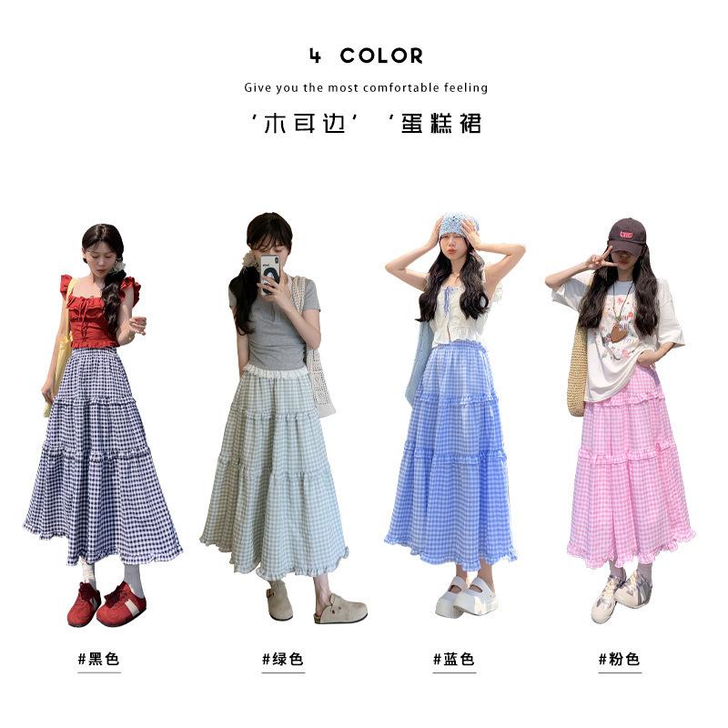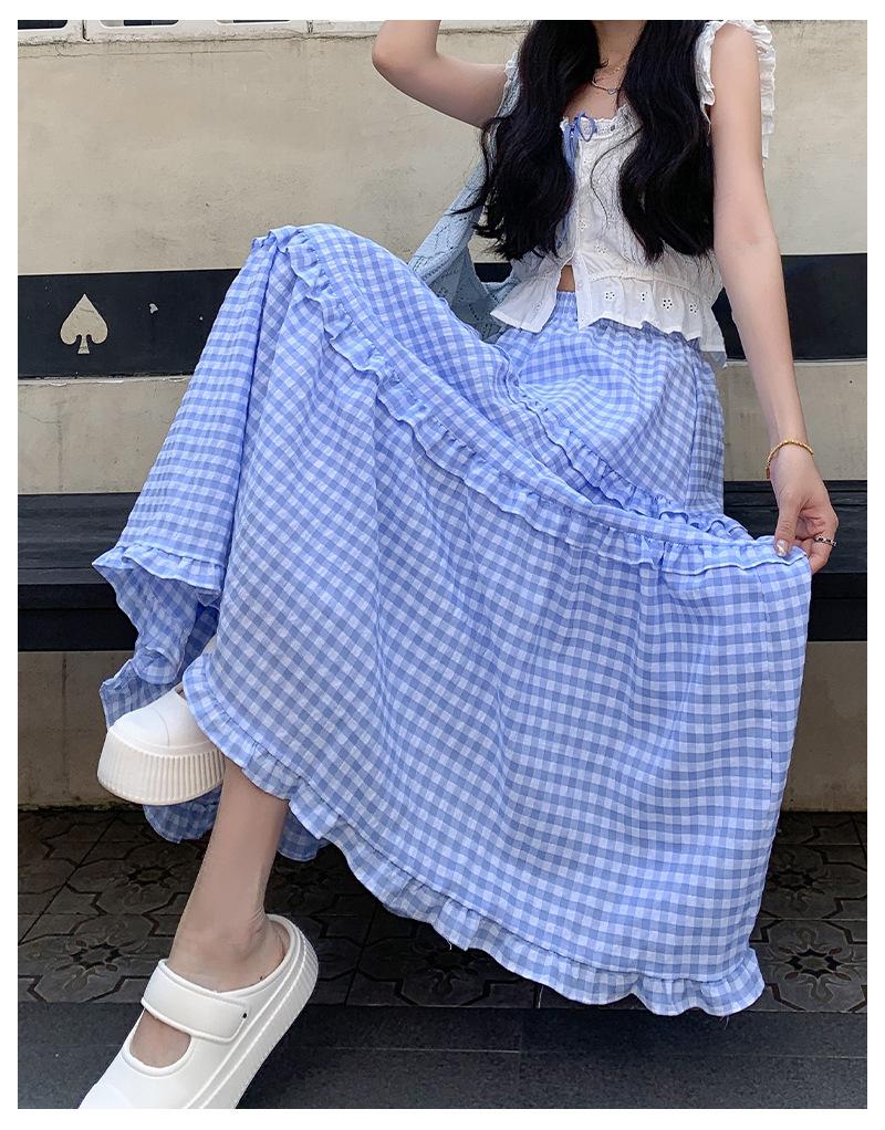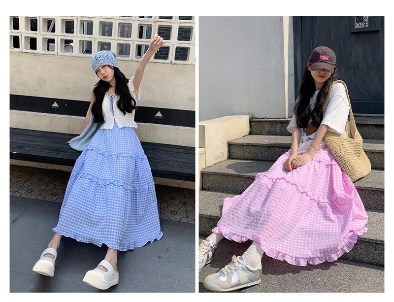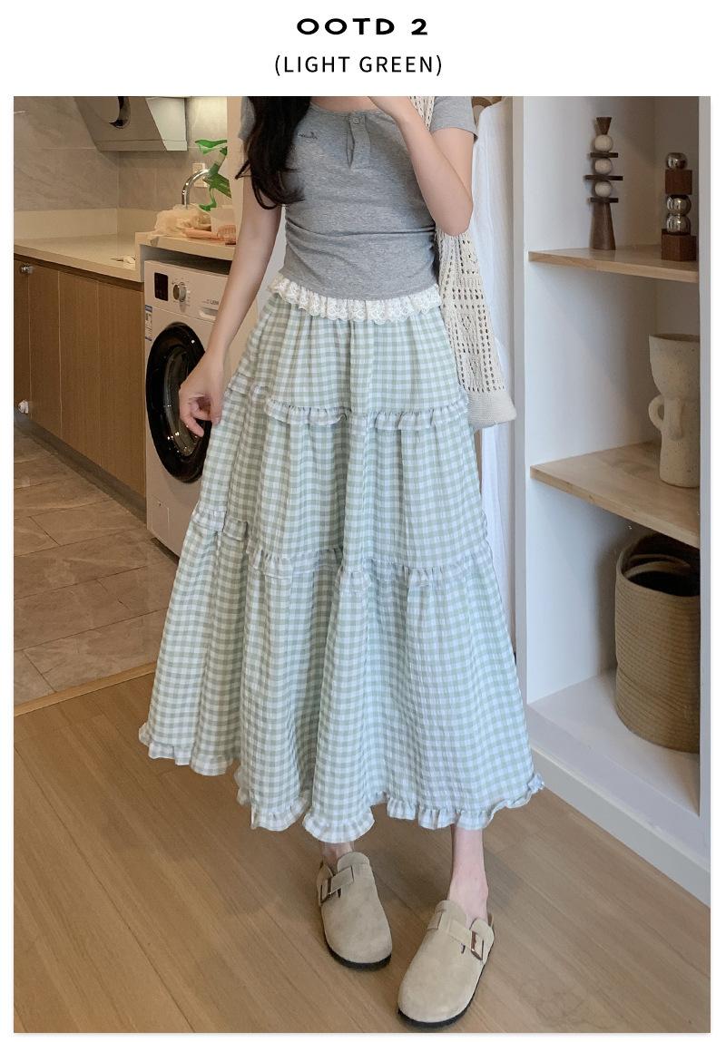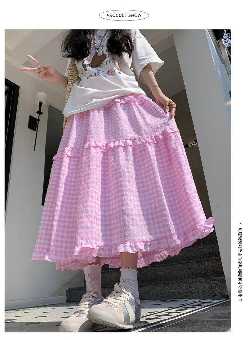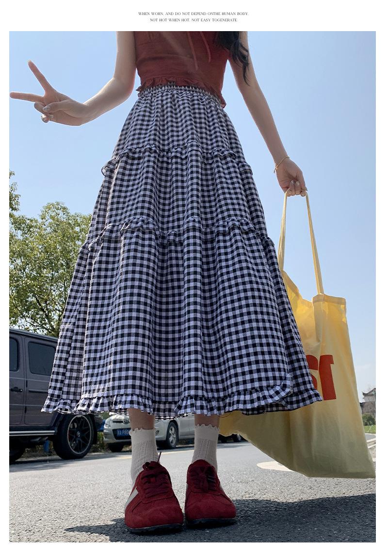 Falda suave de pastel de hojaldre para mujer, verano nueva, cintura alta, línea A, falda midi, casual, con borde de oreja, media falda