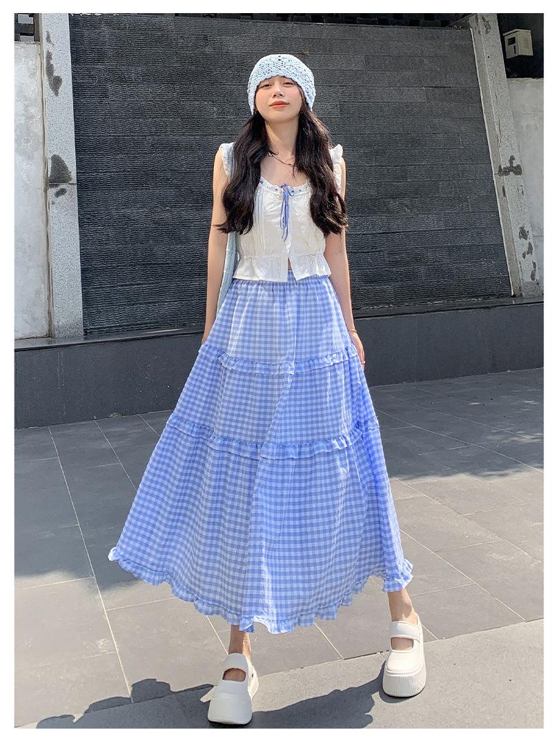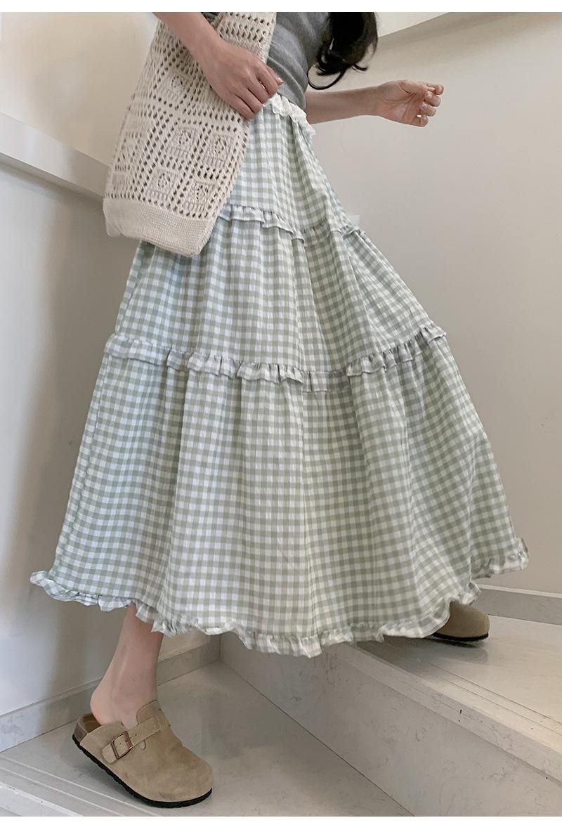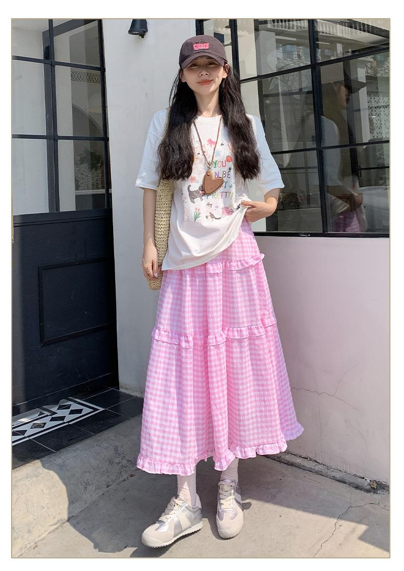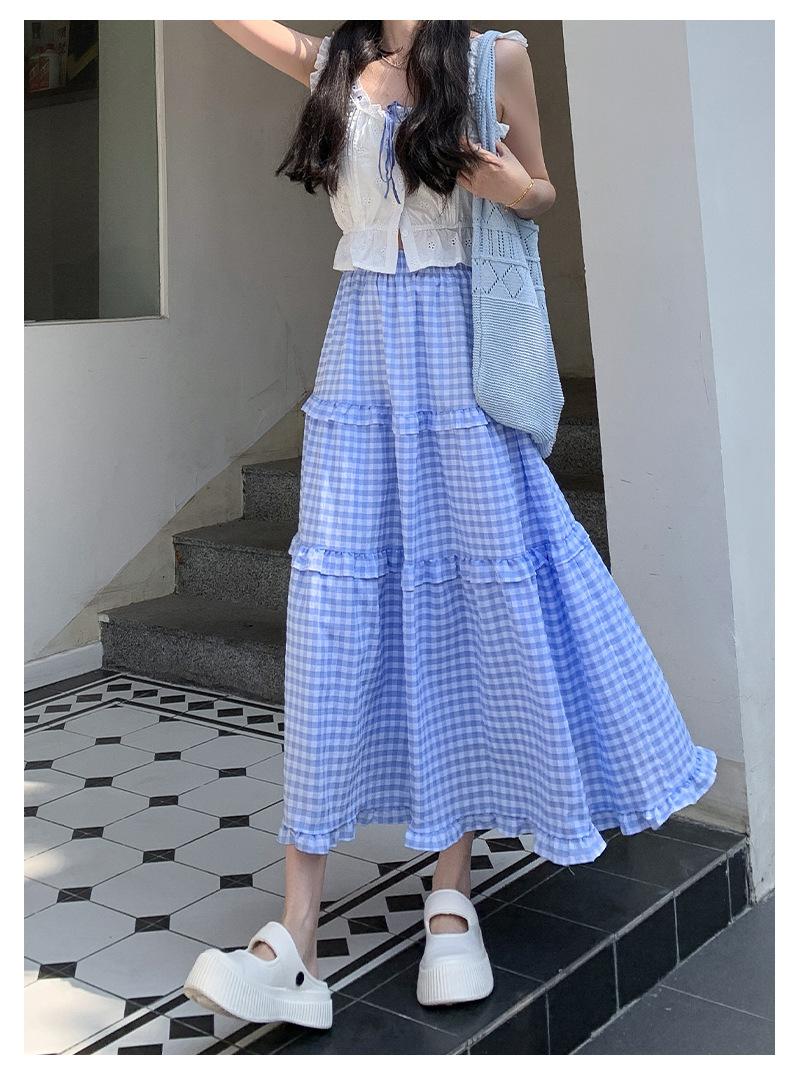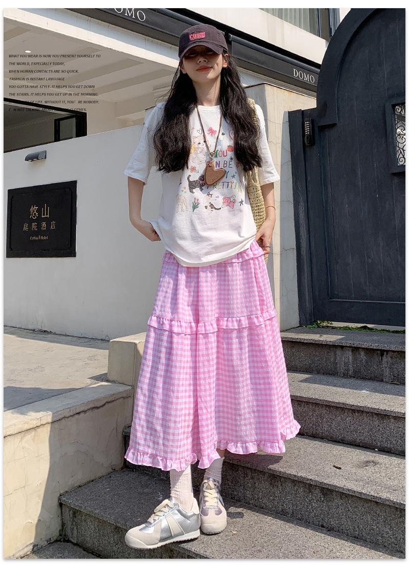 Falda suave de pastel de hojaldre para mujer, verano nueva, cintura alta, línea A, falda midi, casual, con borde de oreja, media falda