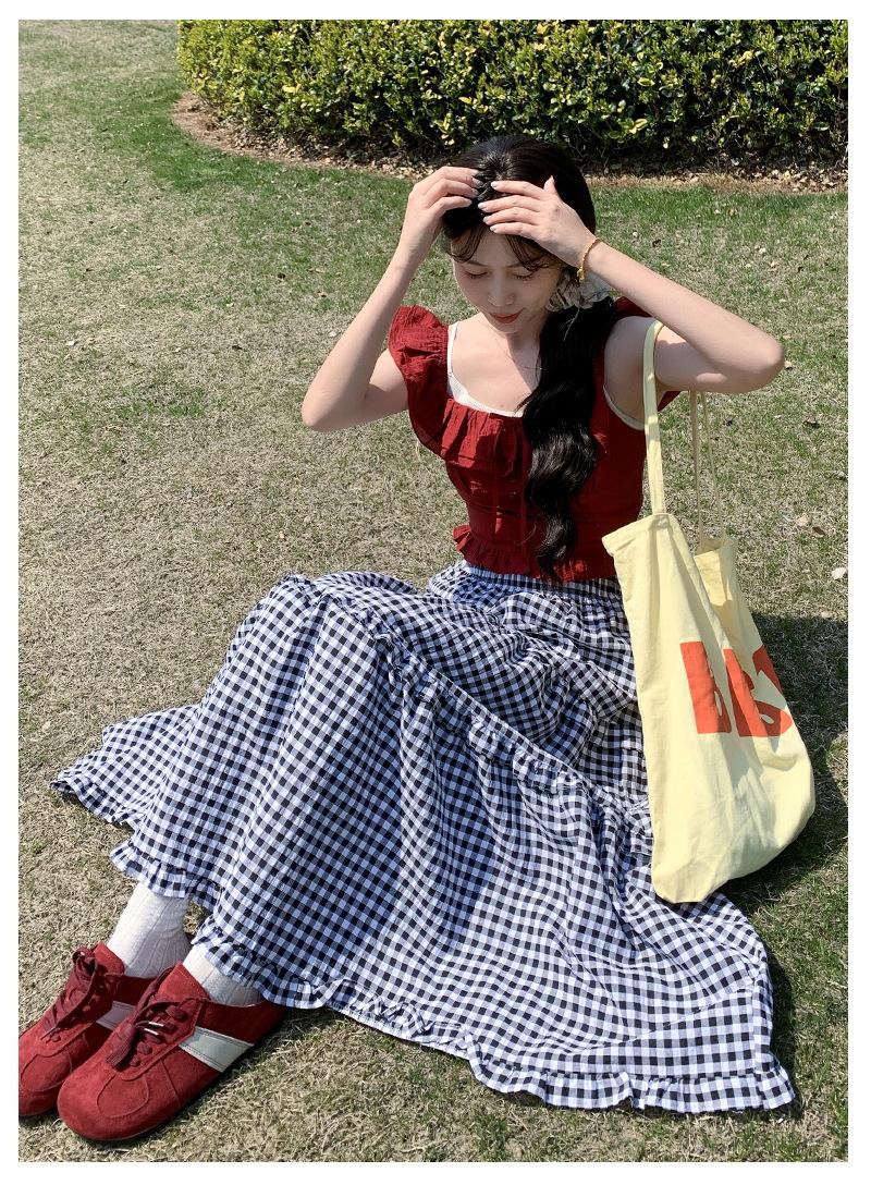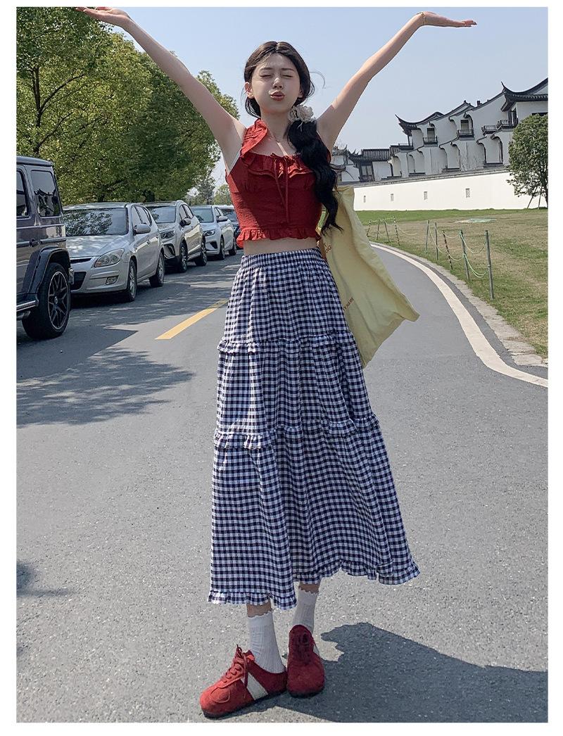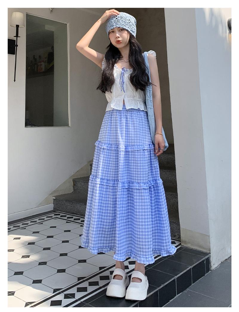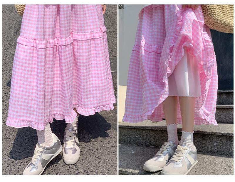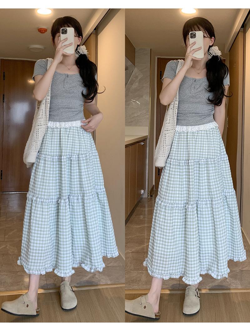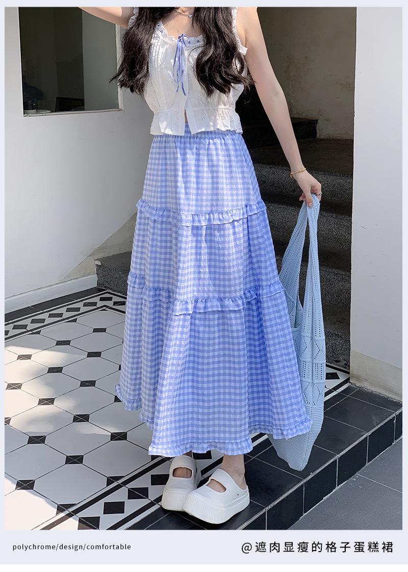 Falda suave de pastel de hojaldre para mujer, verano nueva, cintura alta, línea A, falda midi, casual, con borde de oreja, media falda